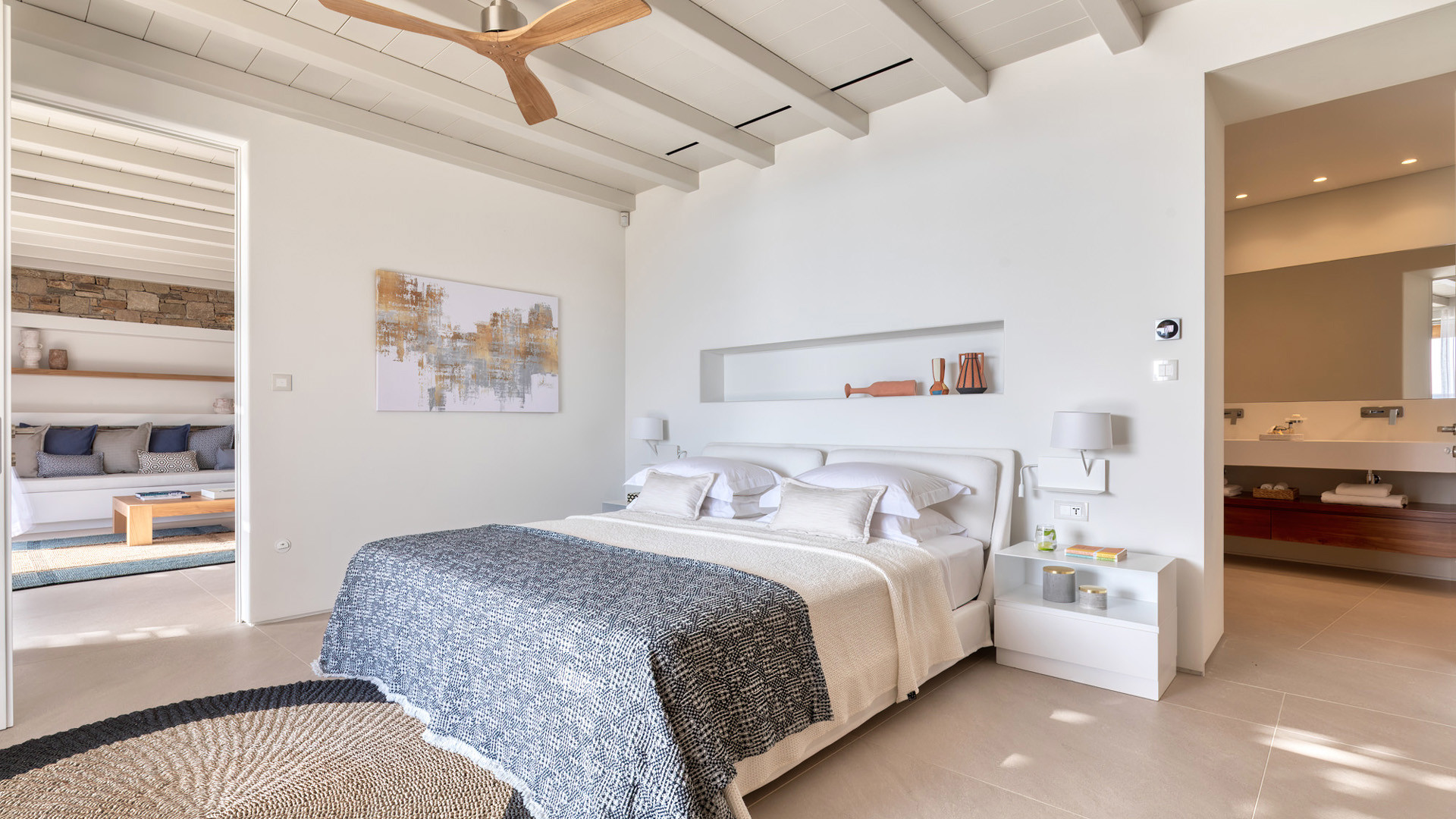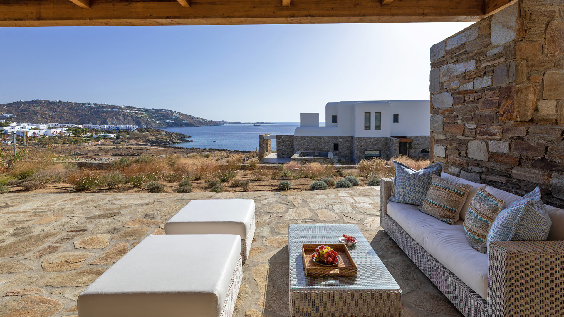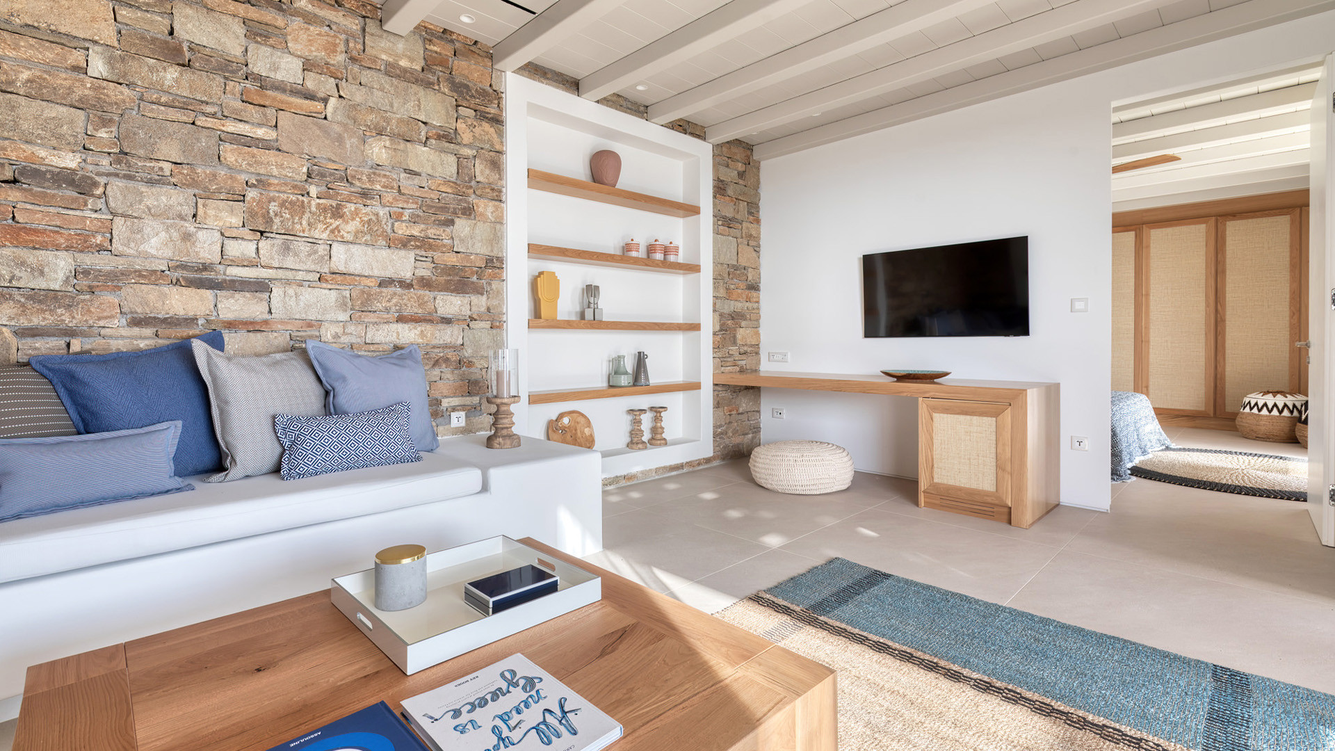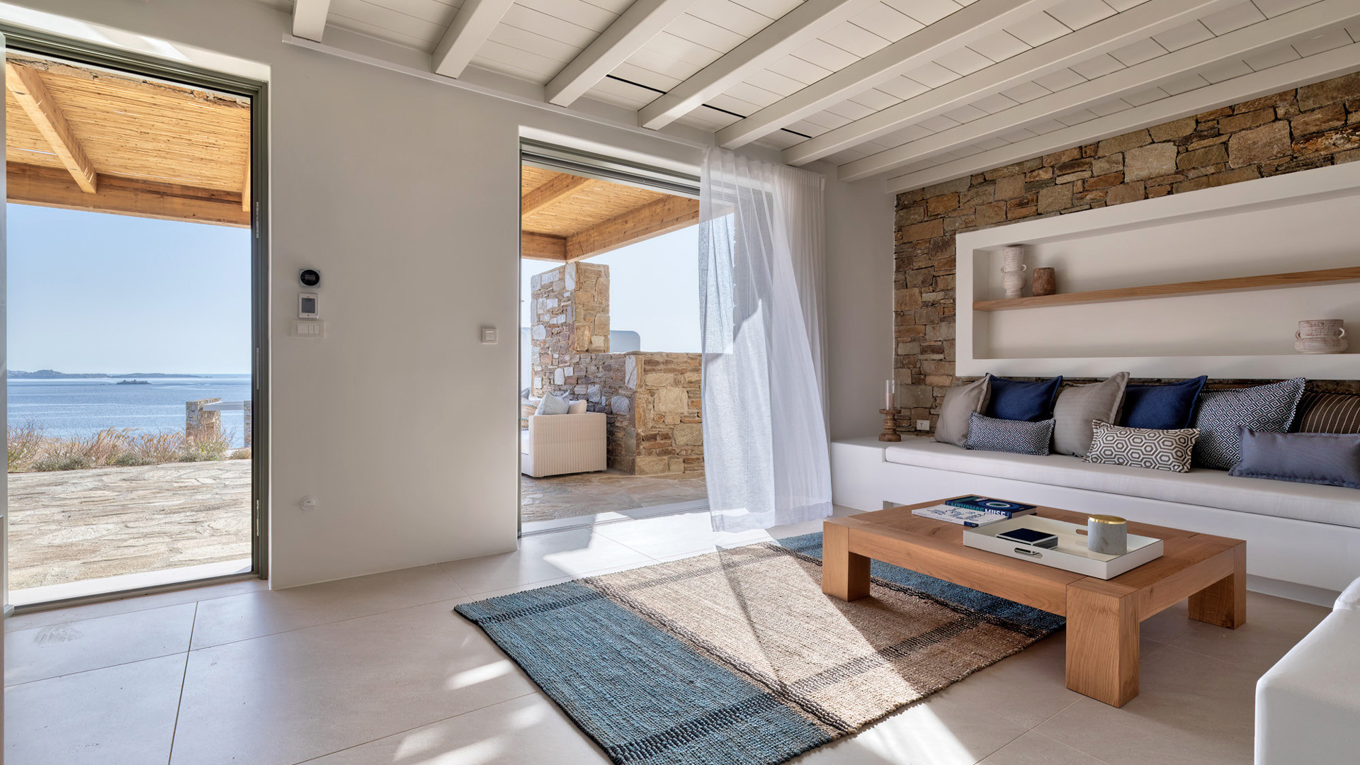 The Aleomandra area is one of the most sought-after on the island, conveniently located within easy reach of Mykonos Town. At the same time, some of the most popular beaches, such as Ornos and Agios Ioannis, are no more than a 5-minute drive away. In this context, we find the splendid Amaryllis, a villa of unquestionable quality designed for the most discerning travelers.