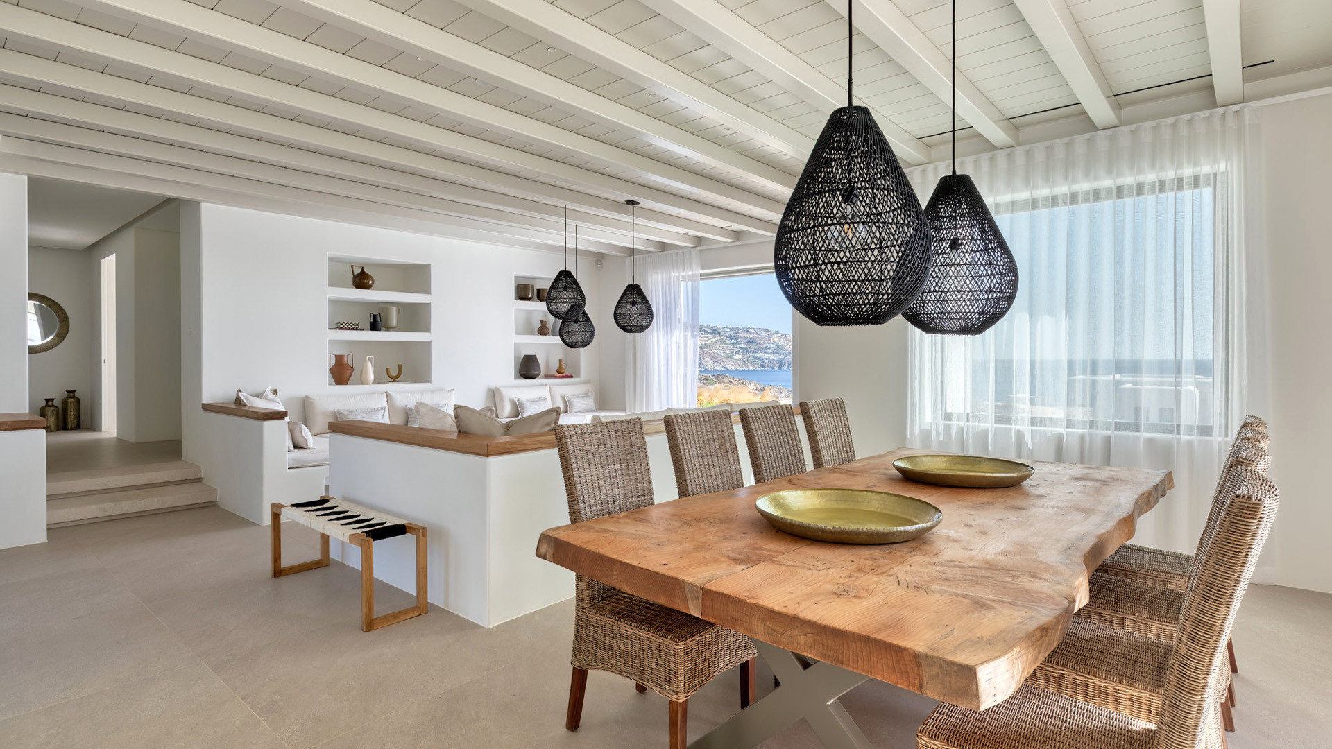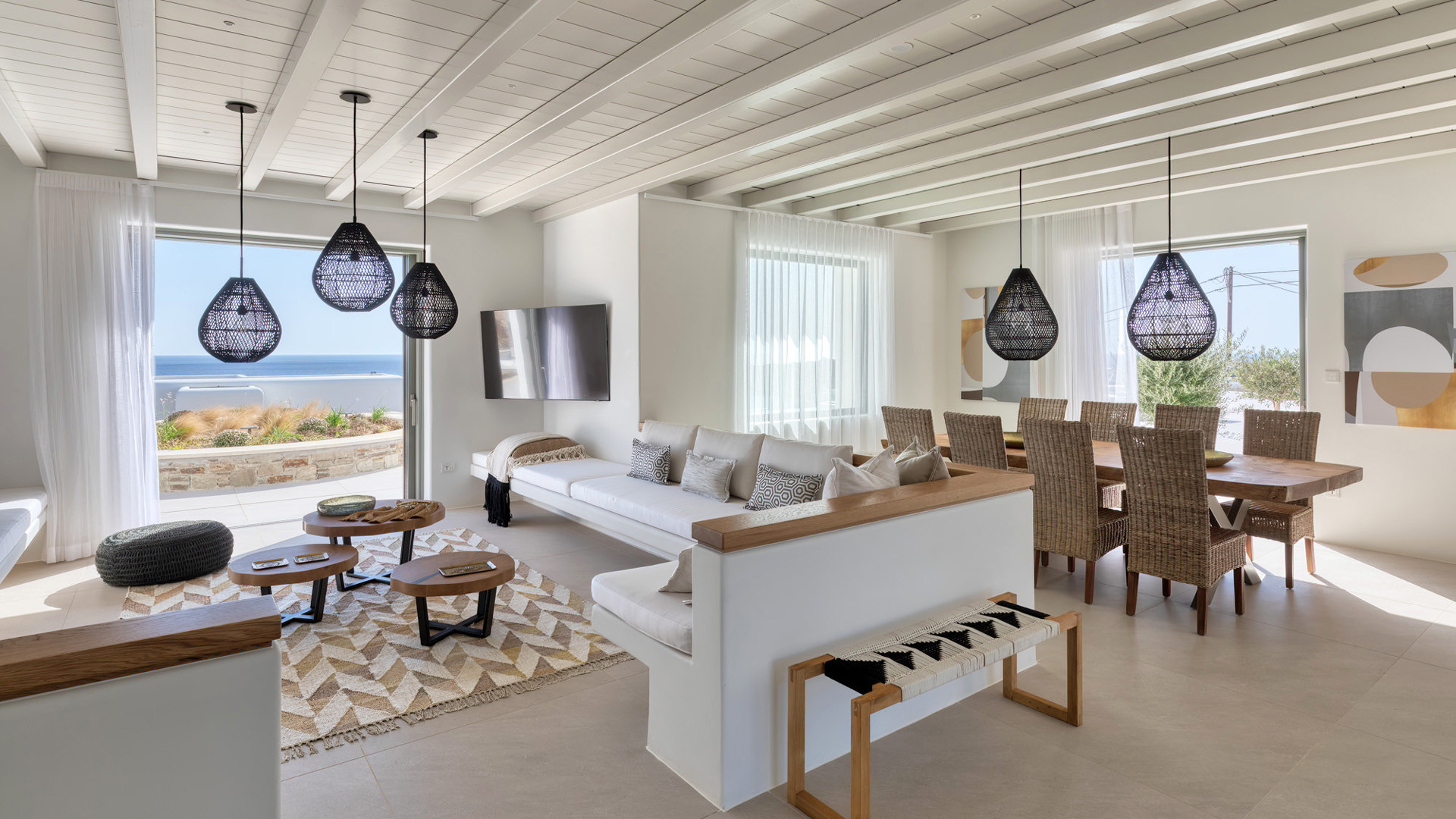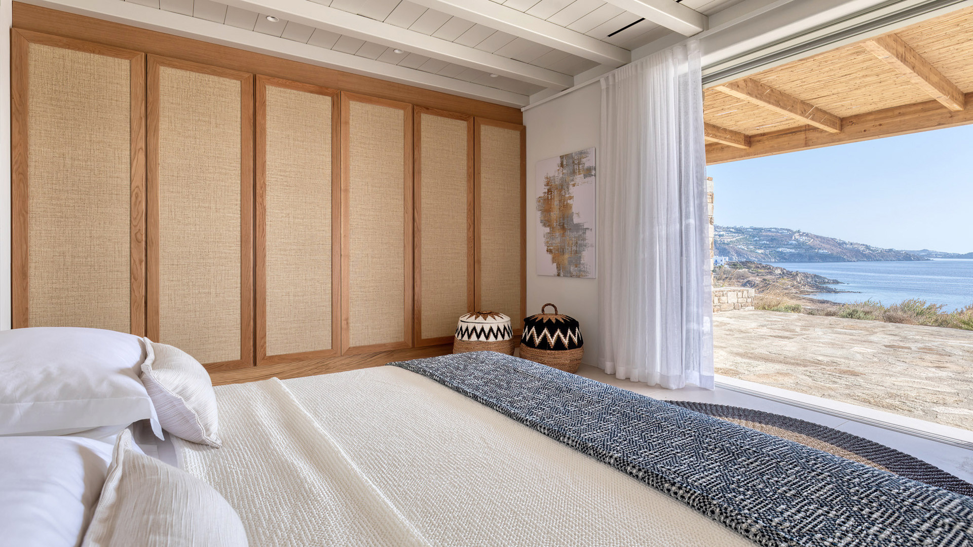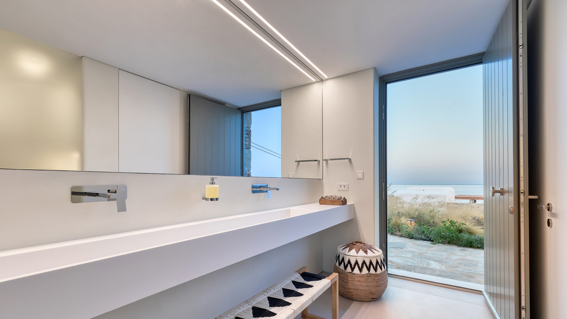 The Aleomandra area is one of the most sought-after on the island, conveniently located within easy reach of Mykonos Town. At the same time, some of the most popular beaches, such as Ornos and Agios Ioannis, are no more than a 5-minute drive away. In this context, we find the splendid Amaryllis, a villa of unquestionable quality designed for the most discerning travelers.