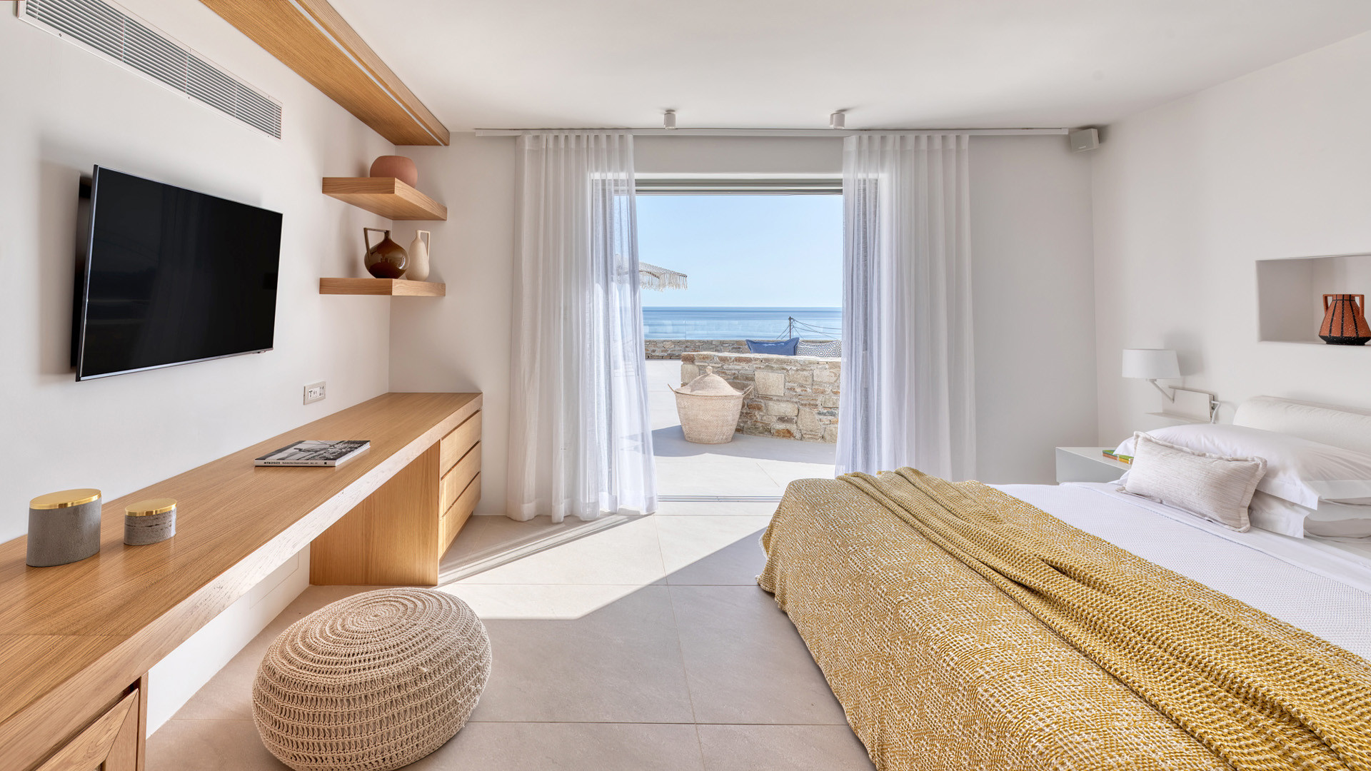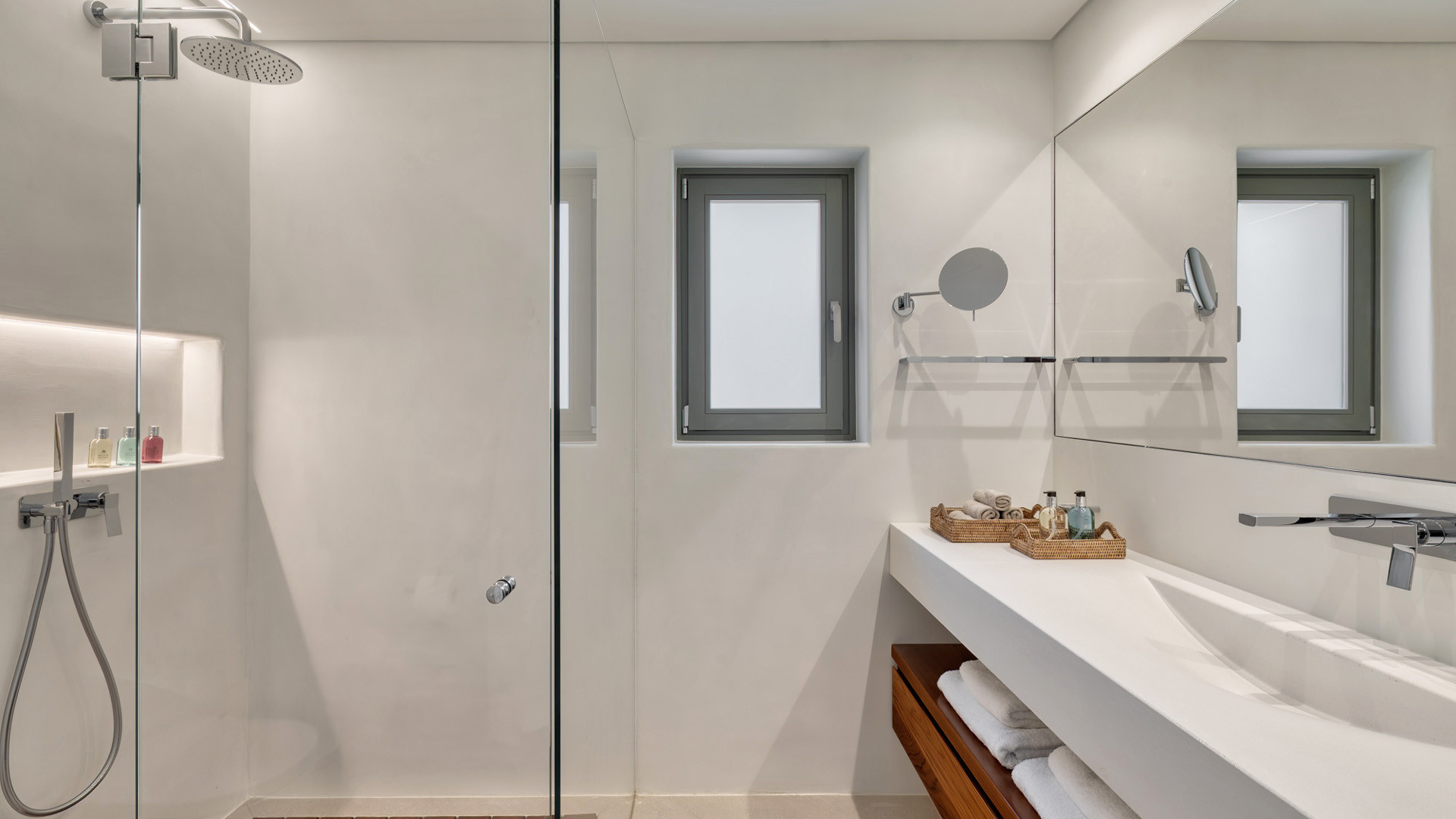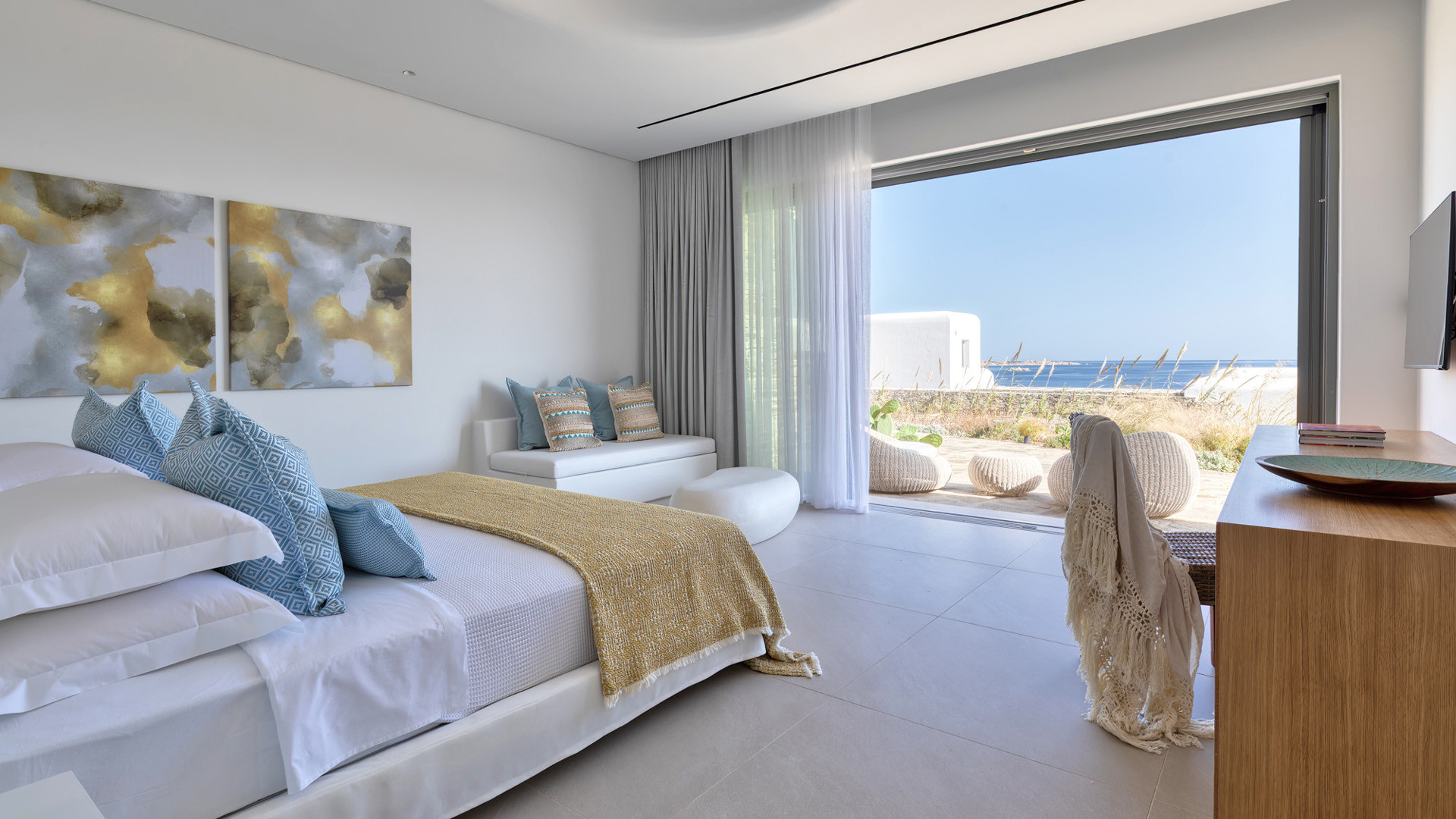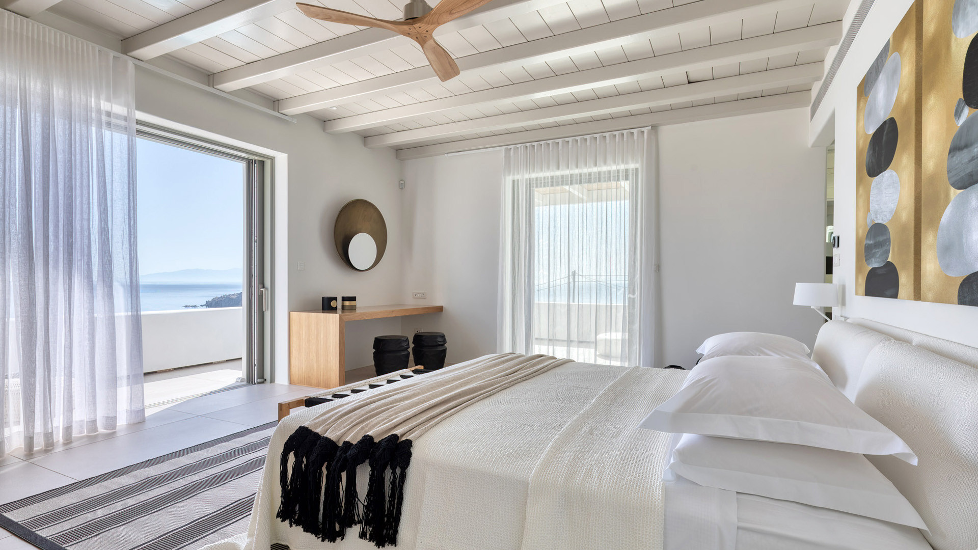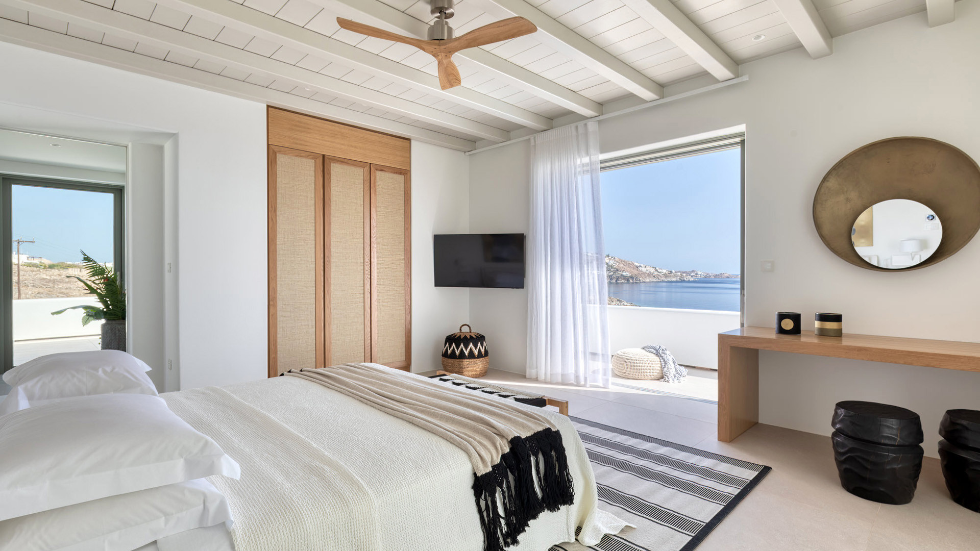 The Aleomandra area is one of the most sought-after on the island, conveniently located within easy reach of Mykonos Town. At the same time, some of the most popular beaches, such as Ornos and Agios Ioannis, are no more than a 5-minute drive away. In this context, we find the splendid Amaryllis, a villa of unquestionable quality designed for the most discerning travelers.