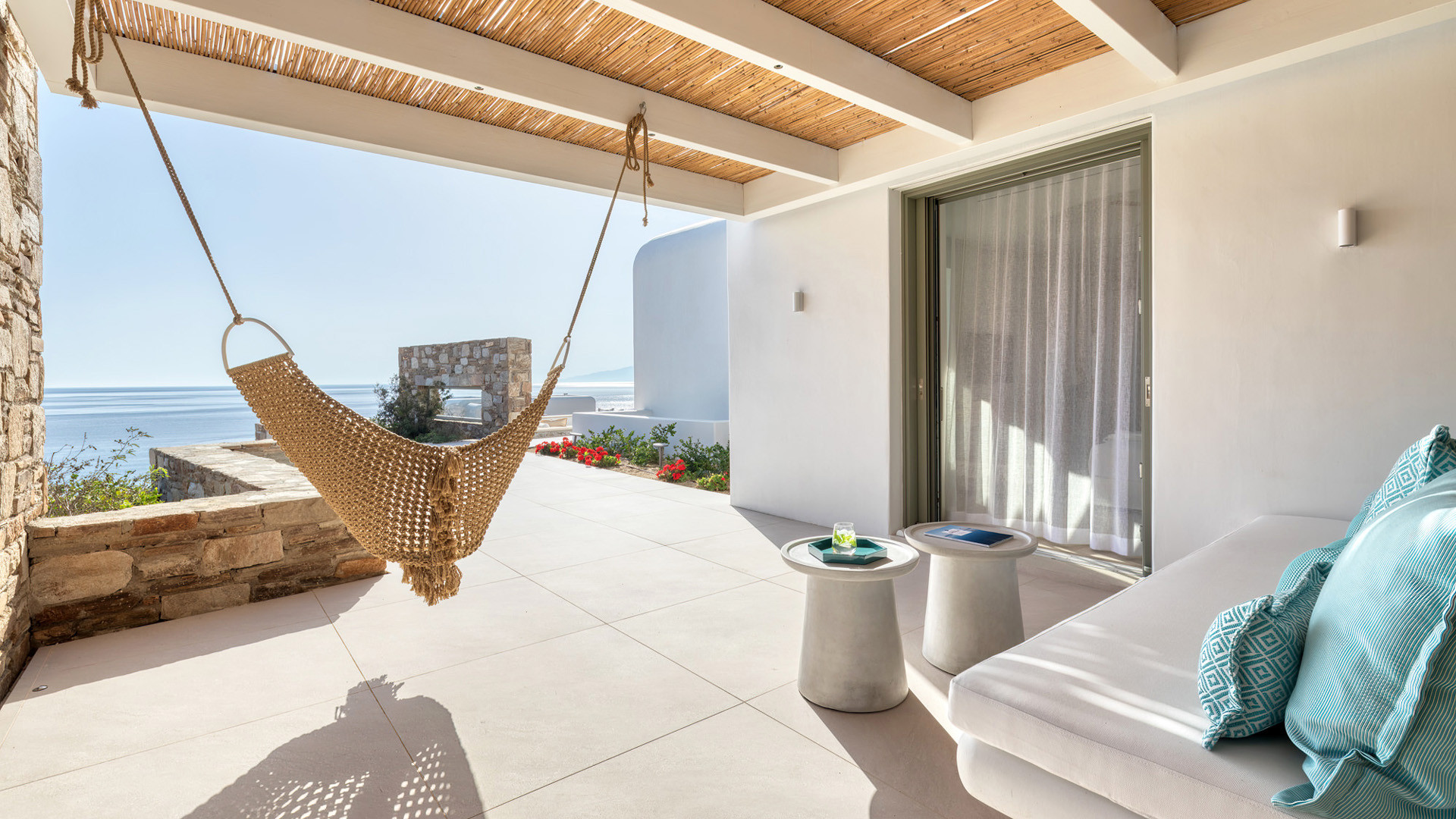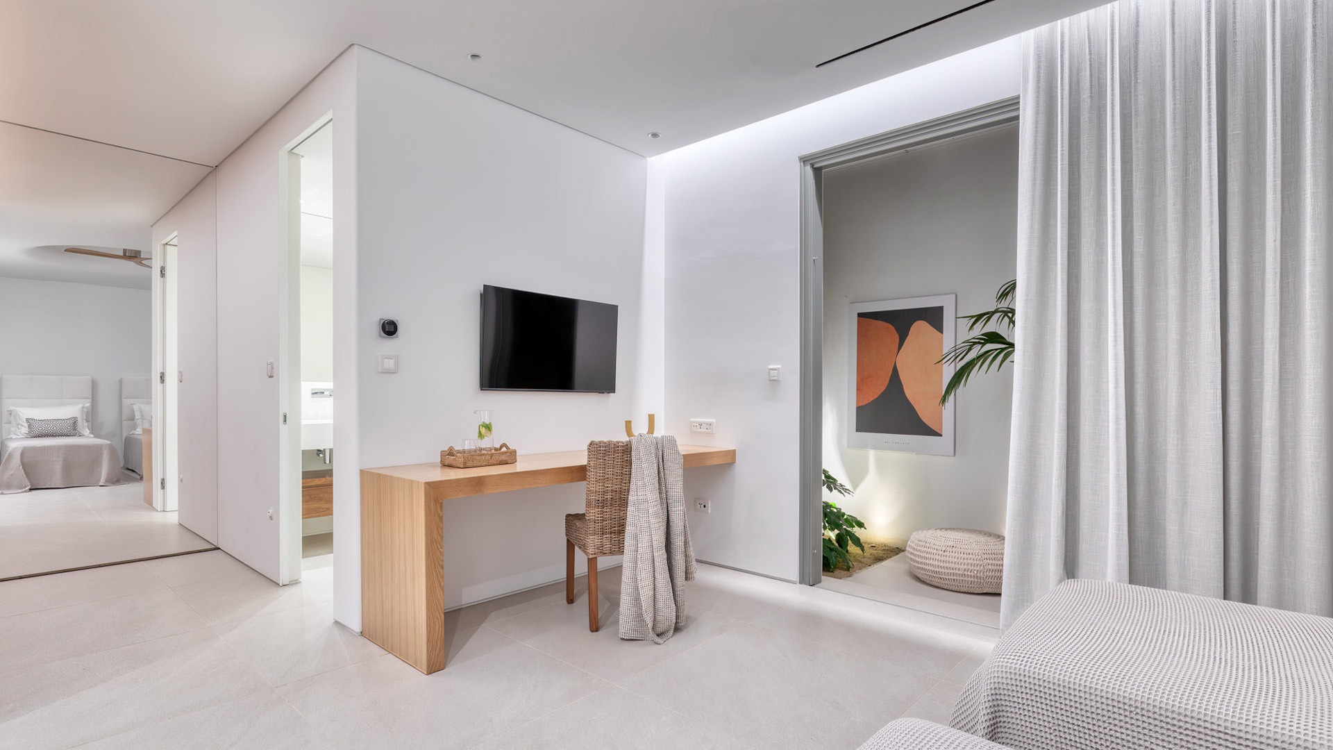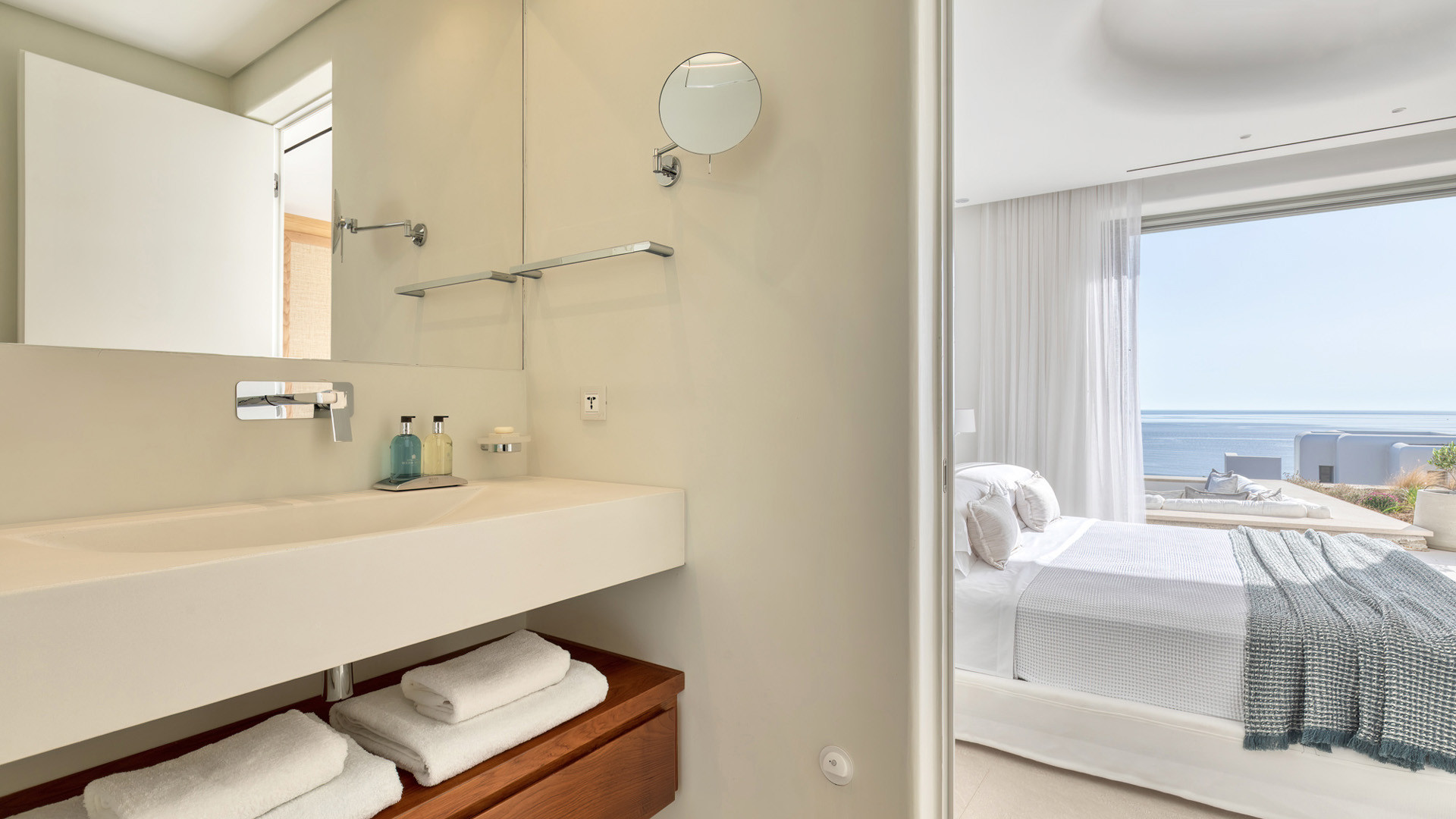 8 Guests1 Guest Suite with King Size bed, A/C, en-suite bathroom with shower, living room, direct access to pool terrace, sea view