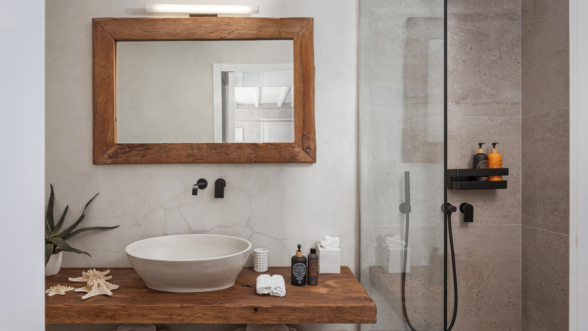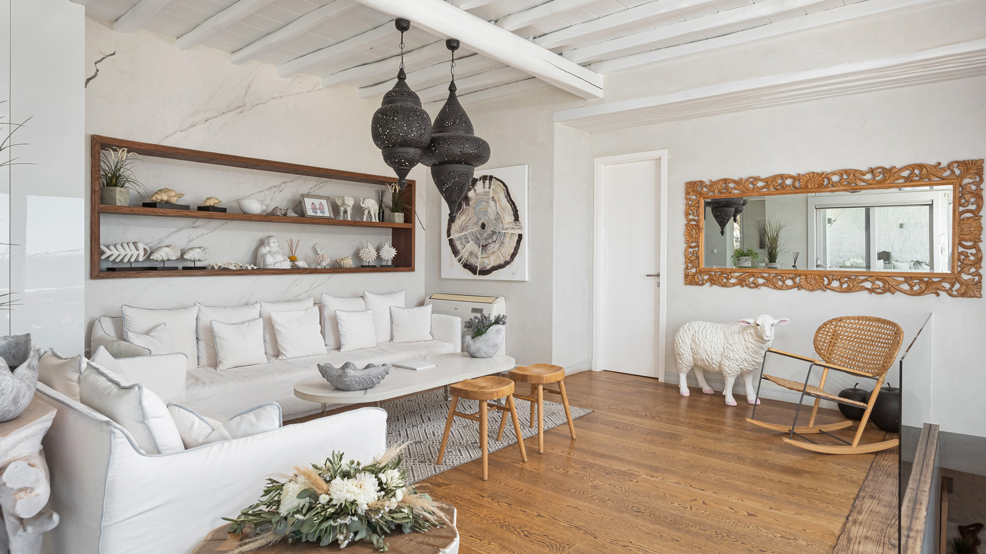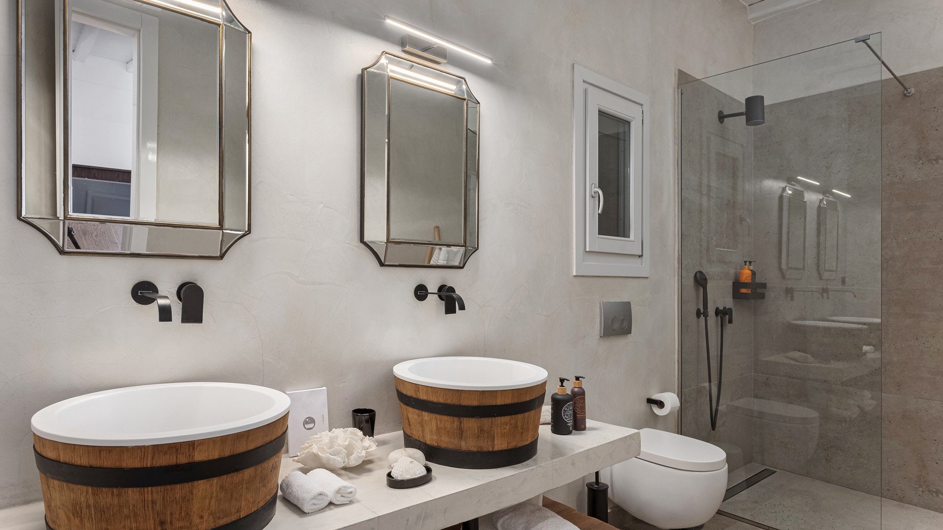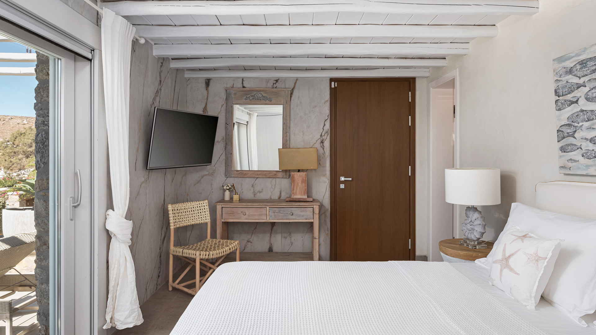 Just as witnessed outdoors, the interior spaces of Aura seemingly belong in interior design publications for their attention to detail and elegance. A unique style breaks away from the typical Cycladic fashion in an elegant manner be it the parquet floors, attractive artwork or the array of carefully chosen fittings and details.
