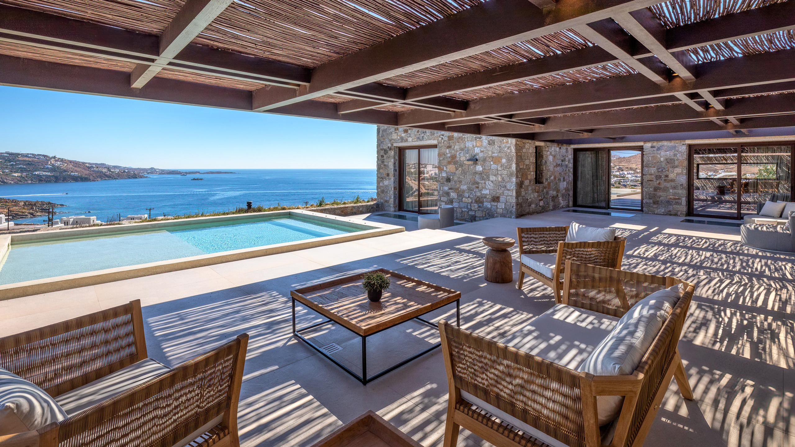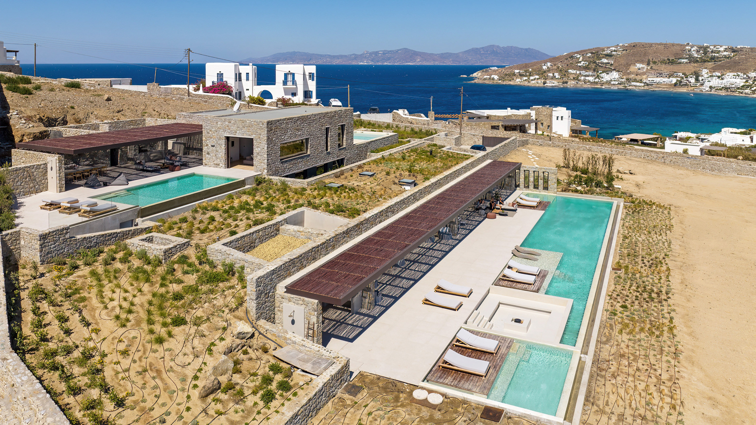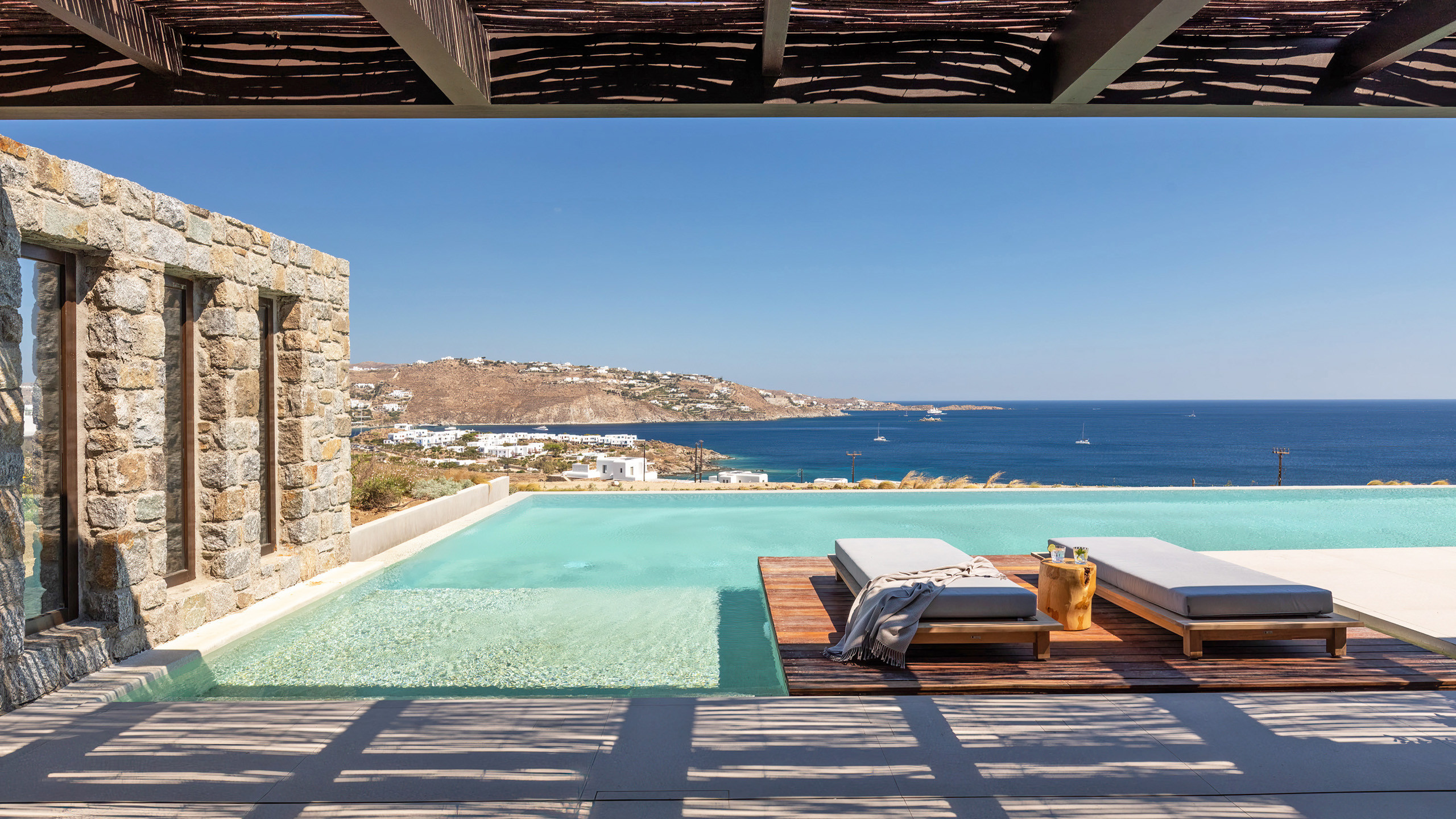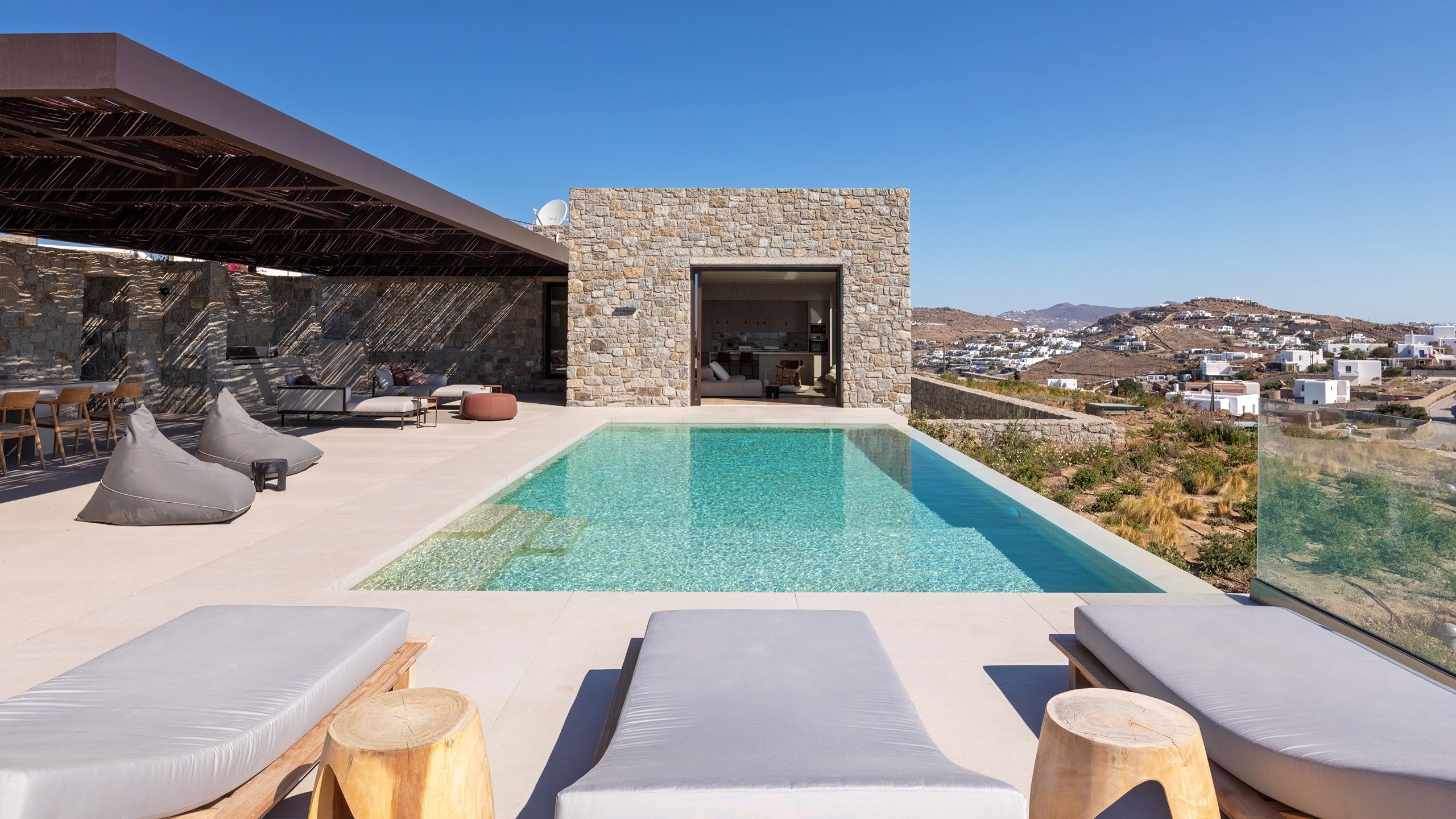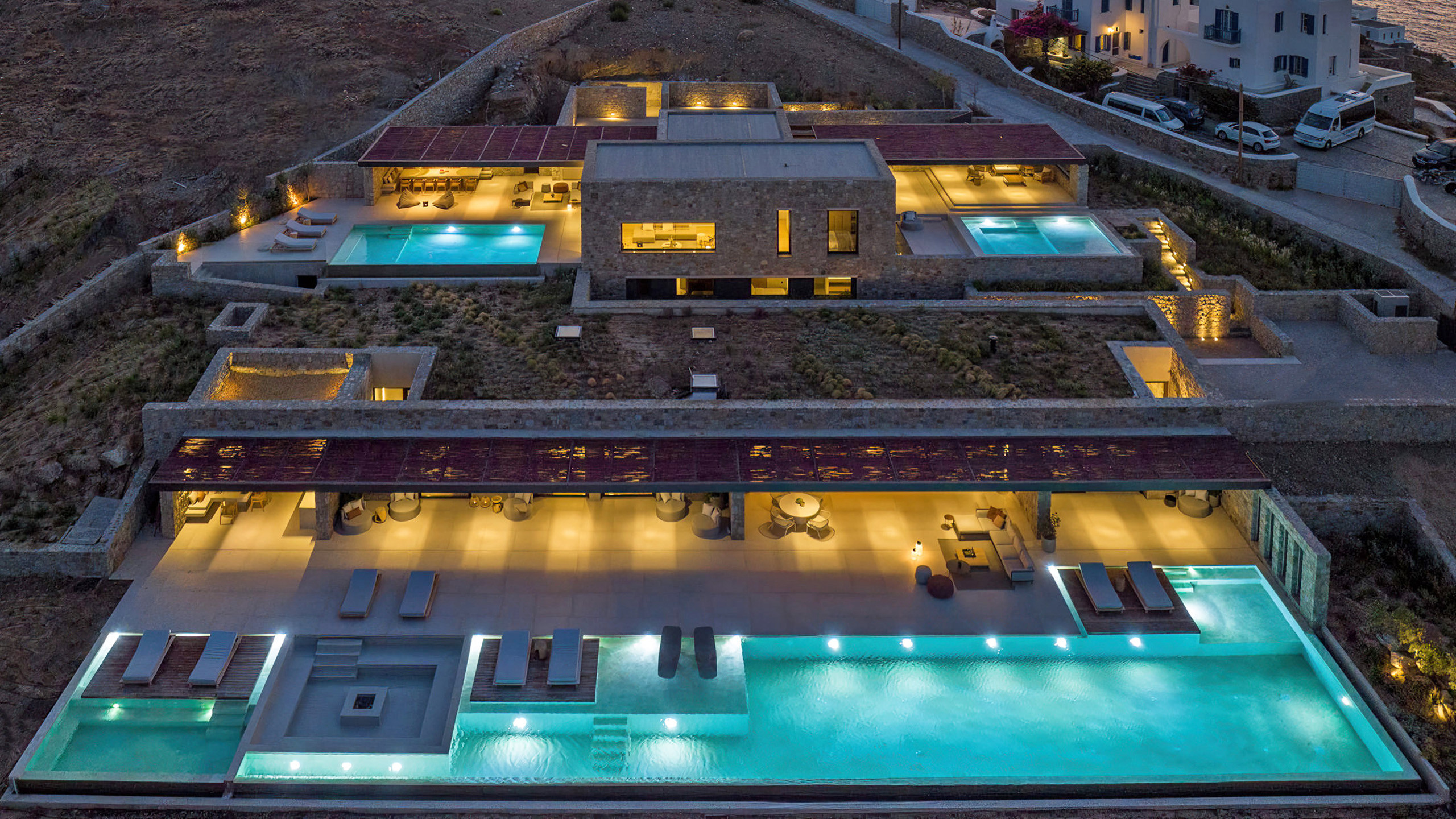 Experience unmatched luxury in Mykonos at Avalon. Escape to serenity and enjoy complete privacy in our brand-new bioclimatic stone property in Mykonos. Enjoy stunning views of the Aegean Sea and unique, contemporary furnishings at this ultimate luxury vacation destination. Indulge in panoramic views of the Aegean Sea from the spacious open-plan design and natural light-filled spaces. Located just a short drive from beautiful beaches and exciting activities, Avalon offers the best of both worlds.