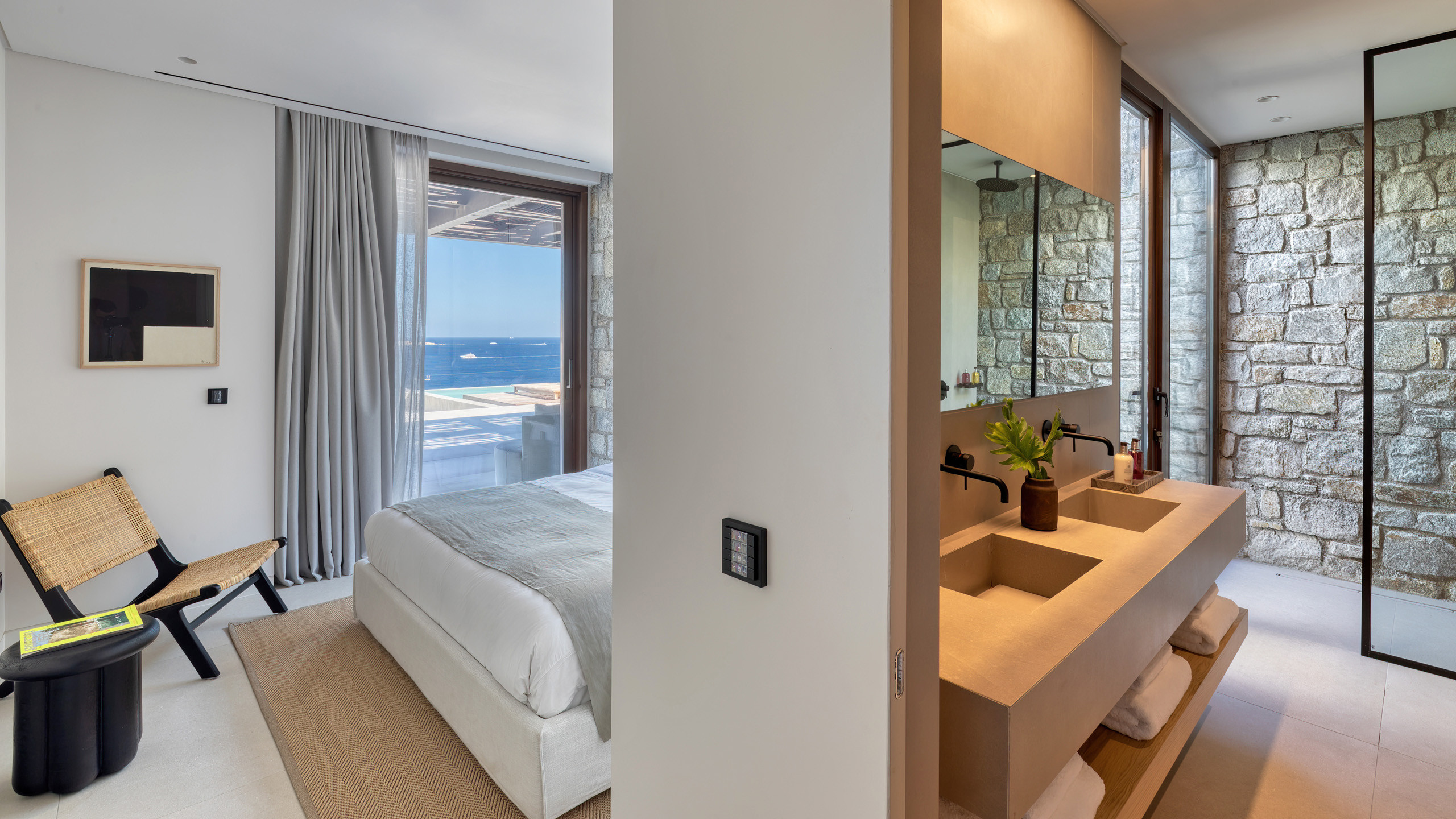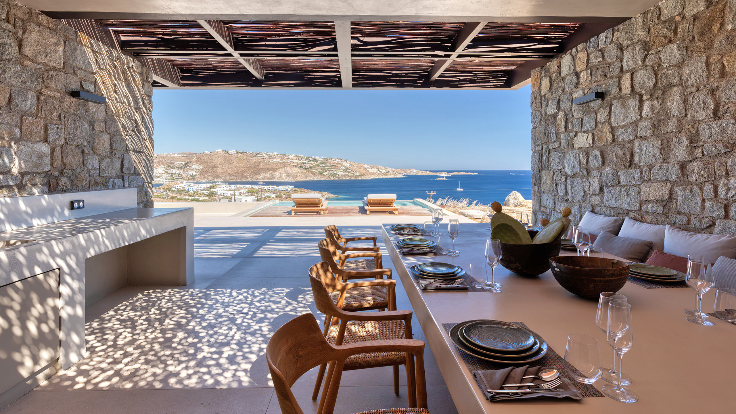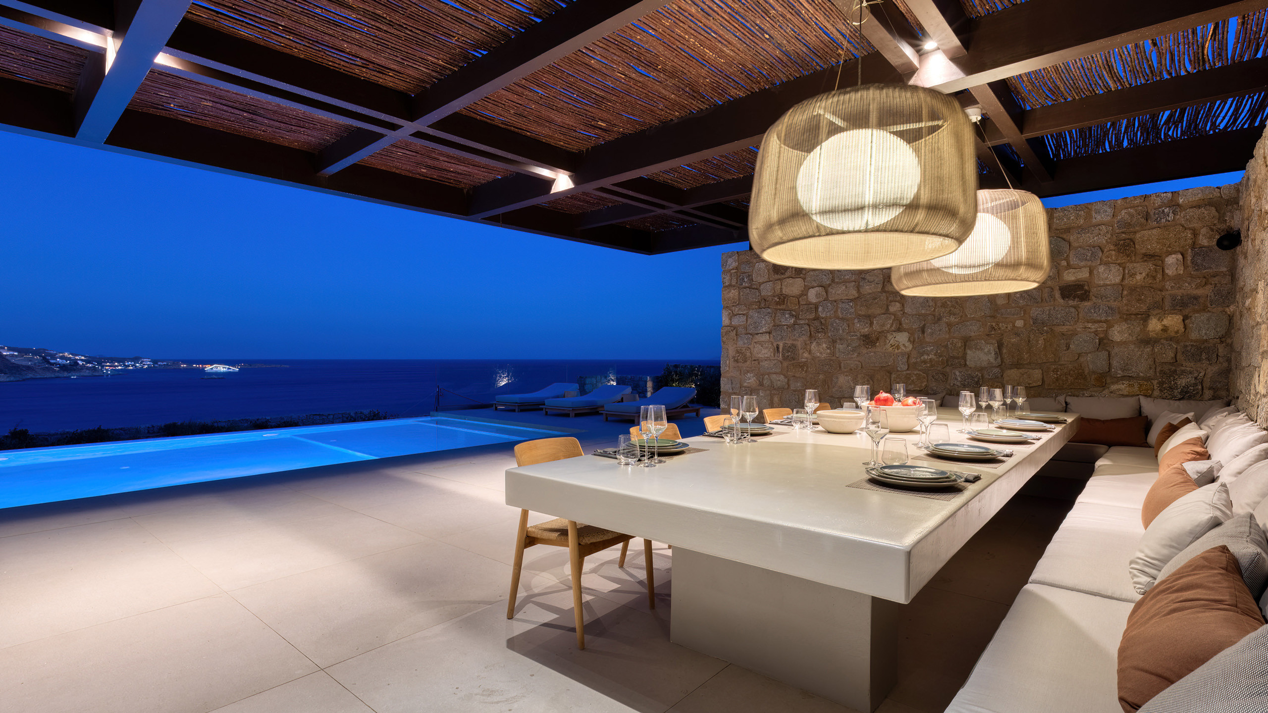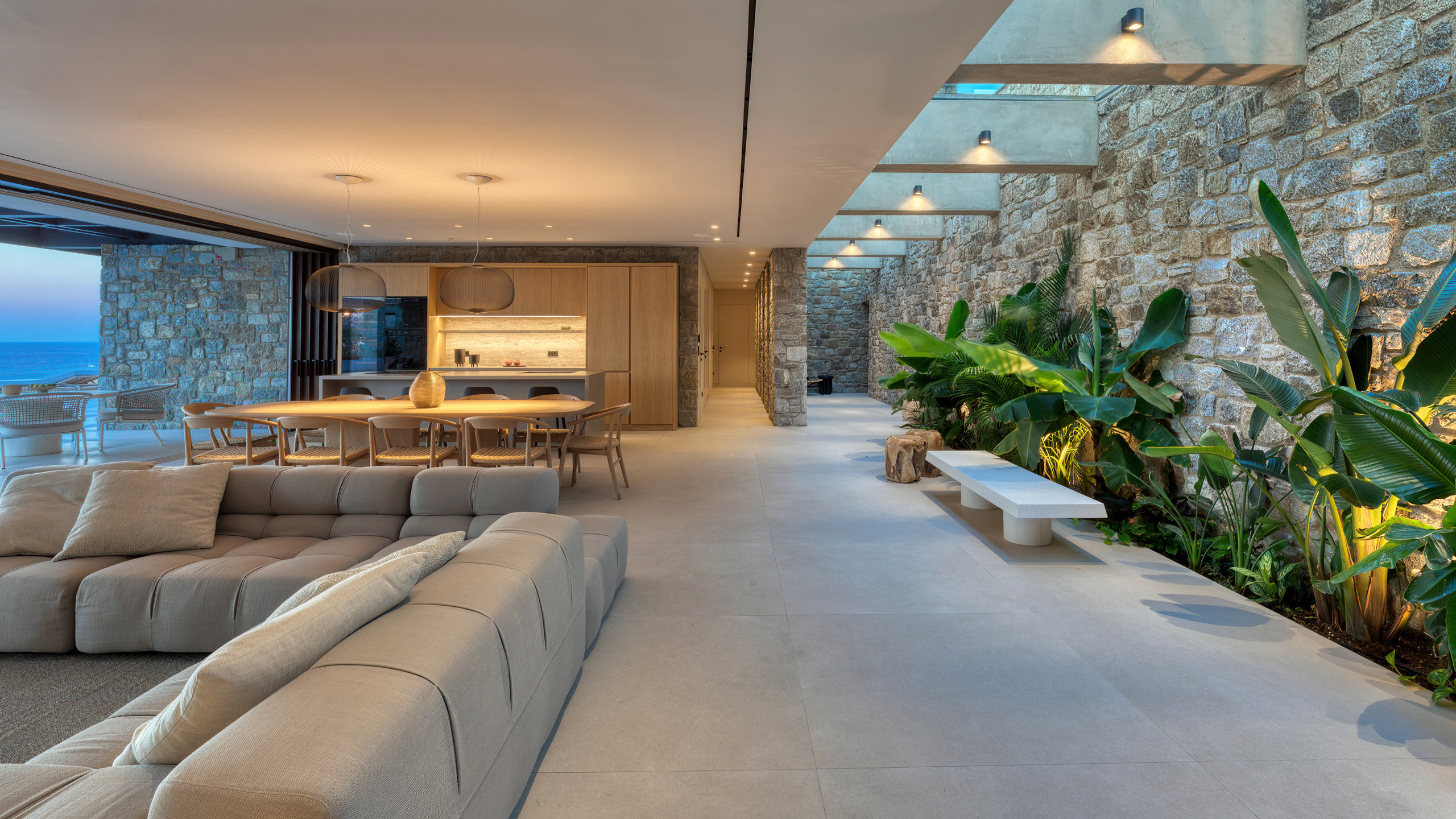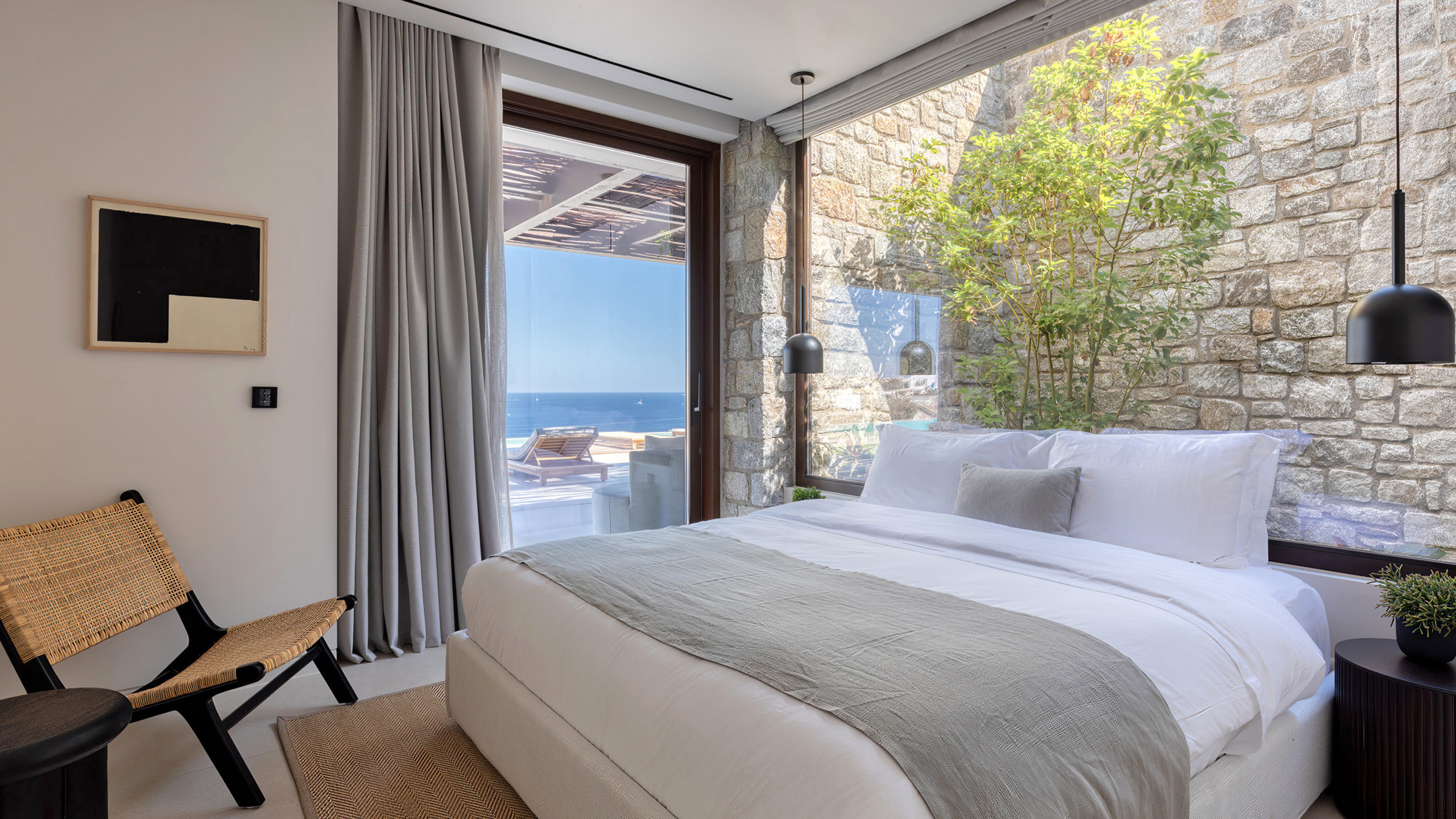 Experience unmatched luxury in Mykonos at Avalon. Escape to serenity and enjoy complete privacy in our brand-new bioclimatic stone property in Mykonos. Enjoy stunning views of the Aegean Sea and unique, contemporary furnishings at this ultimate luxury vacation destination. Indulge in panoramic views of the Aegean Sea from the spacious open-plan design and natural light-filled spaces. Located just a short drive from beautiful beaches and exciting activities, Avalon offers the best of both worlds.