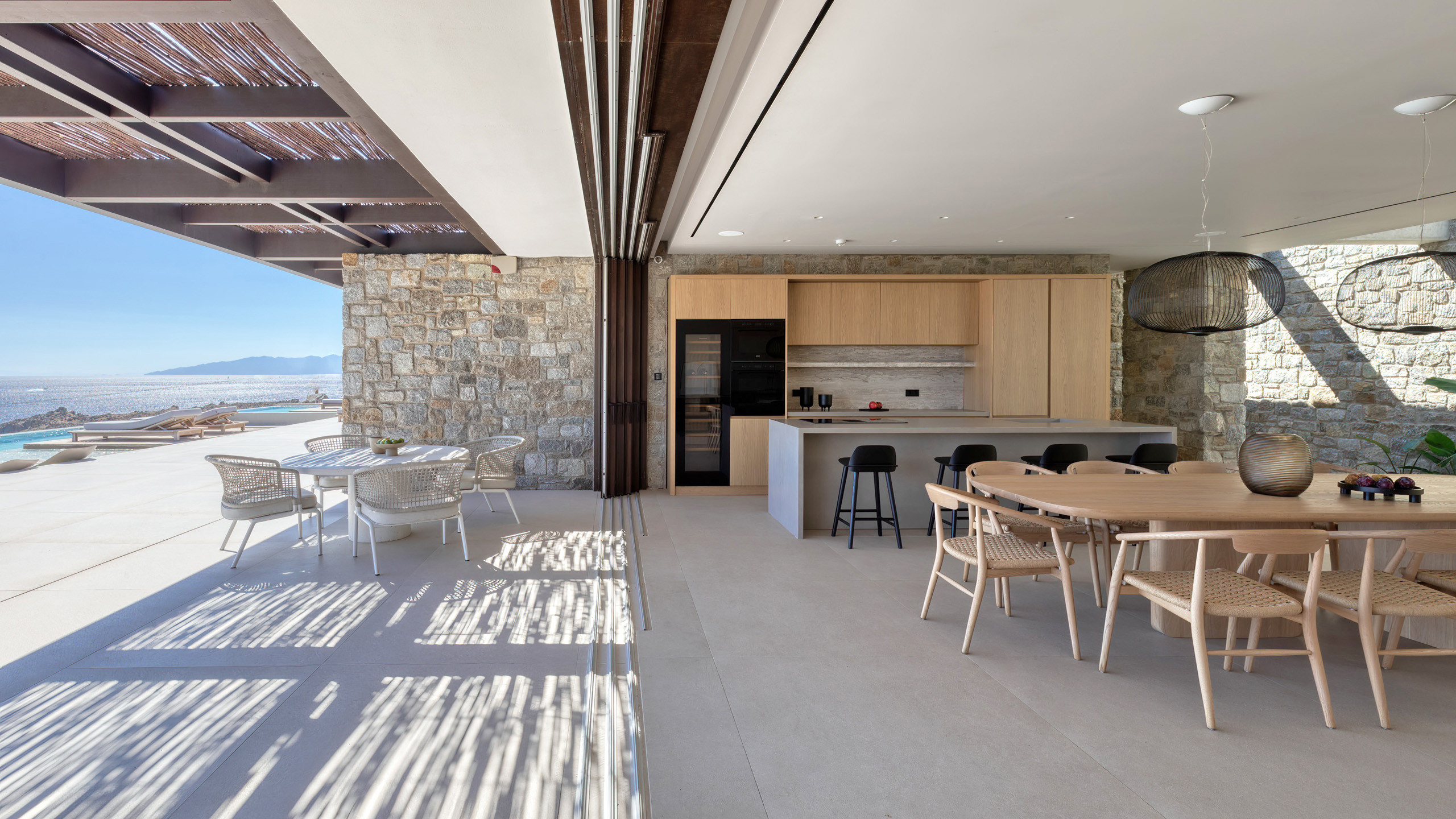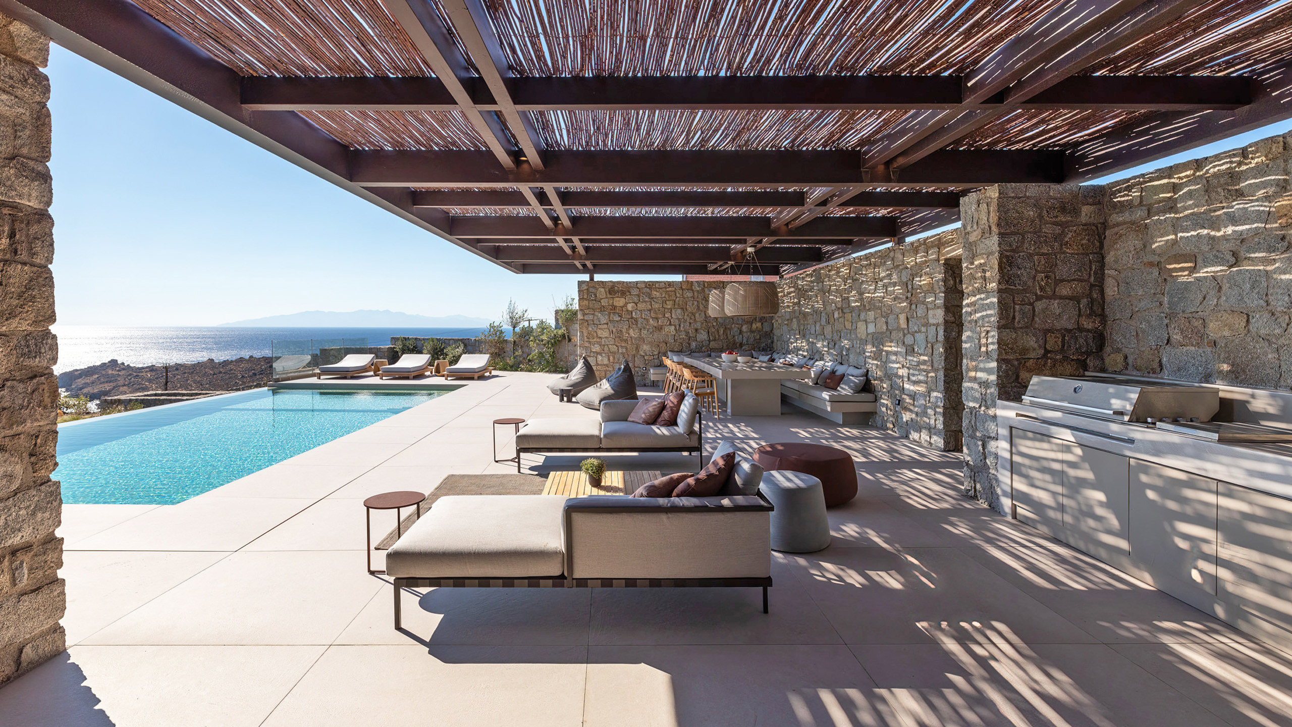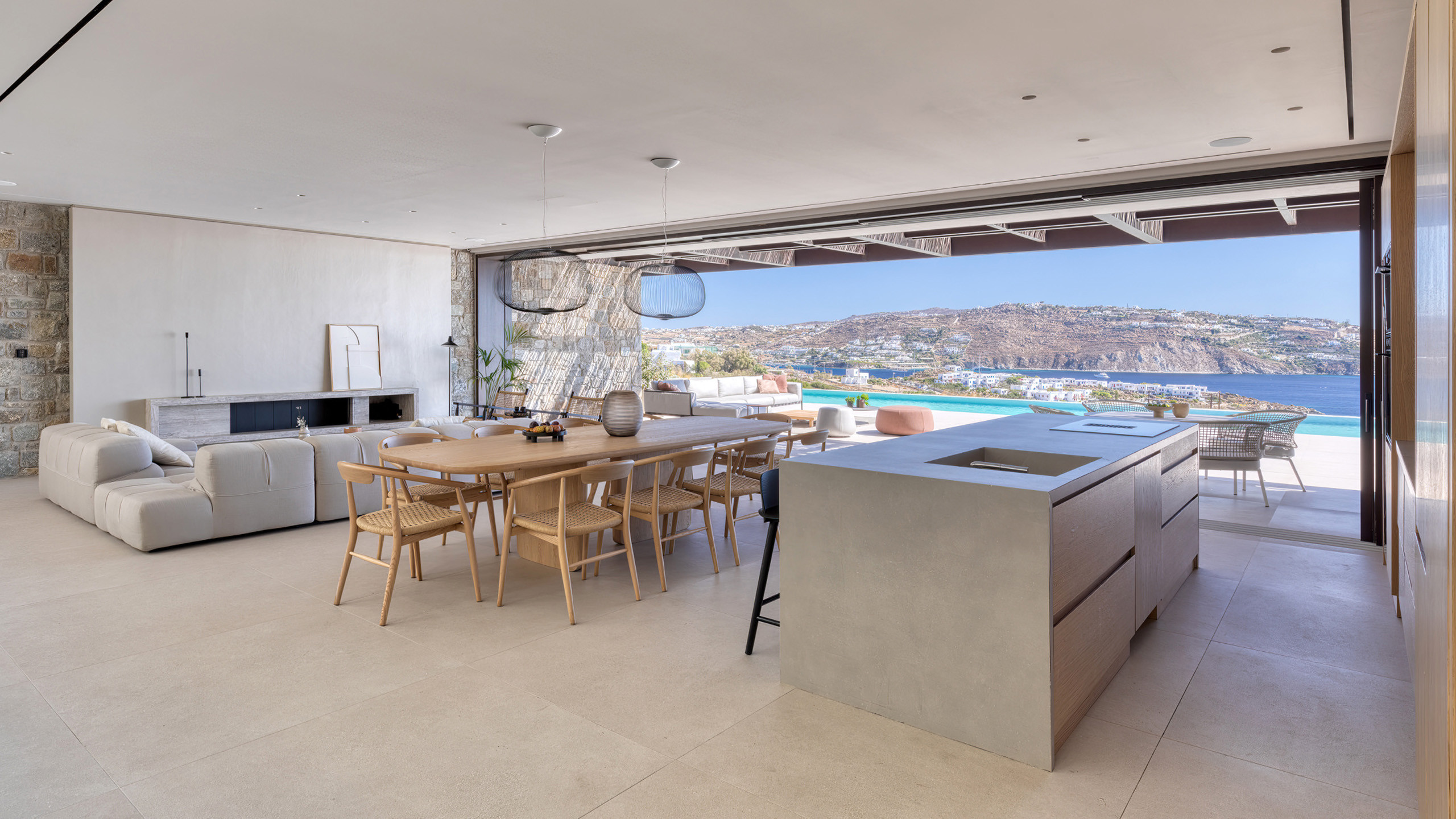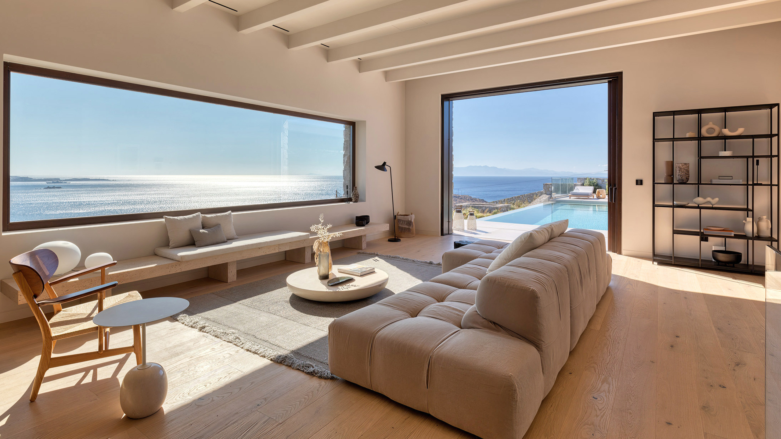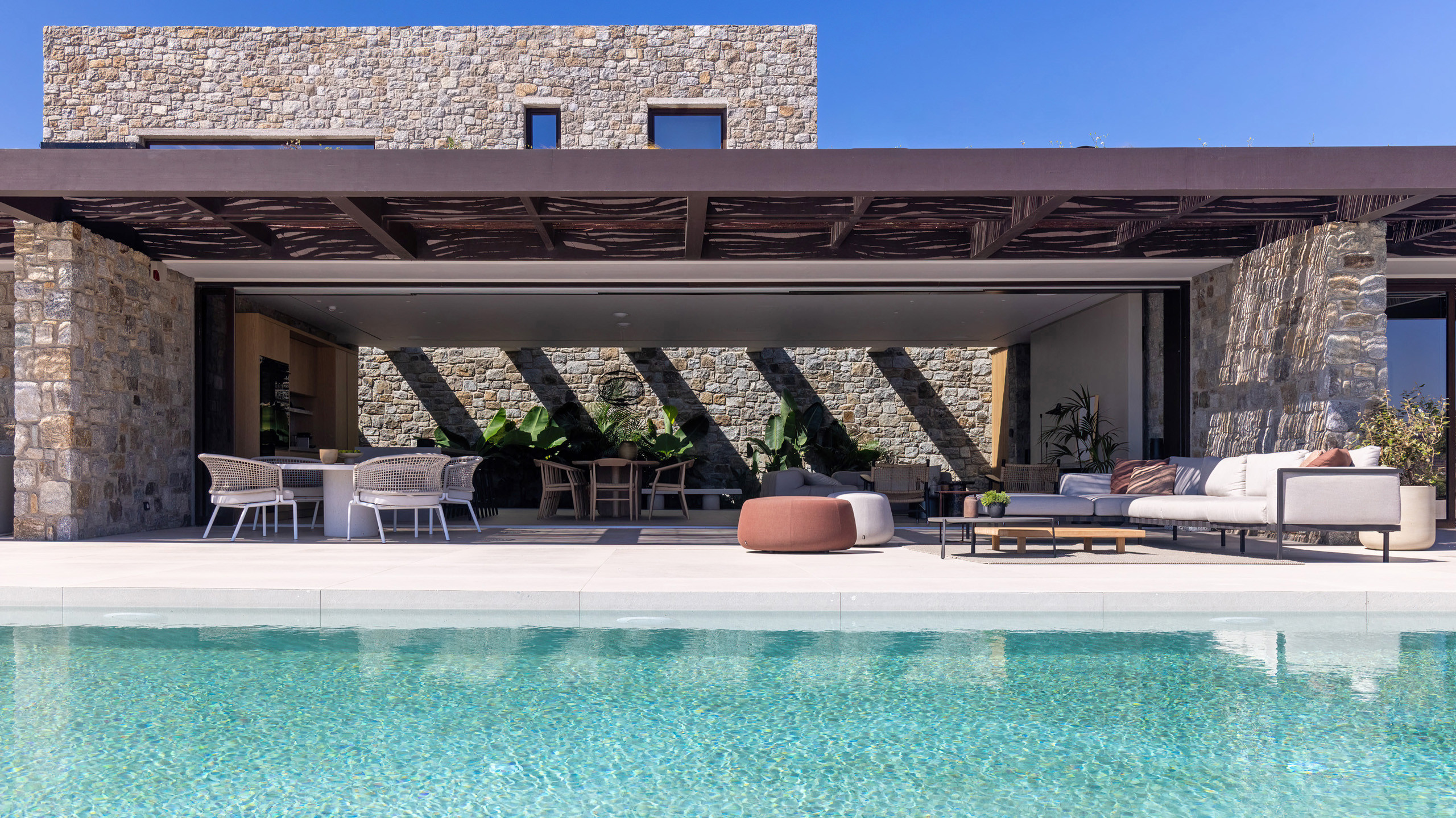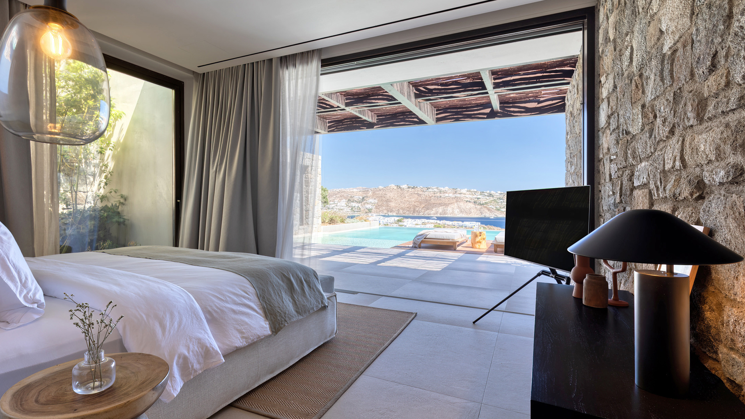 Experience unmatched luxury in Mykonos at Avalon. Escape to serenity and enjoy complete privacy in our brand-new bioclimatic stone property in Mykonos. Enjoy stunning views of the Aegean Sea and unique, contemporary furnishings at this ultimate luxury vacation destination. Indulge in panoramic views of the Aegean Sea from the spacious open-plan design and natural light-filled spaces. Located just a short drive from beautiful beaches and exciting activities, Avalon offers the best of both worlds.