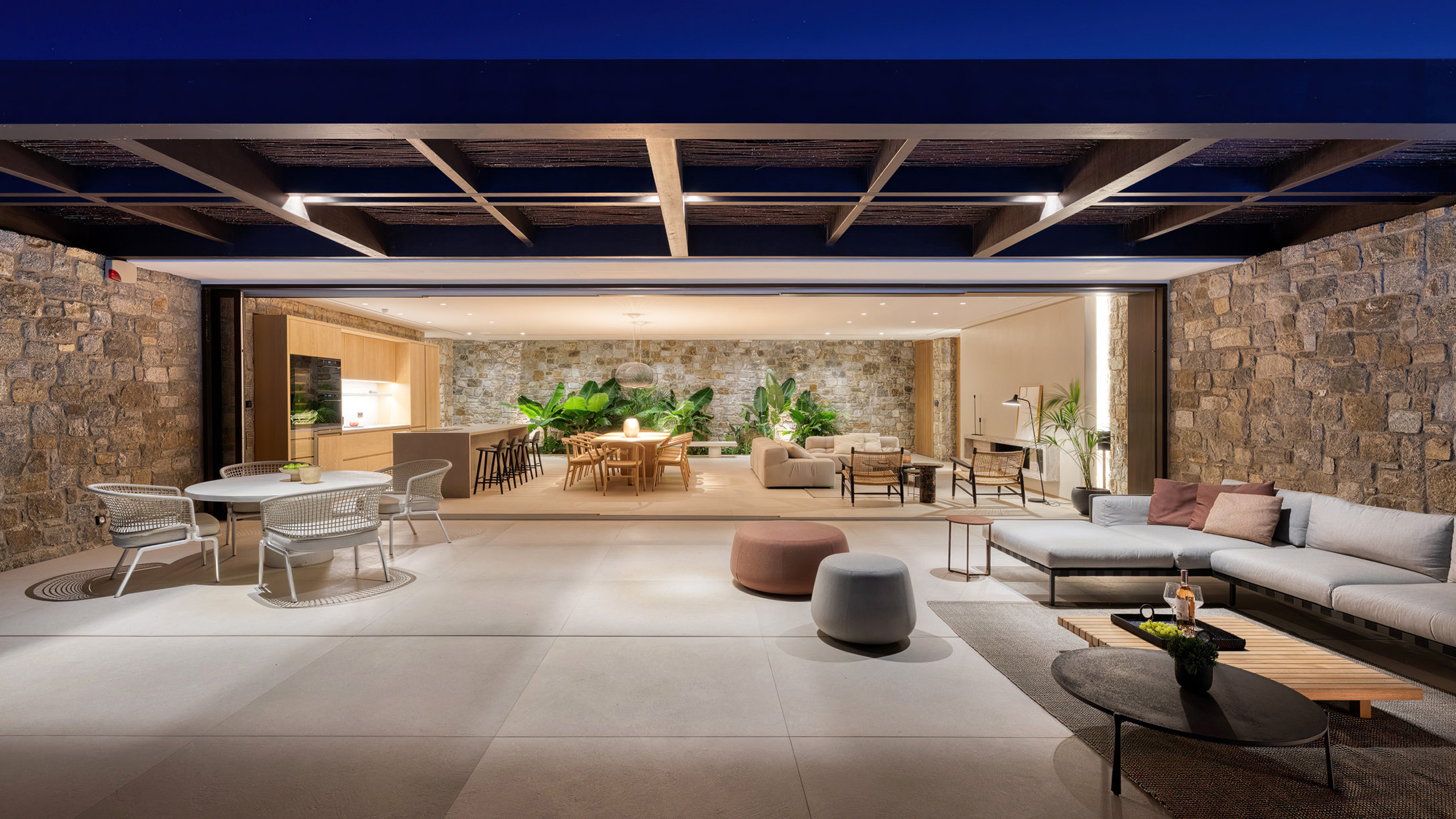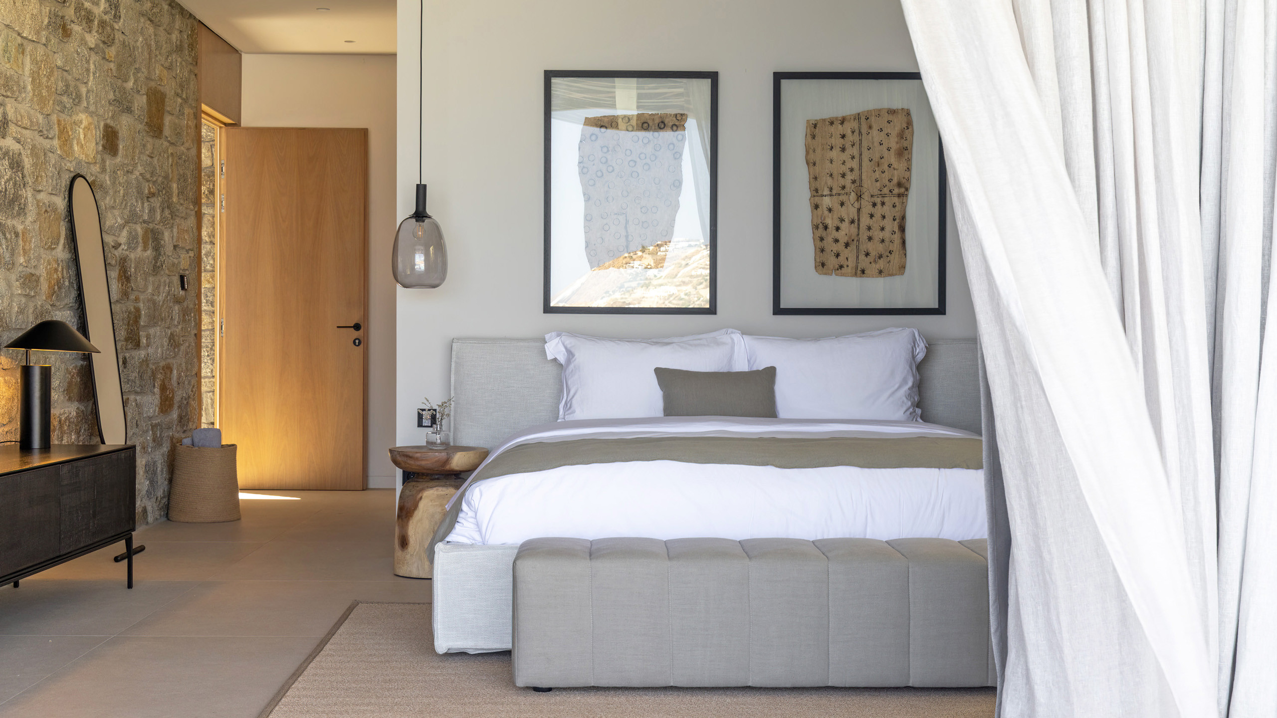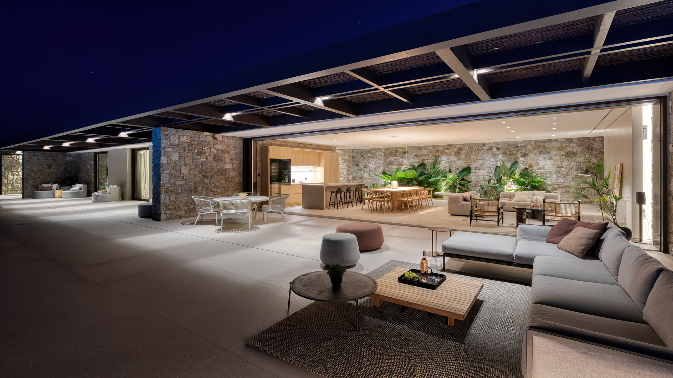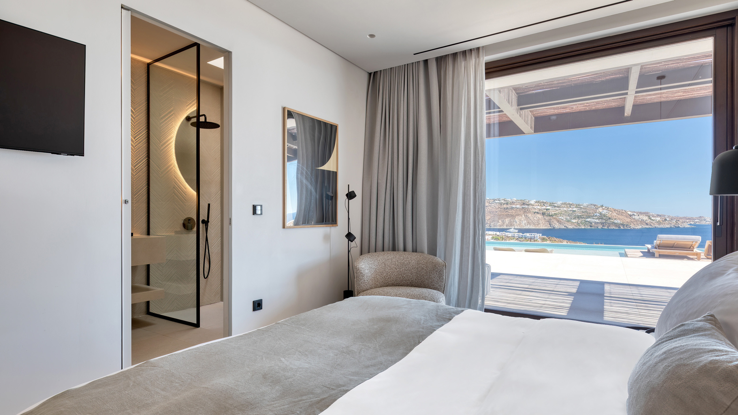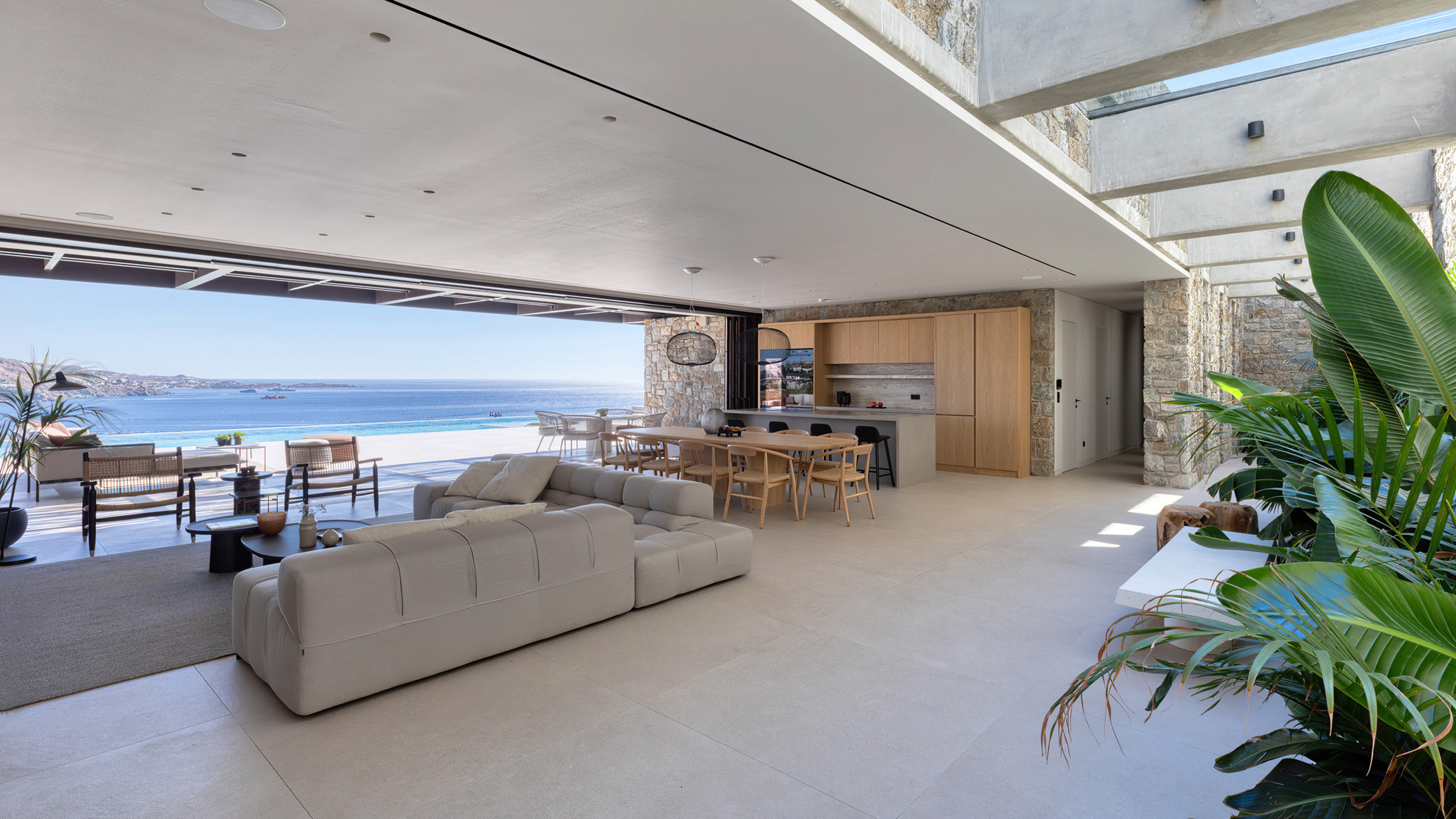 Experience unmatched luxury in Mykonos at Avalon. Escape to serenity and enjoy complete privacy in our brand-new bioclimatic stone property in Mykonos. Enjoy stunning views of the Aegean Sea and unique, contemporary furnishings at this ultimate luxury vacation destination. Indulge in panoramic views of the Aegean Sea from the spacious open-plan design and natural light-filled spaces. Located just a short drive from beautiful beaches and exciting activities, Avalon offers the best of both worlds.