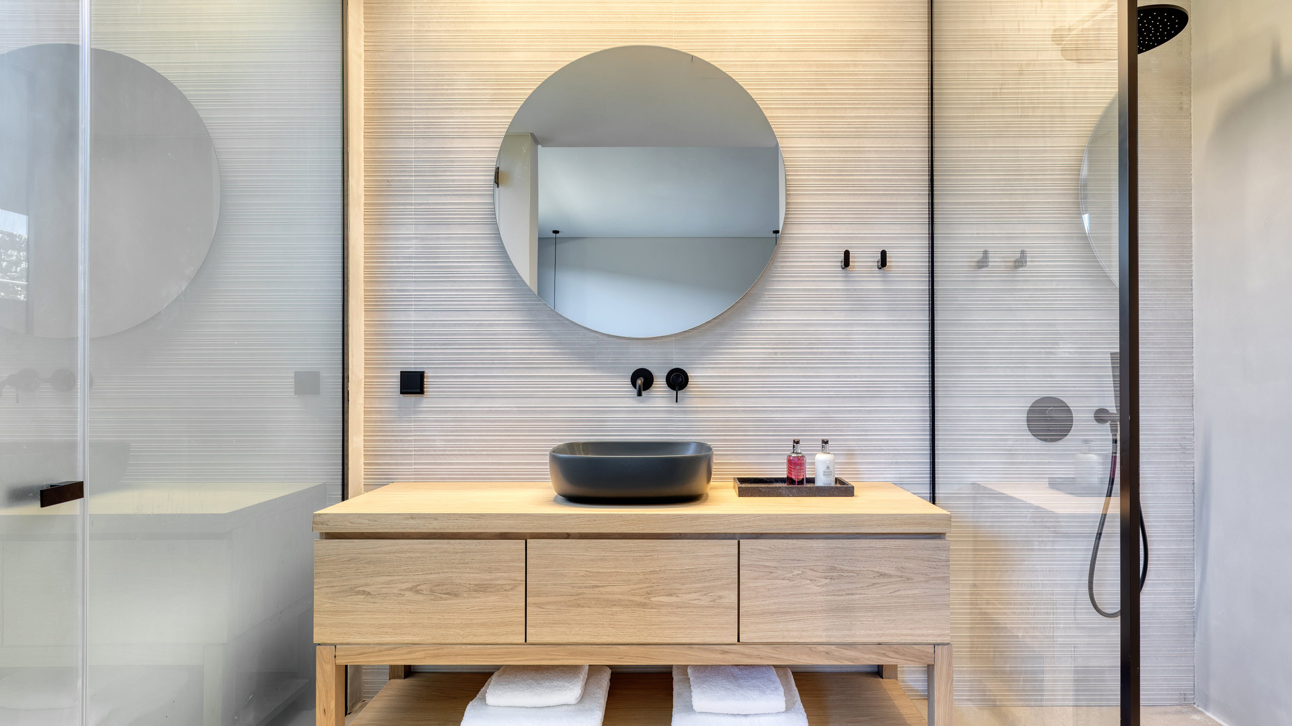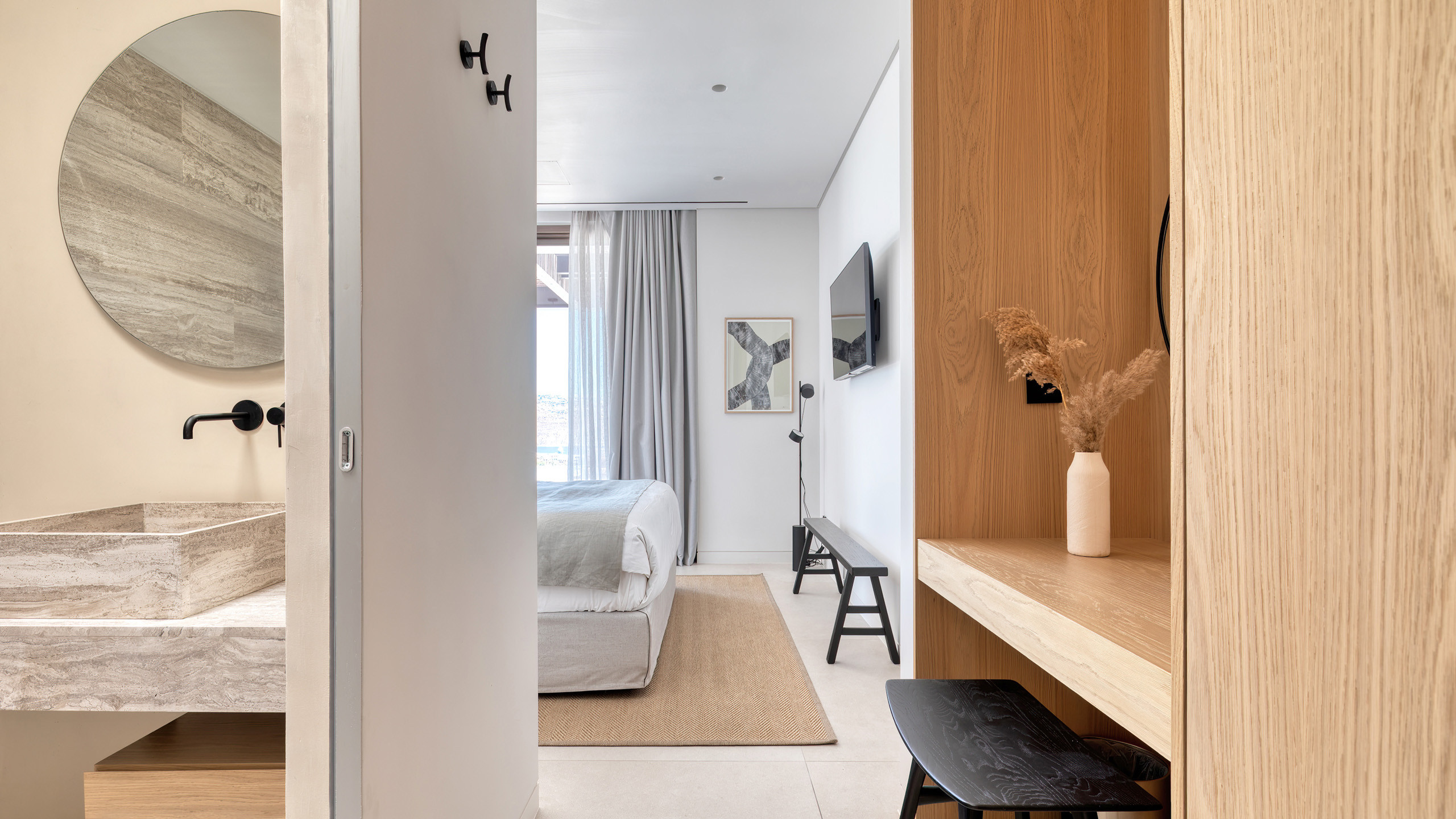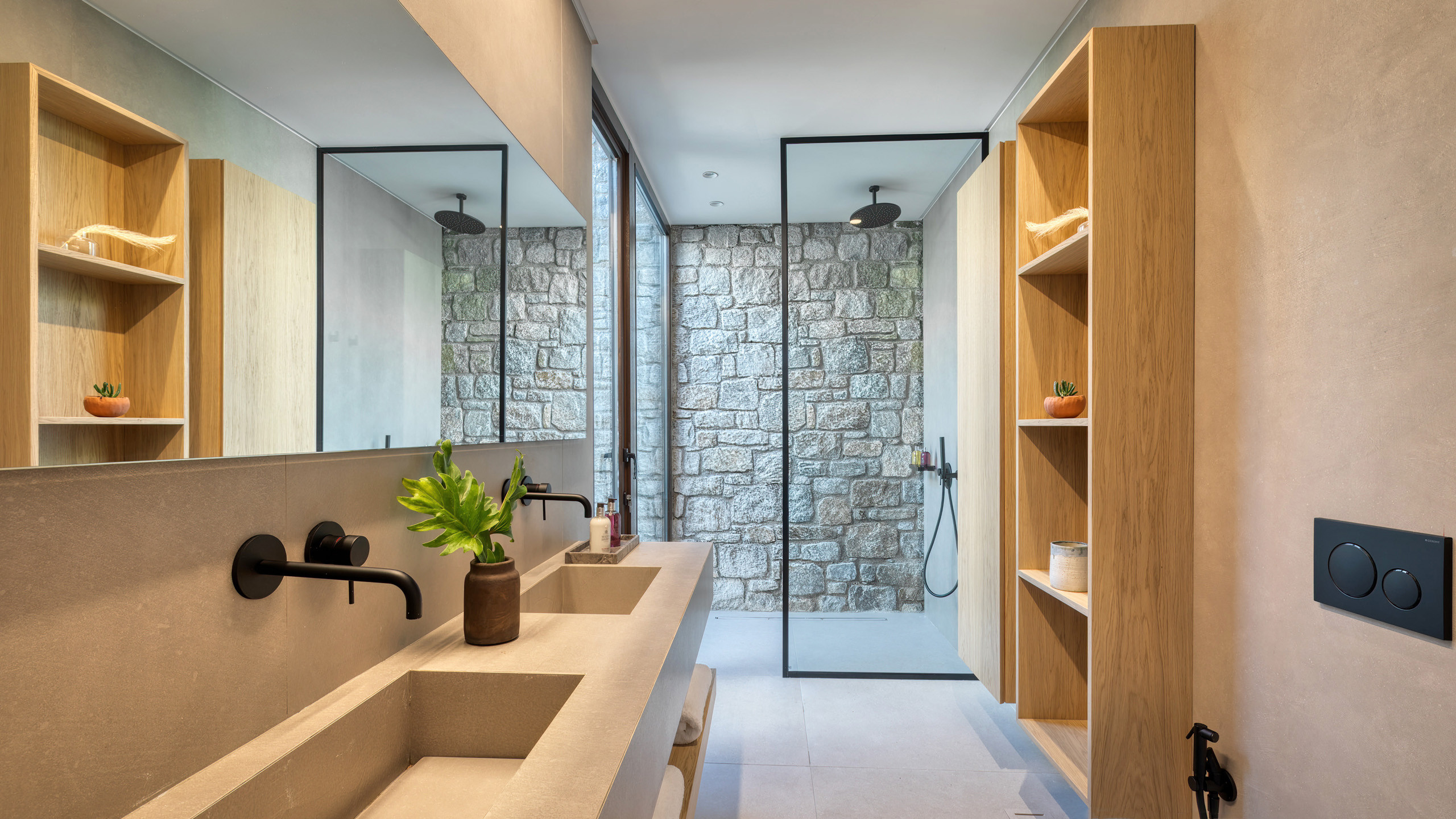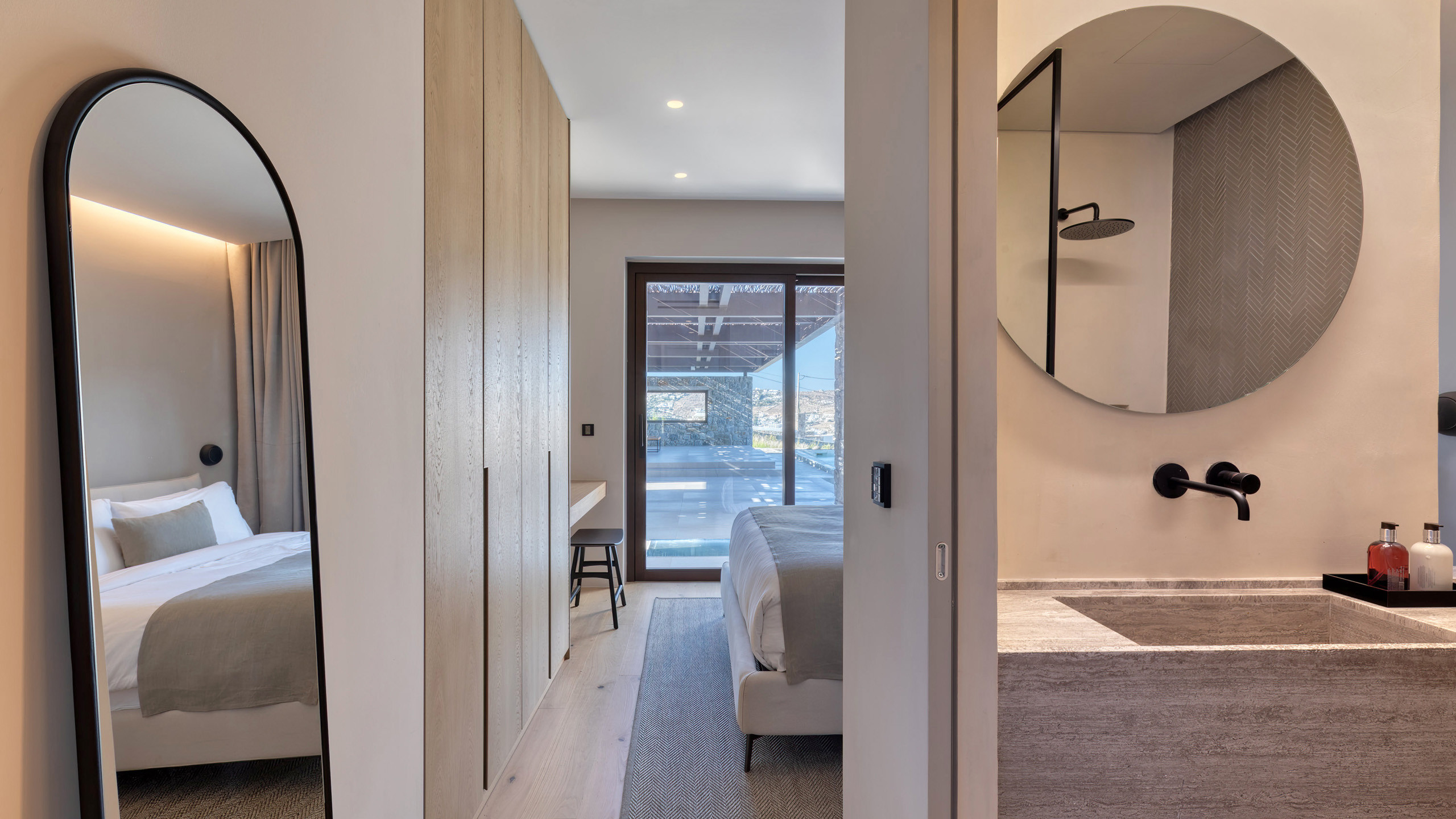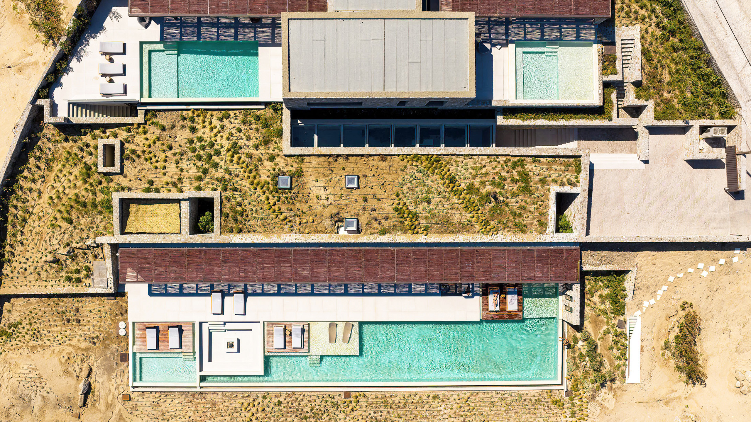Experience unmatched luxury in Mykonos at Avalon. Escape to serenity and enjoy complete privacy in our brand-new bioclimatic stone property in Mykonos. Enjoy stunning views of the Aegean Sea and unique, contemporary furnishings at this ultimate luxury vacation destination. Indulge in panoramic views of the Aegean Sea from the spacious open-plan design and natural light-filled spaces. Located just a short drive from beautiful beaches and exciting activities, Avalon offers the best of both worlds.