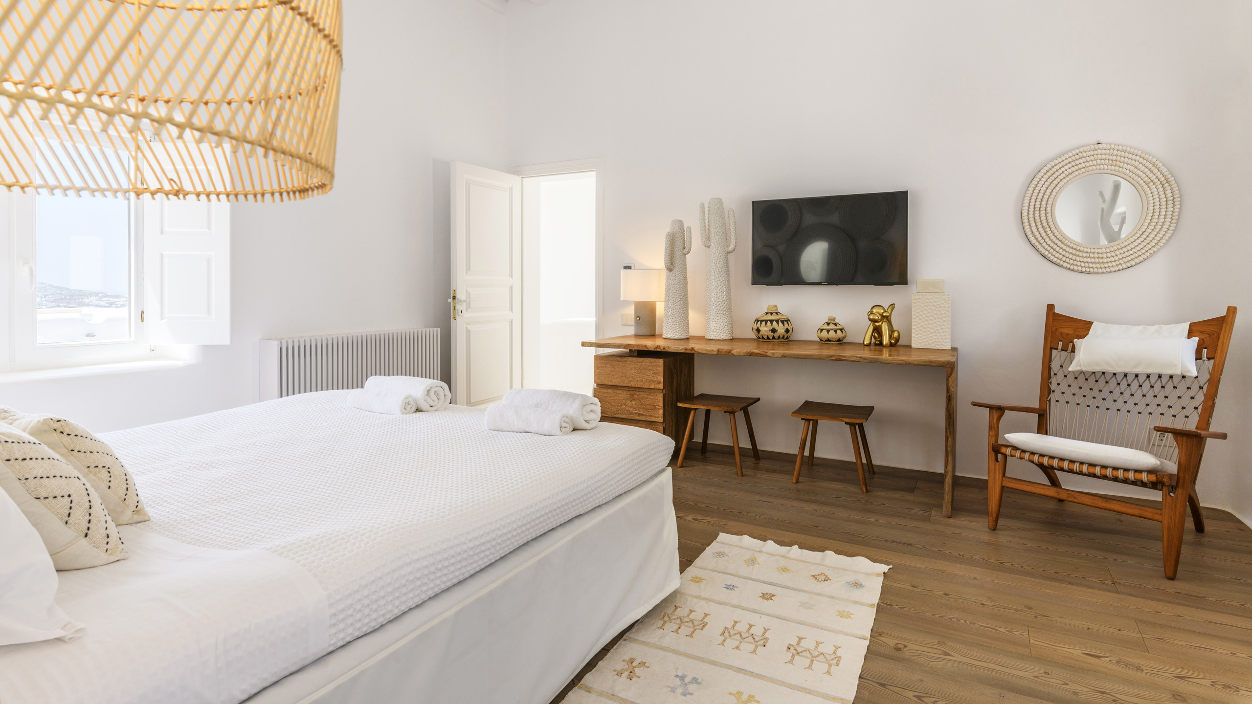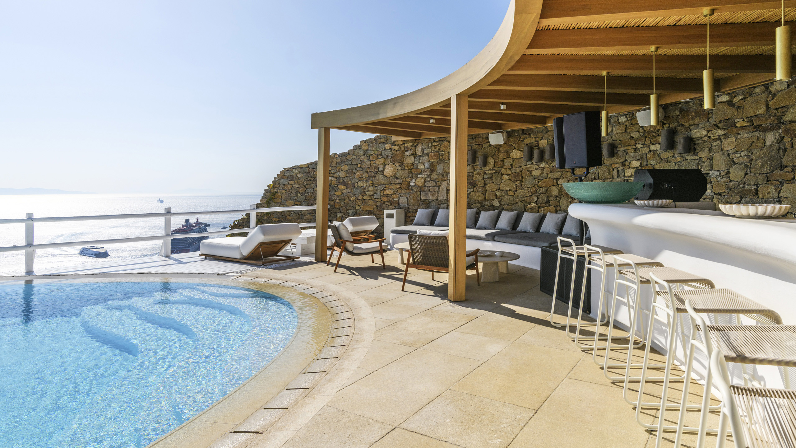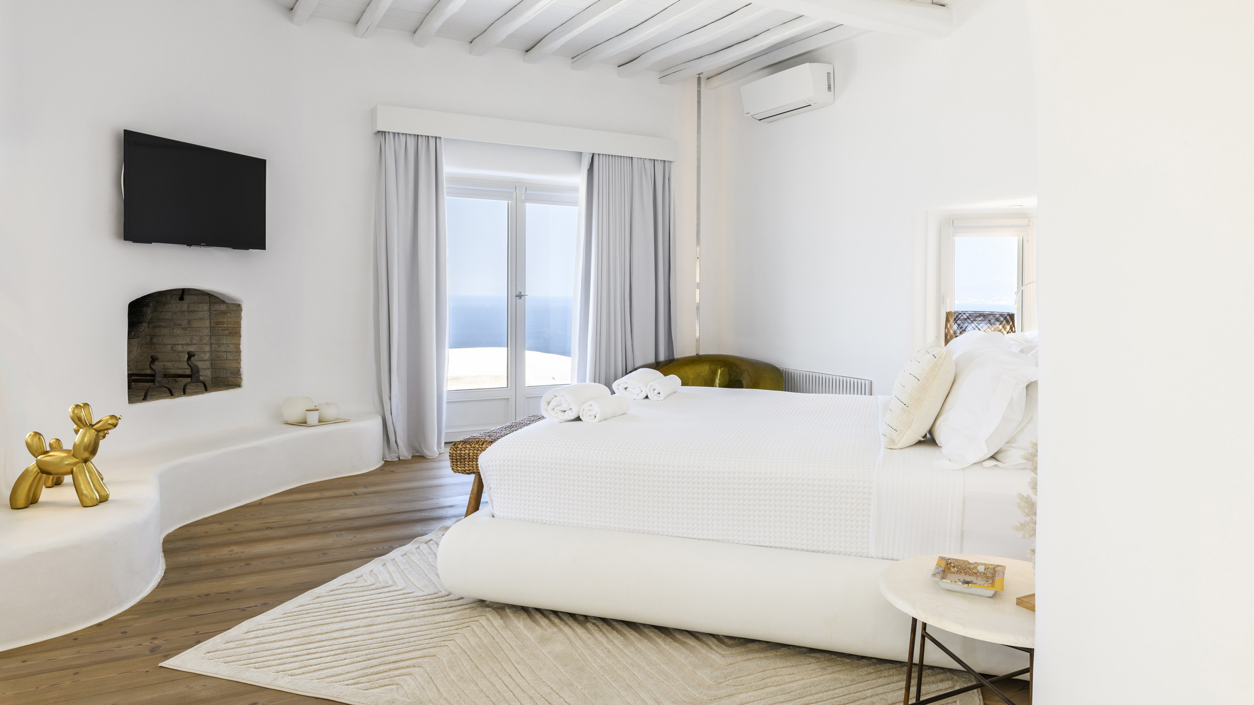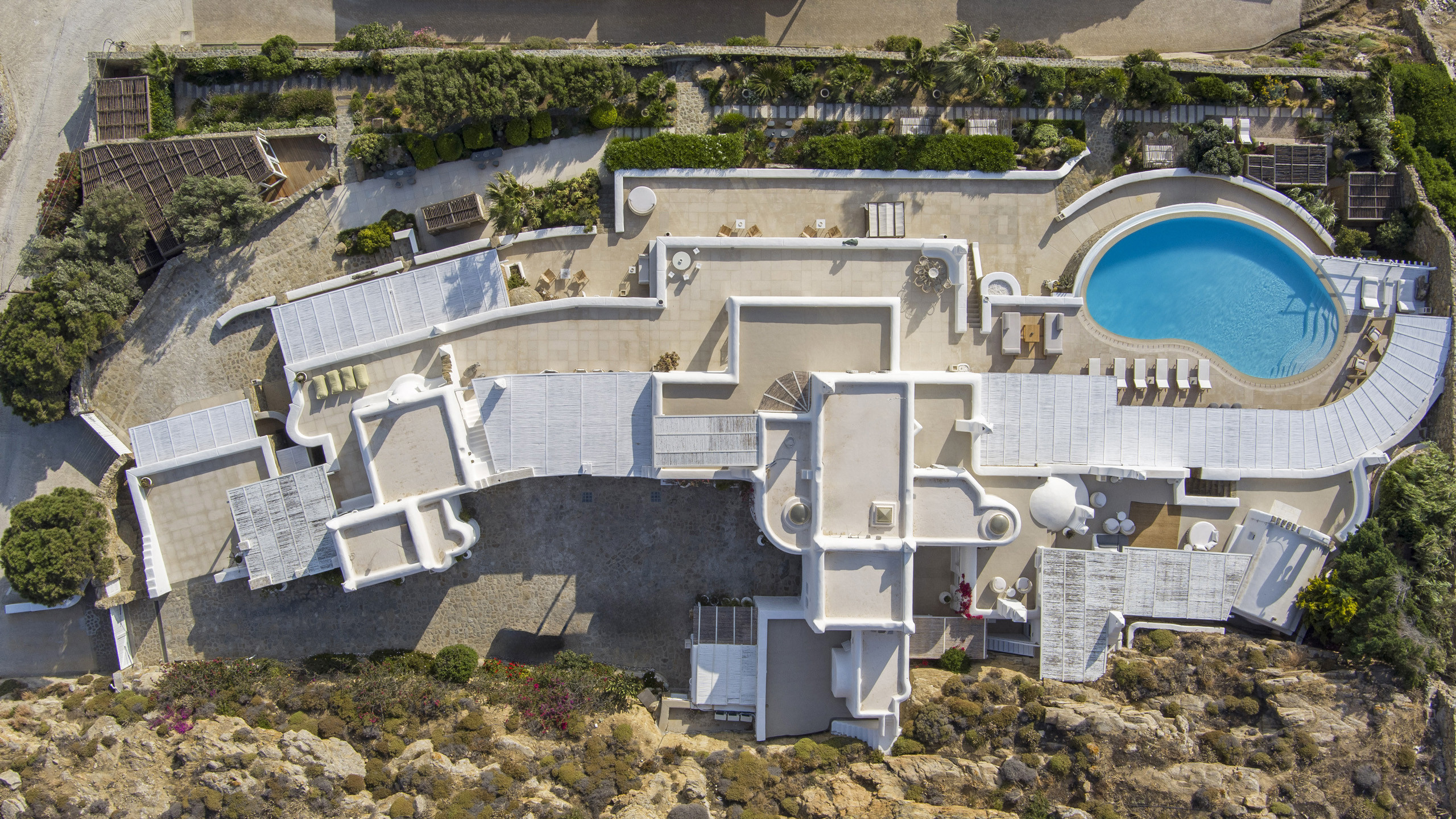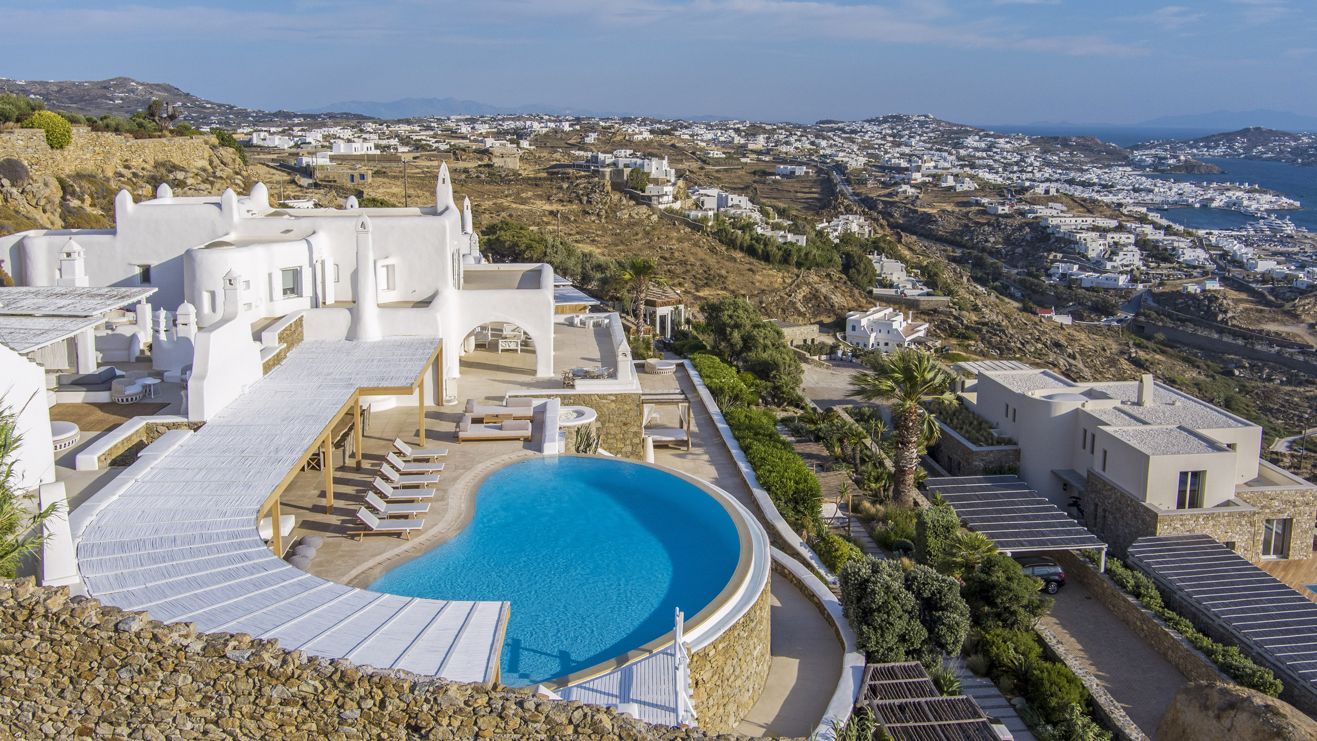 The Tourlos area is characterized by the presence of numerous super-exclusive properties, and the magnificent Breeze naturally fits among them. Situated on a spacious 4000 sqm plot, this villa, with its traditional Cycladic architecture, stands prominently in an elevated position, enjoying a breathtaking panoramic view of the sea and the white houses of Mykonos Town in the distance. From here, excellent beaches and the cosmopolitan city itself, with all its entertainment possibilities, are easily accessible.