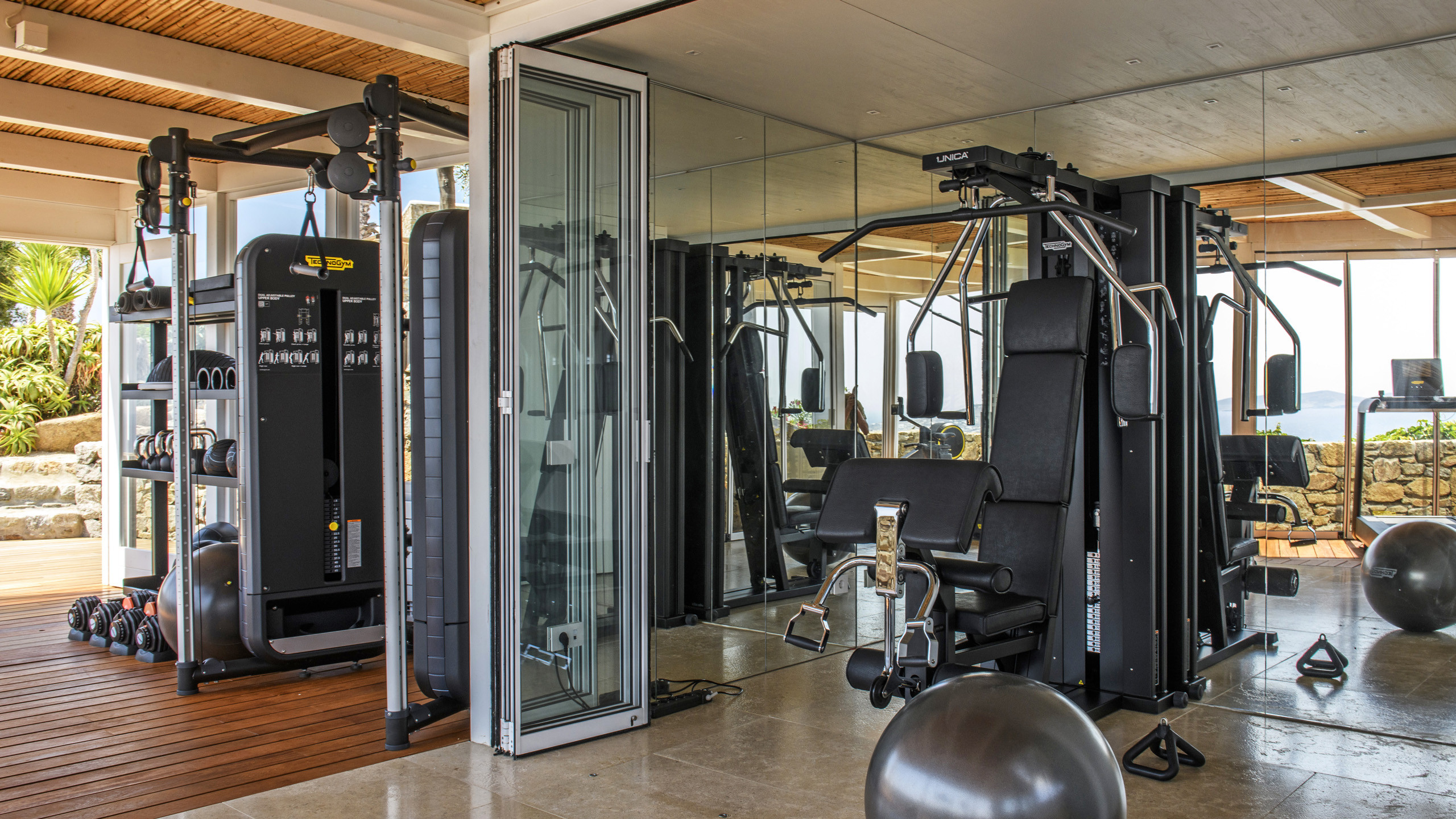 The outdoor areas are expansive and comfortable, elegantly furnished with an endless array of amenities at the disposal of guests. Starting with the beautiful infinity pool in the panoramic area, behind which stands the classic pergola housing a dining area, numerous lounges, and corners for the fortunate guests' relaxation. The lower level is dedicated to well-being, featuring a perfectly equipped gym, SPA, and sauna. For those still not satisfied, an outdoor cinema on the highest level of the residence is available for enjoyable evenings in the comfort of home, watching a movie with a cocktail prepared at the provided indoor bar.