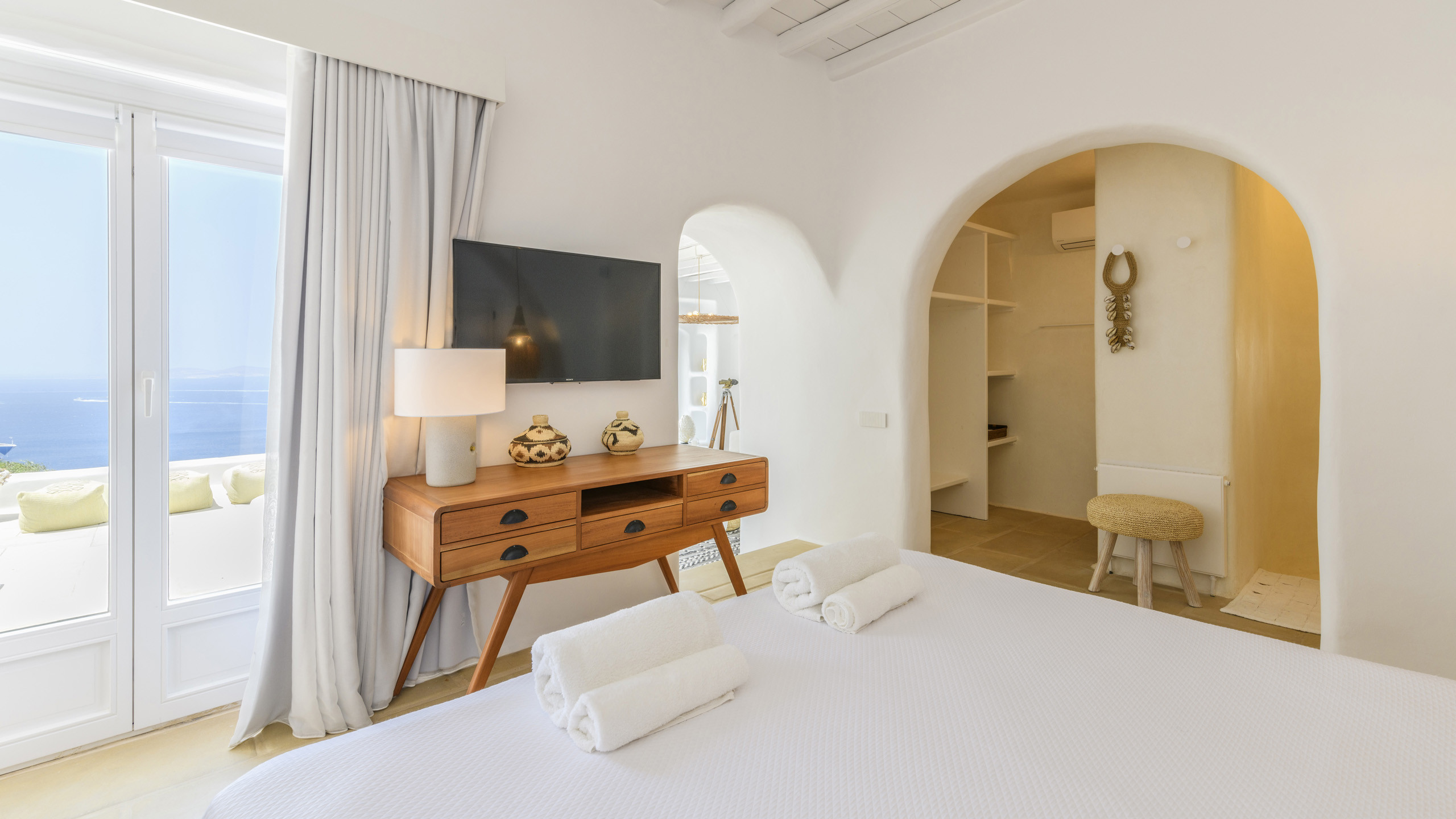 1 Master Bedroom with double bed, A/C, en-suite bathroom with shower, walk-in closet, veranda with sea view