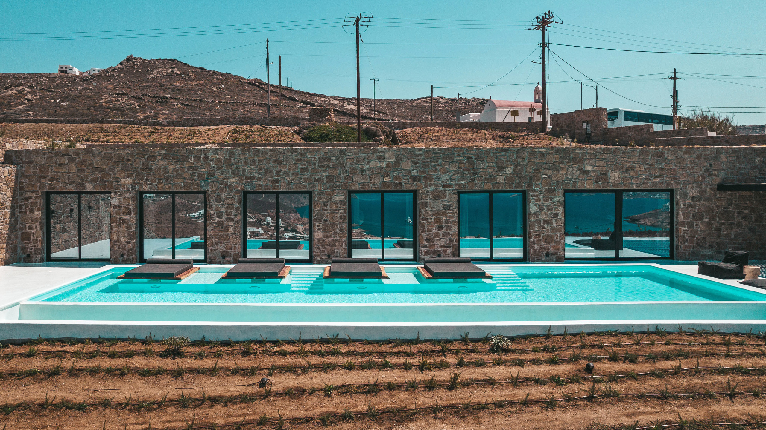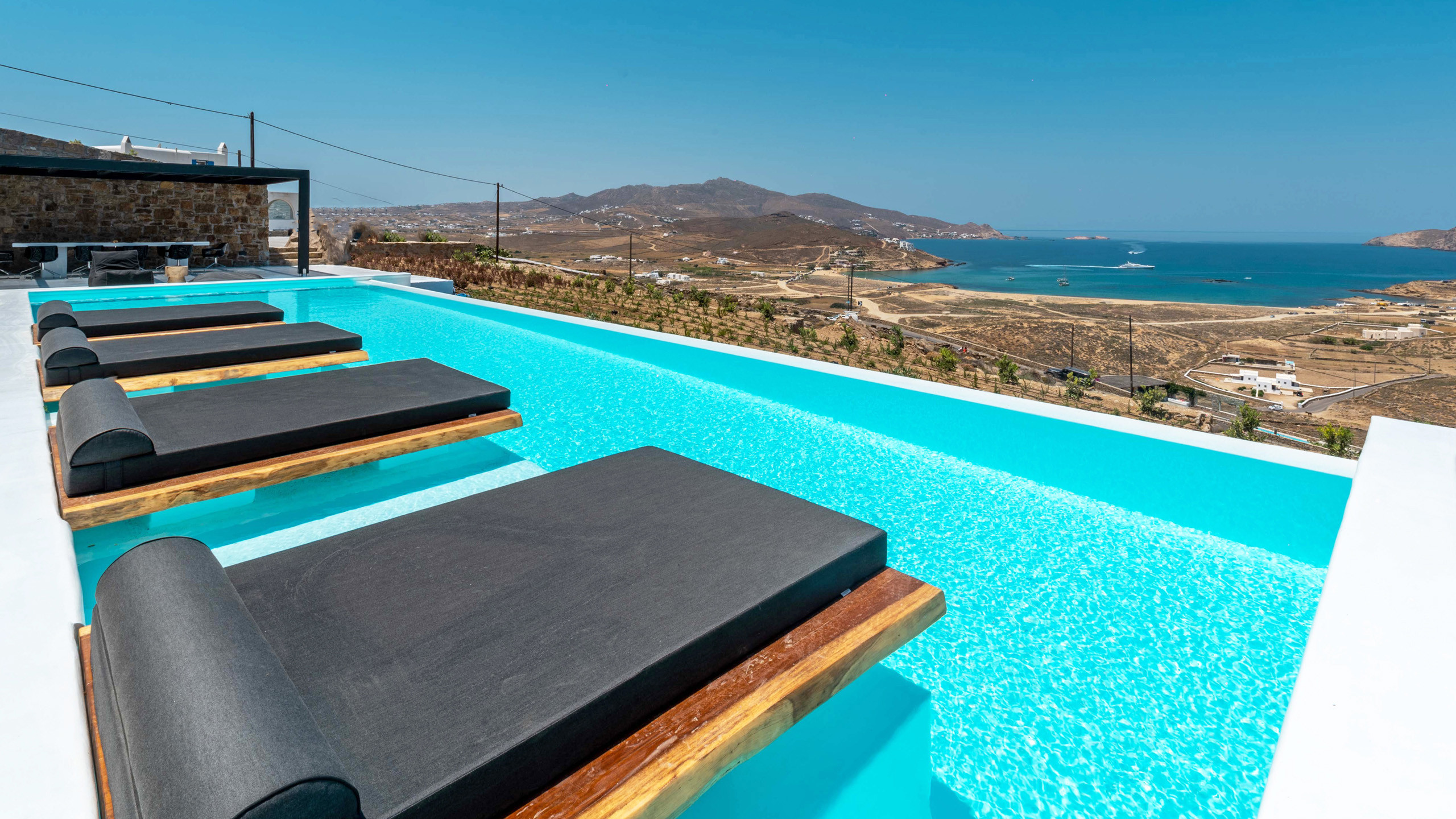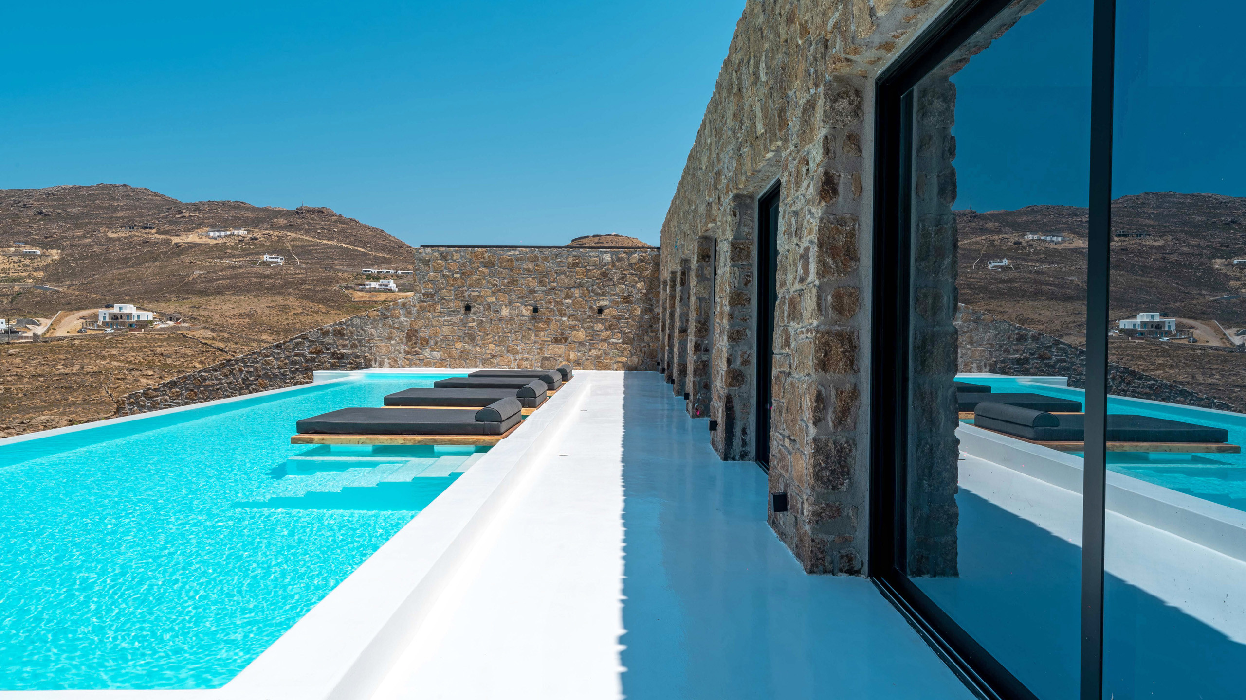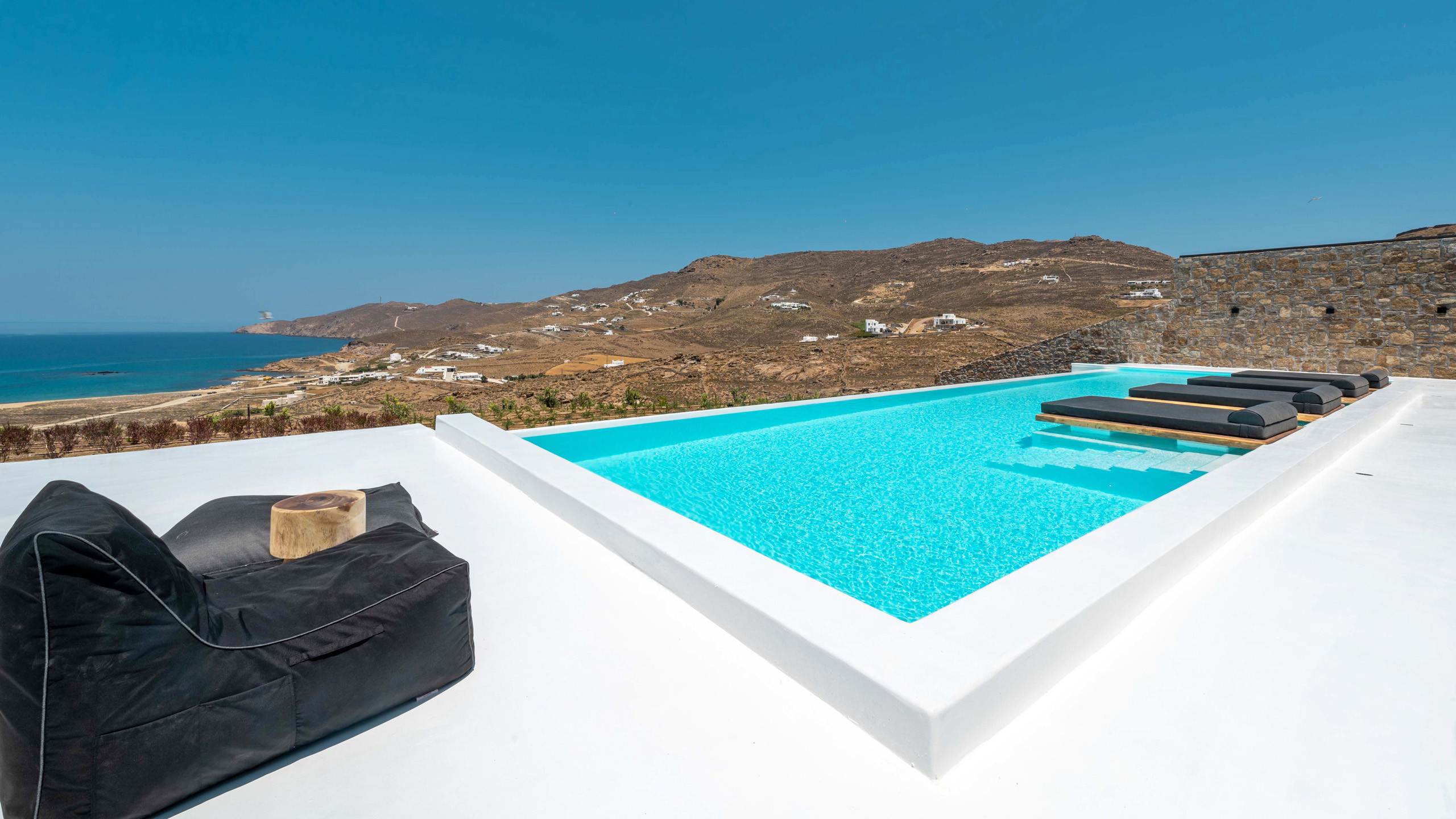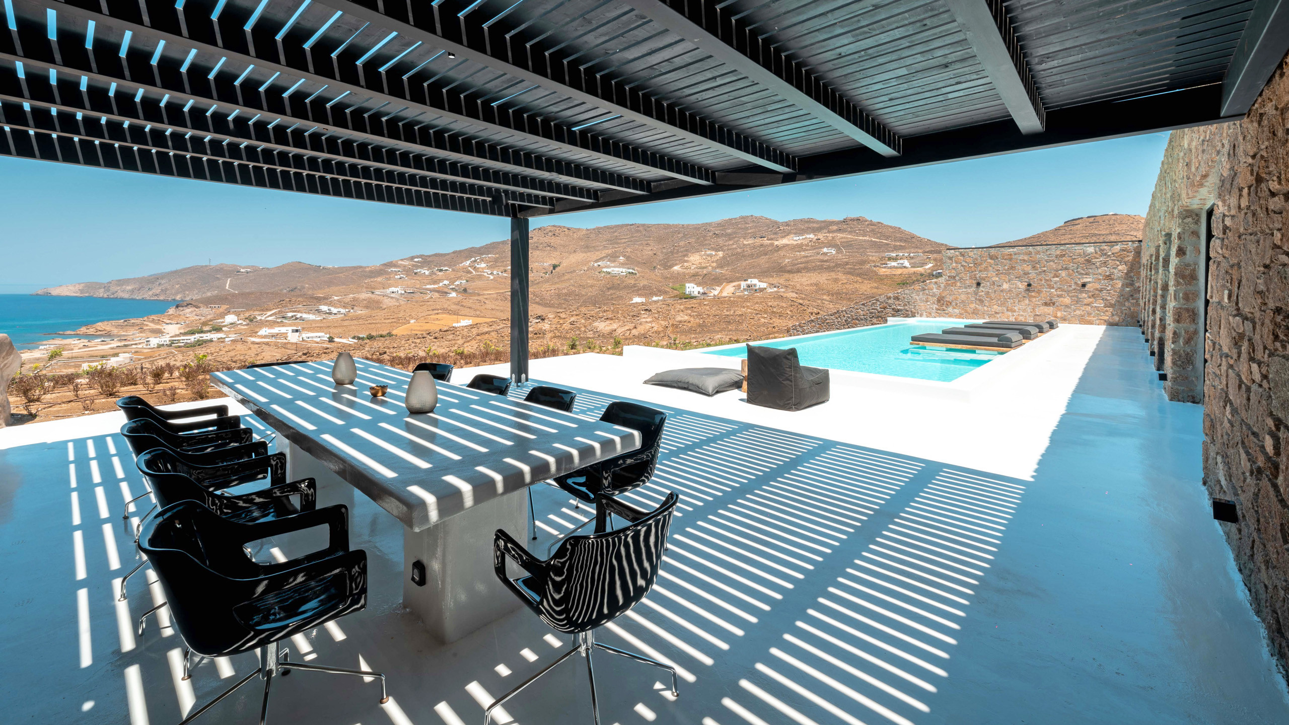 Cayman is an innovative villa, almost nestled between the rocks and featuring a modern design, perched high above Ftelia Beach. This location is particularly interesting as a starting point for exploring the island, virtually halfway between Mykonos Town and the excellent beaches on the eastern coast of the island.