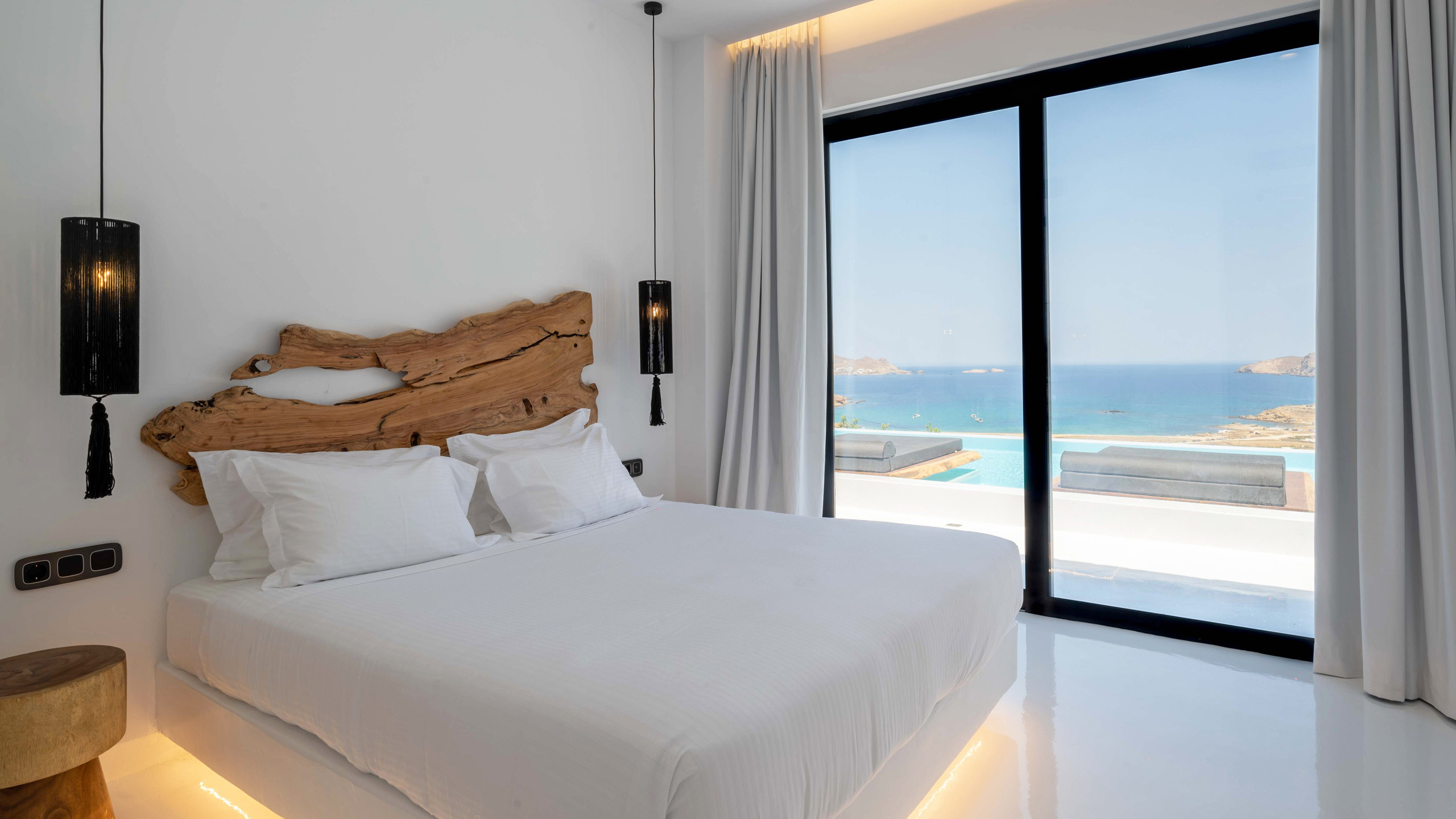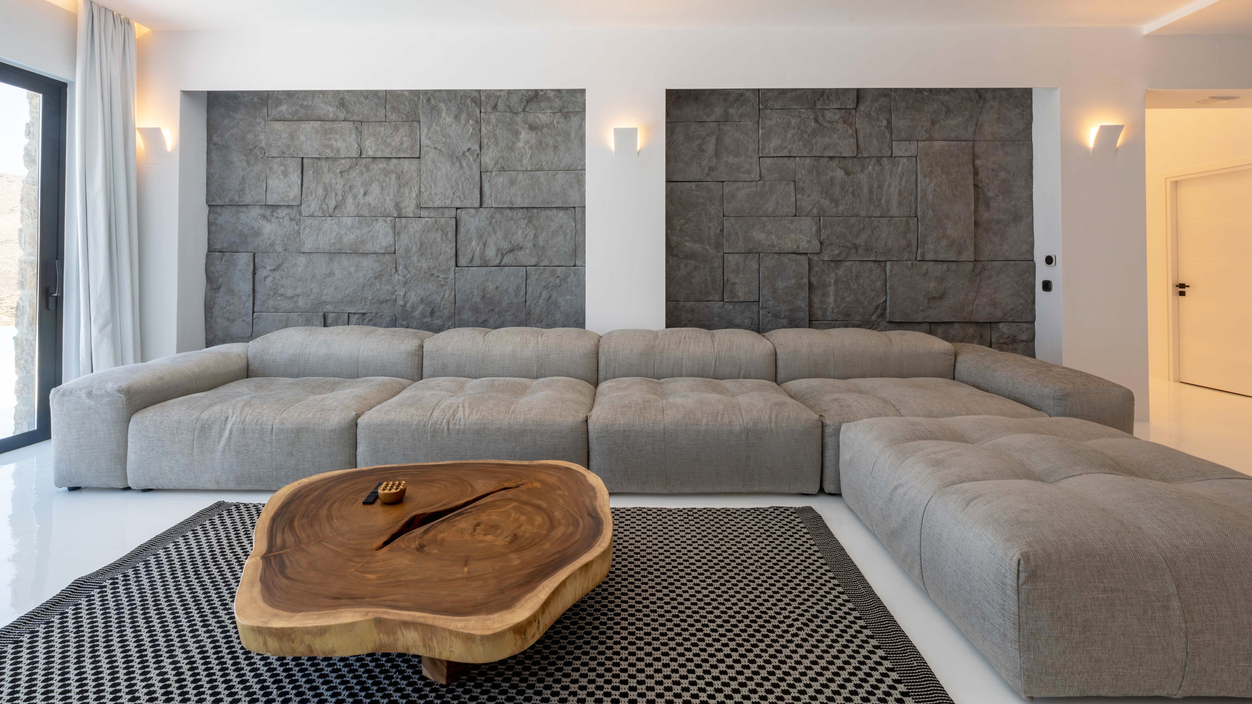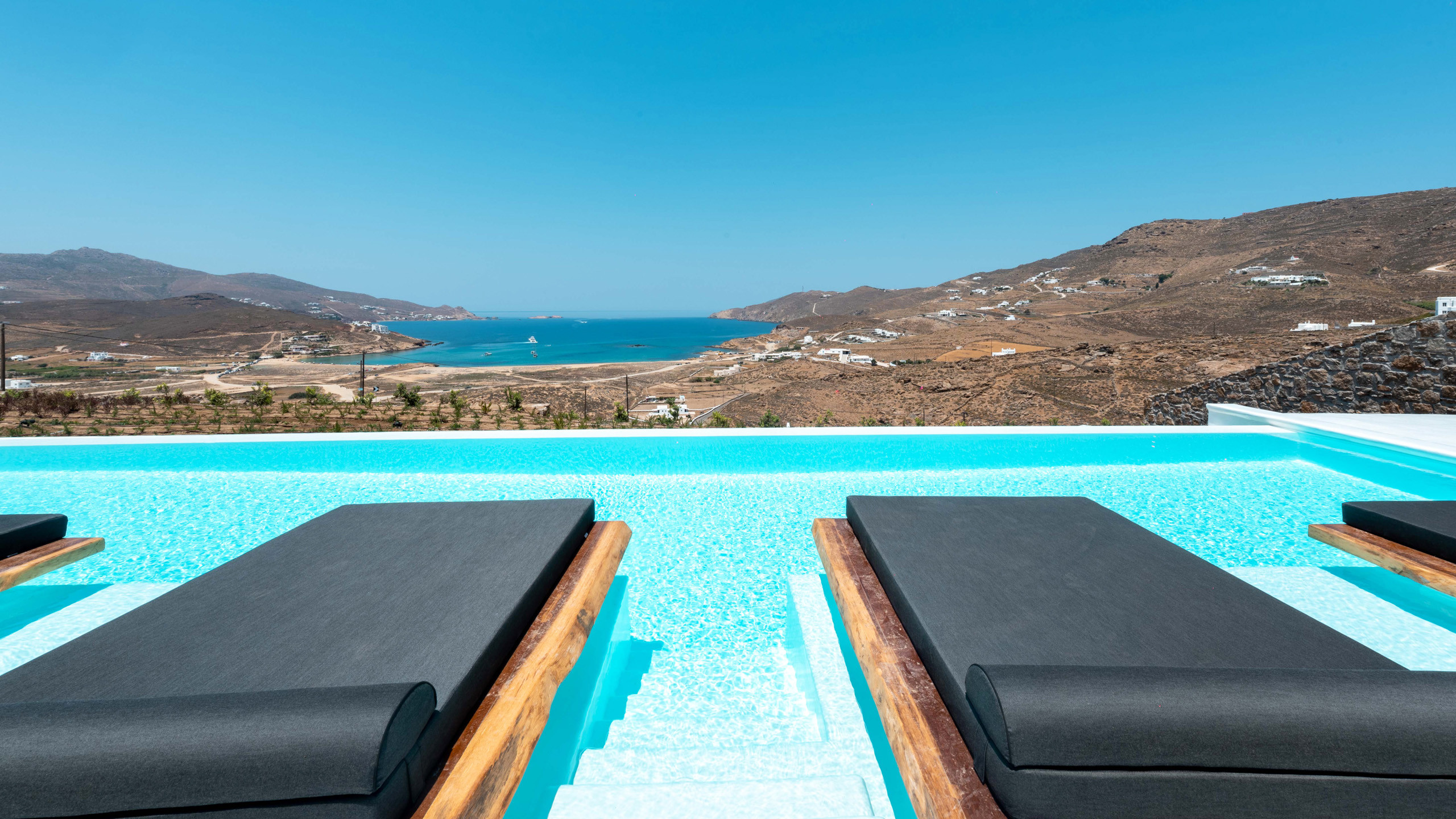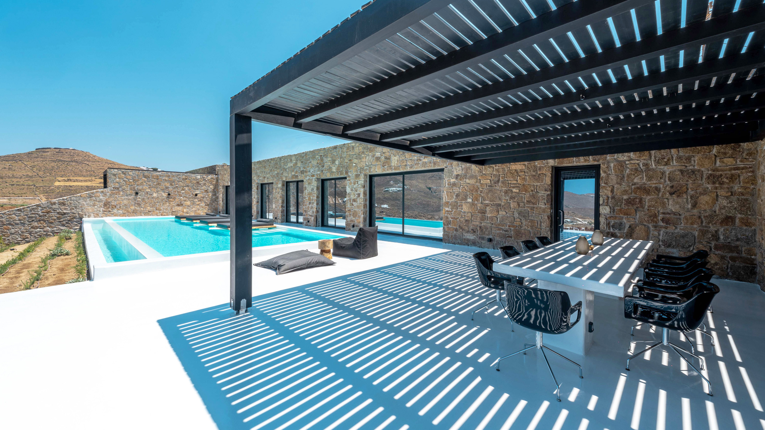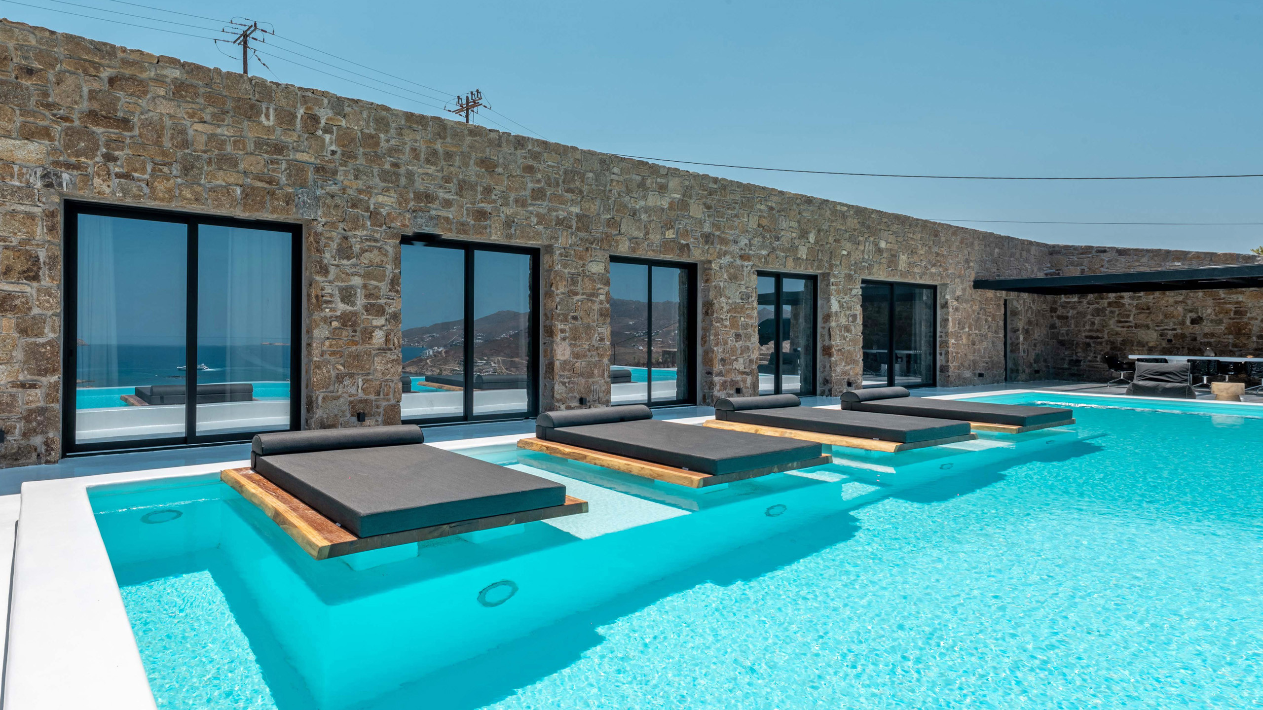 Cayman is an innovative villa, almost nestled between the rocks and featuring a modern design, perched high above Ftelia Beach. This location is particularly interesting as a starting point for exploring the island, virtually halfway between Mykonos Town and the excellent beaches on the eastern coast of the island.