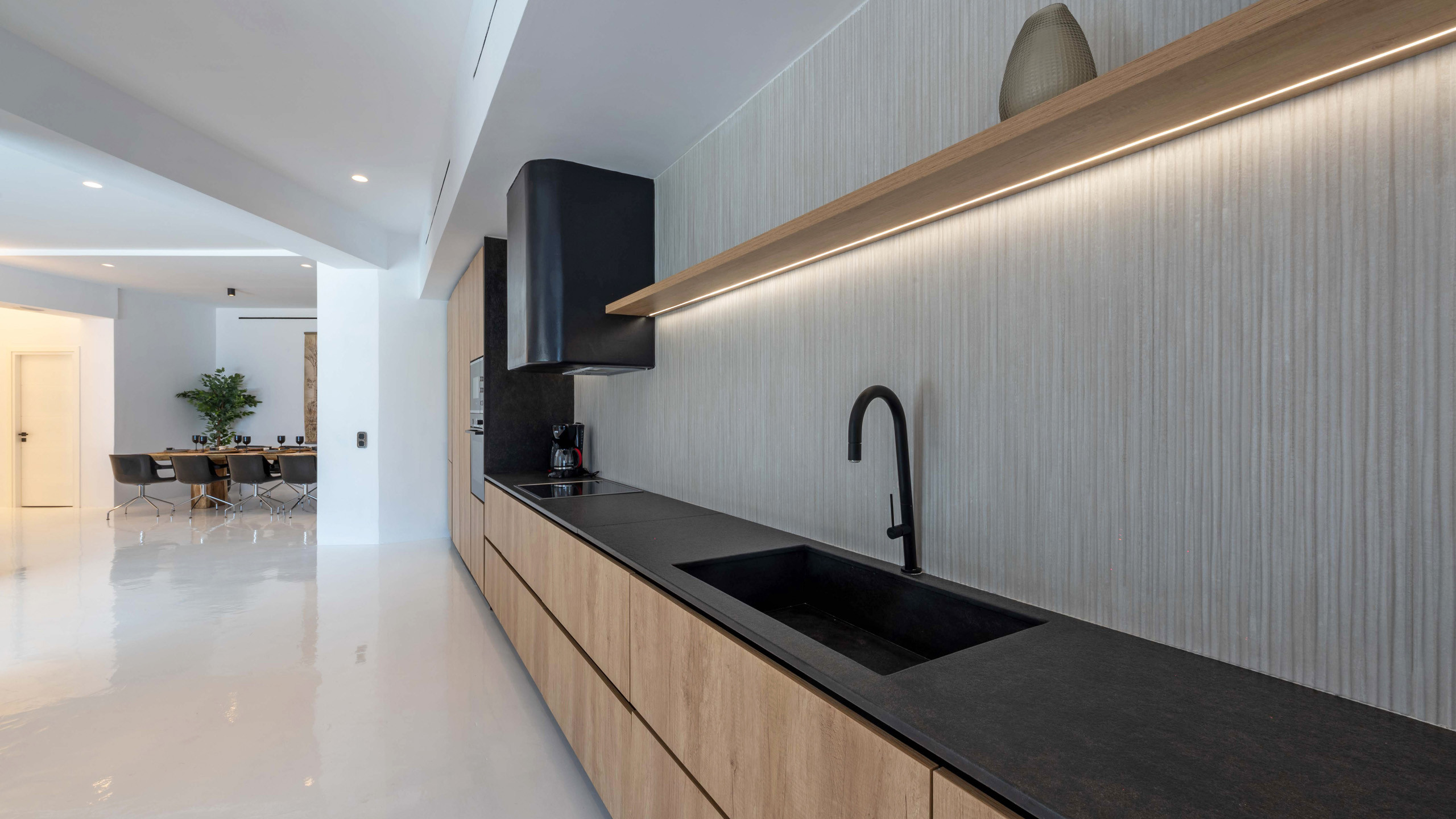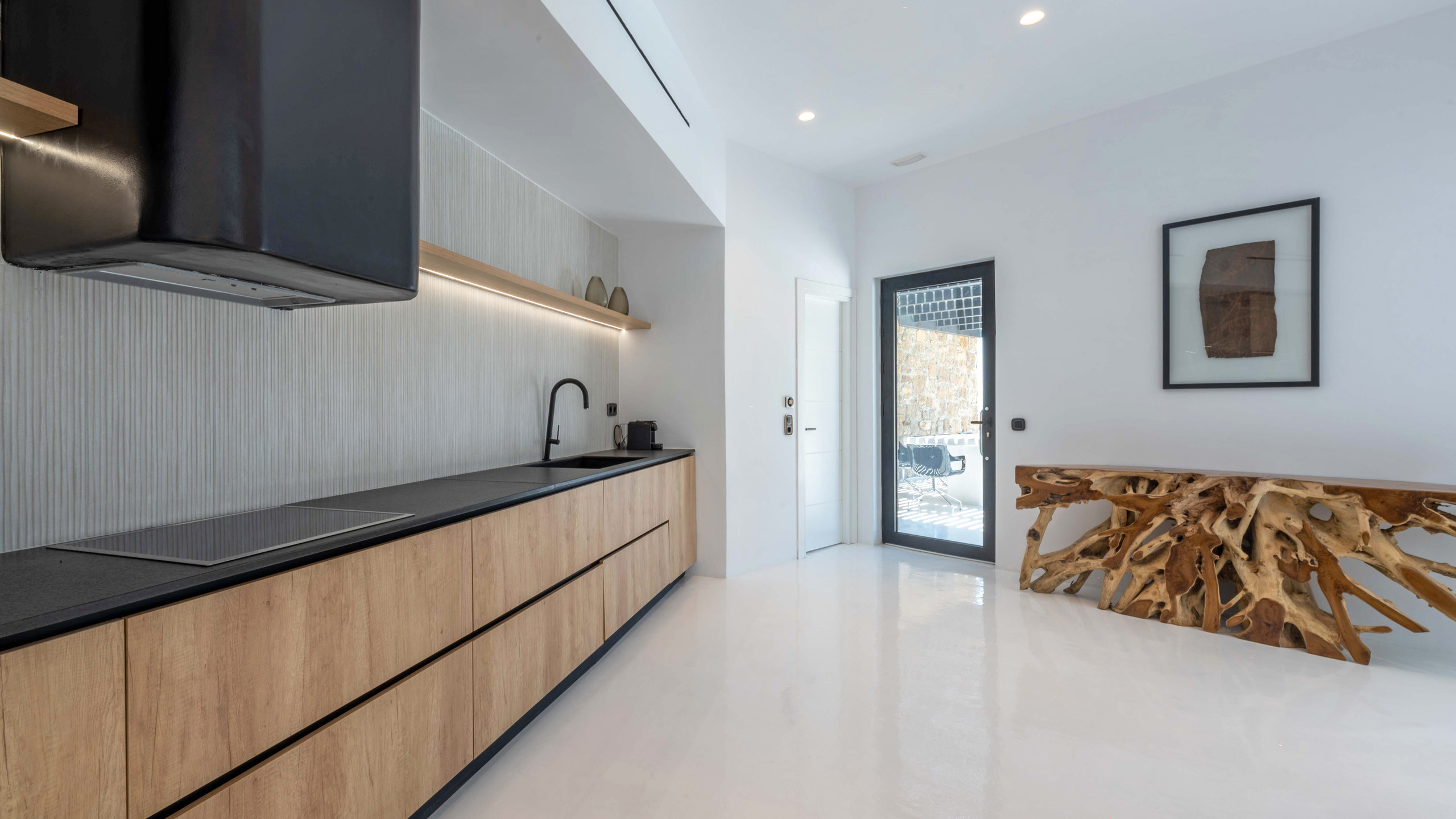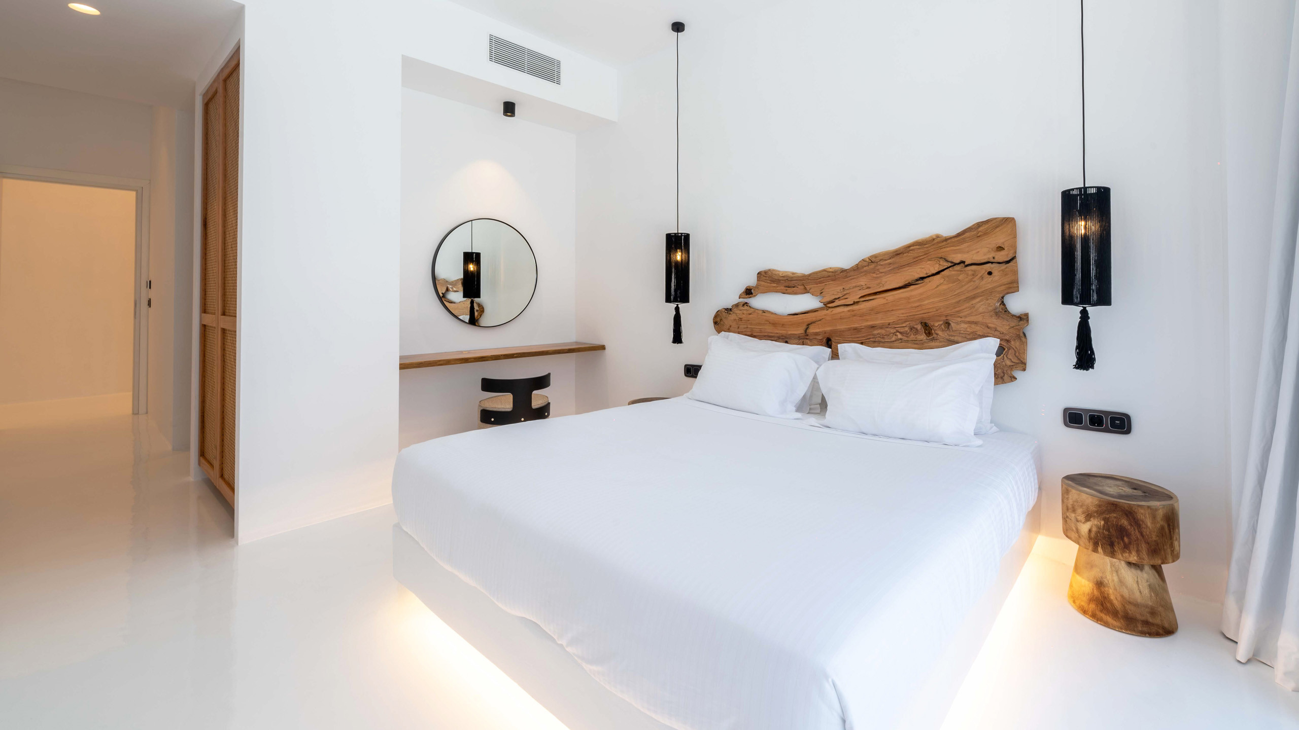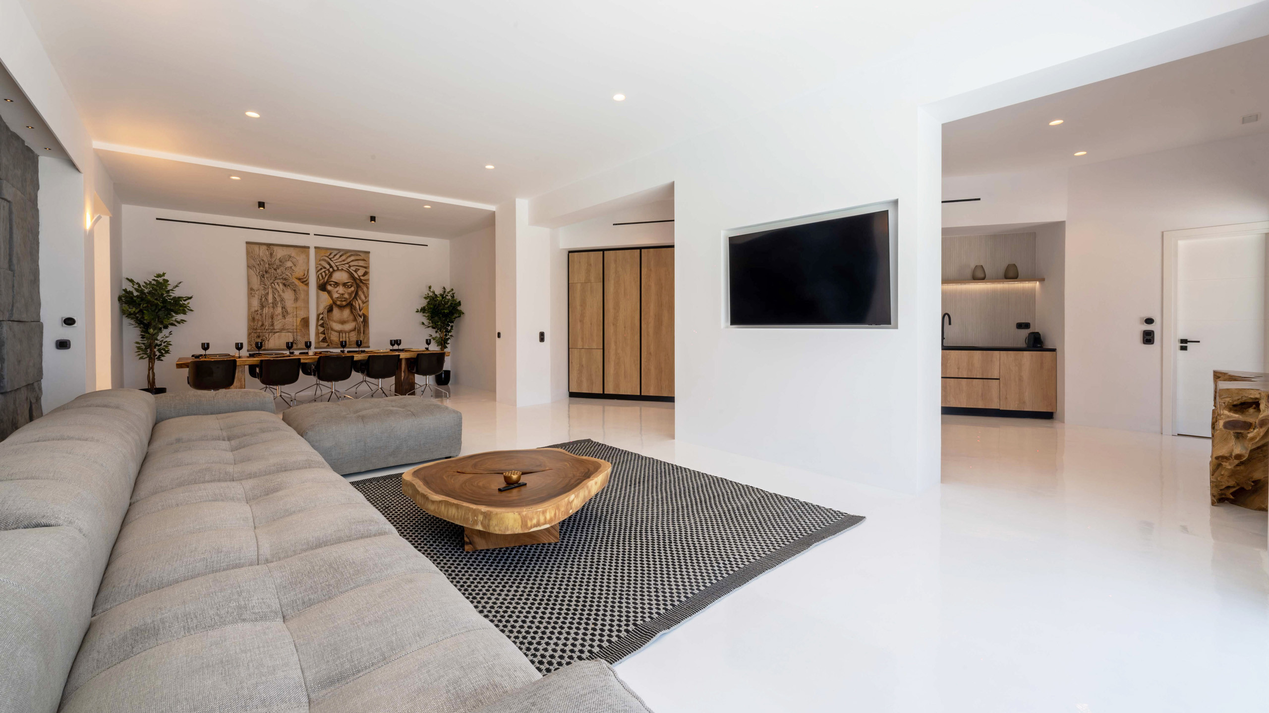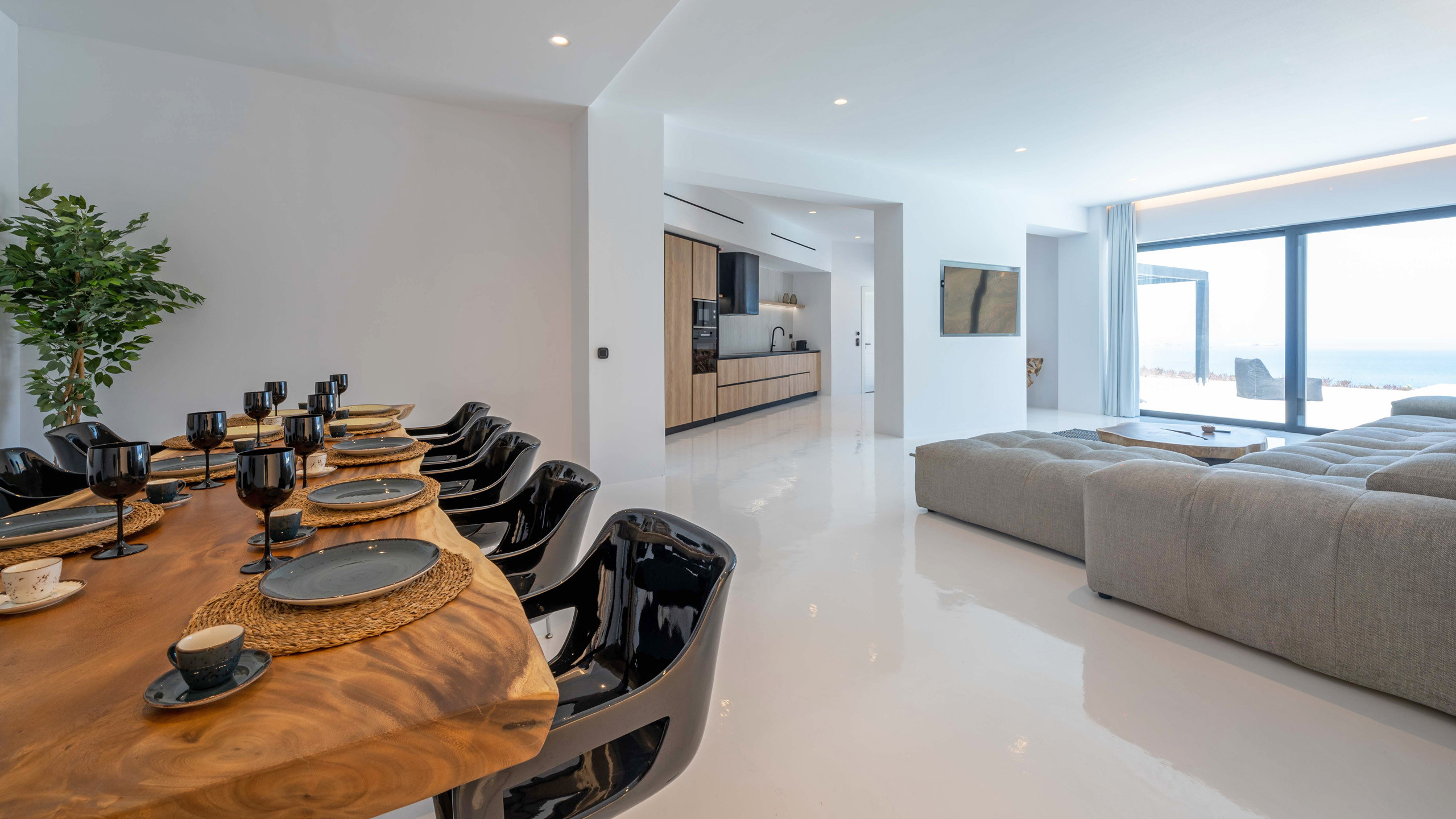 Cayman is an innovative villa, almost nestled between the rocks and featuring a modern design, perched high above Ftelia Beach. This location is particularly interesting as a starting point for exploring the island, virtually halfway between Mykonos Town and the excellent beaches on the eastern coast of the island.