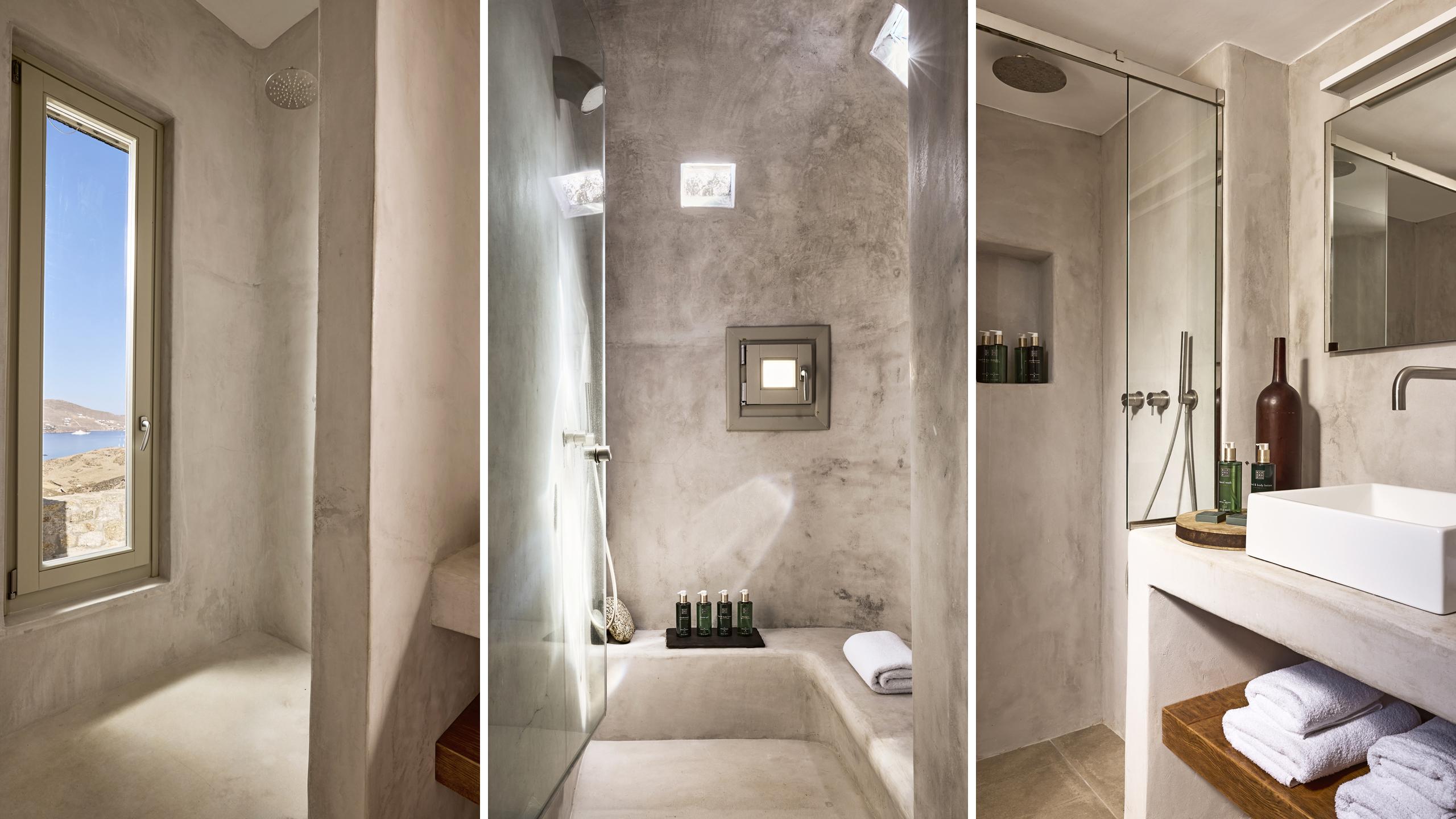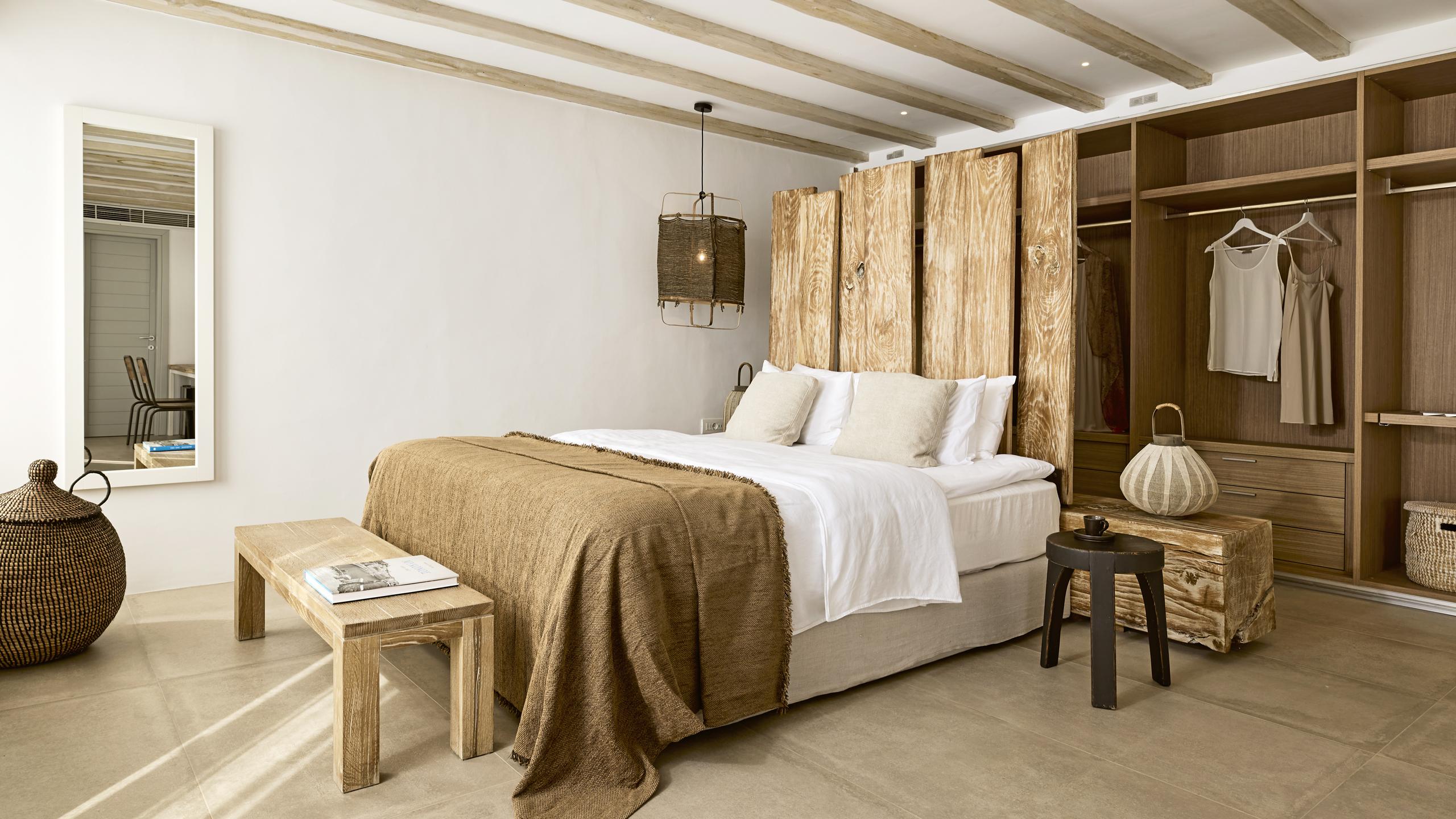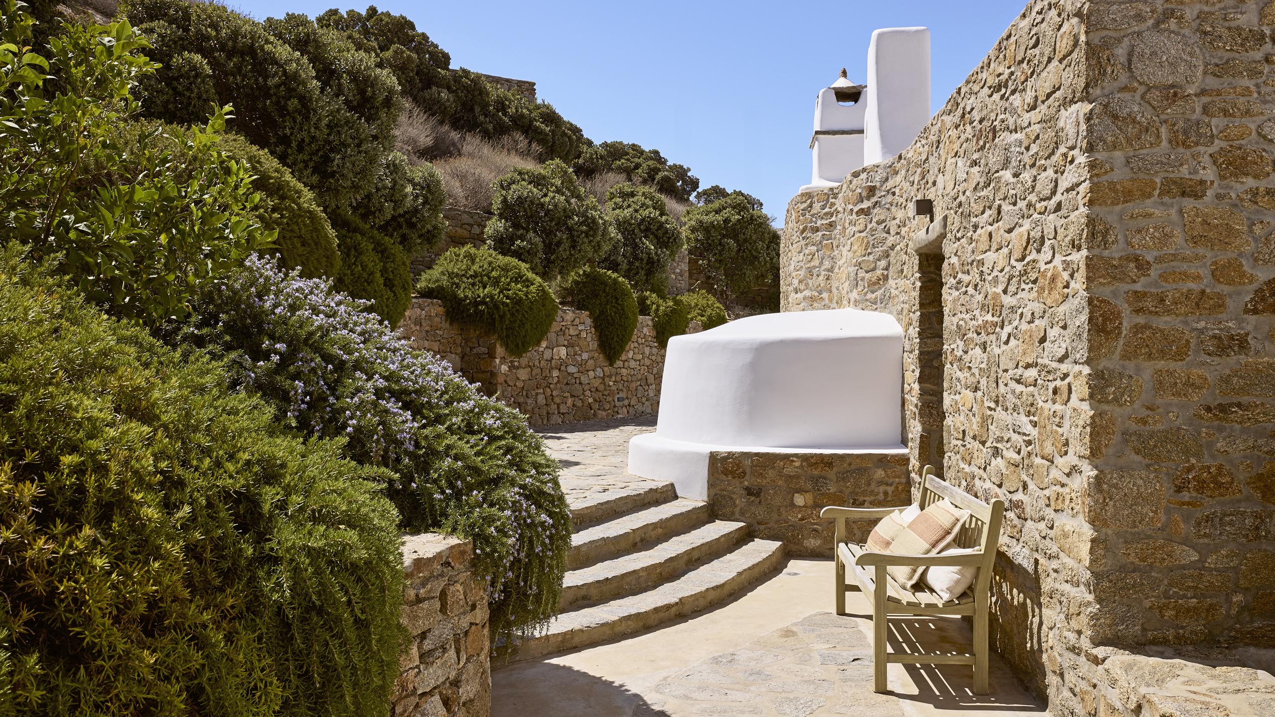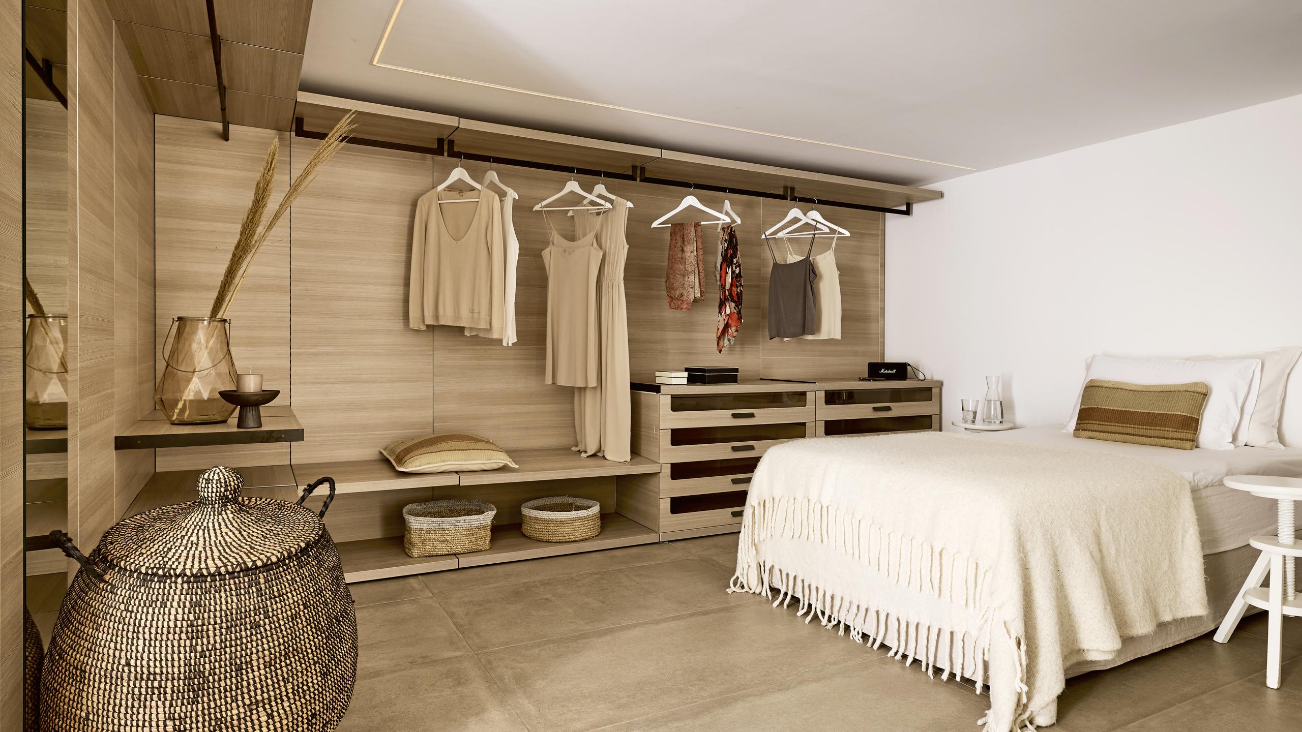 A remarkable attention to details is evident throughout the indoor spaces of Ftelia Hideaway. Each room is appointed with style, each piece of furniture was carefully chosen to contribute to an airy, elegant atmosphere. Modern amenities and domotics complete the picture, ensuring guests feel both pampered and entertained. For the ultimate relaxation experience a new hammam, massage room and small private gym were added to the property near the lower guest suite. True to Cycladic style the property was built in units, with some bedrooms having independent access for added privacy.