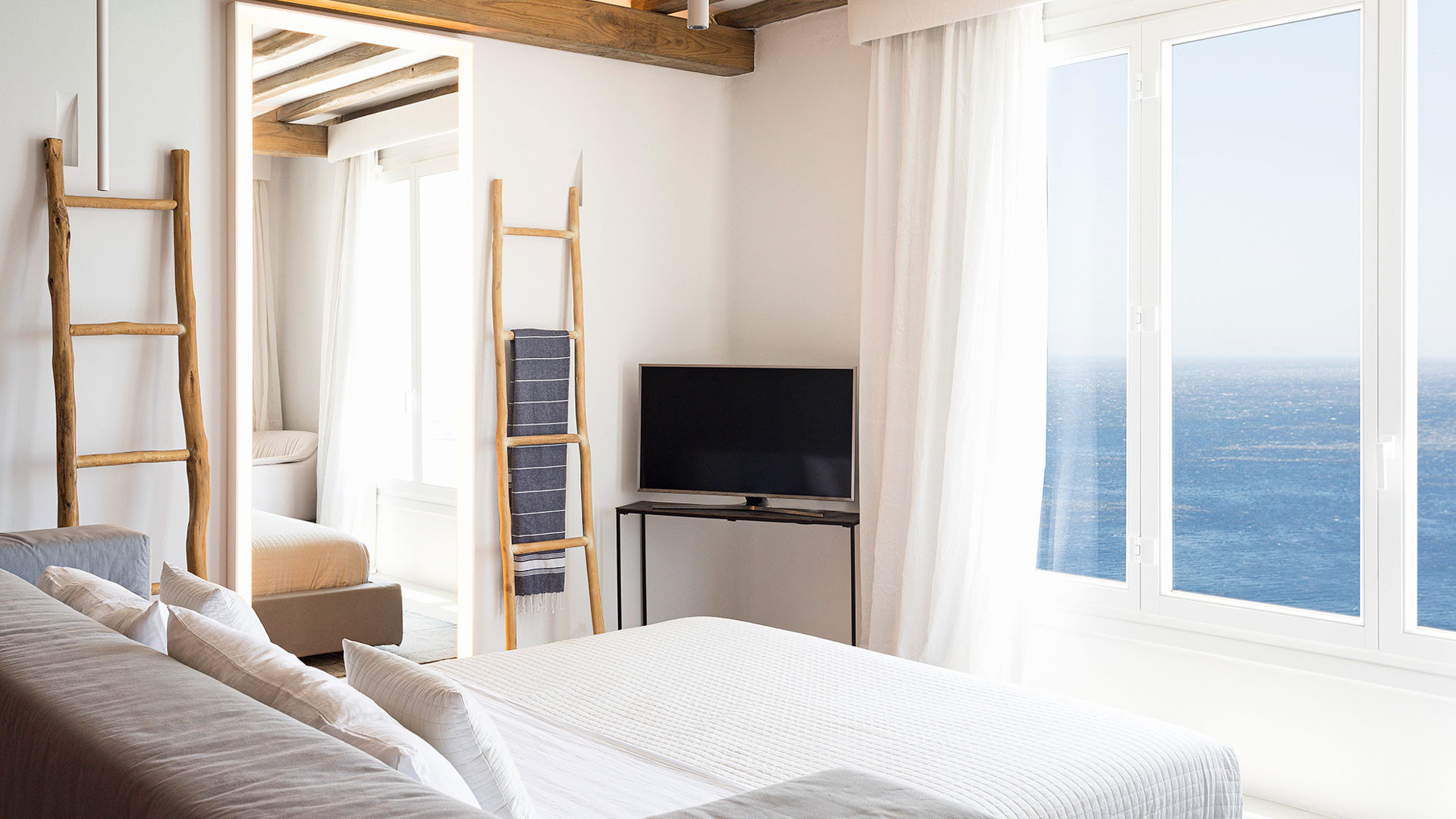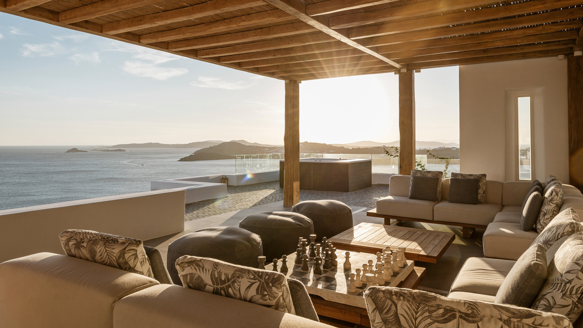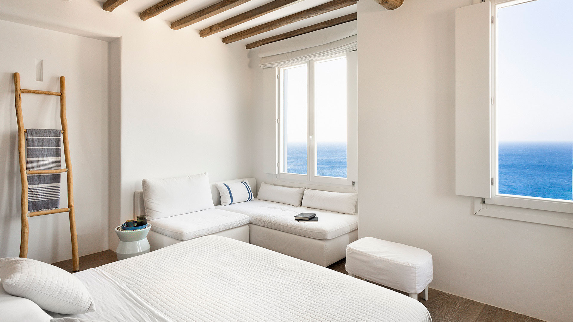 In a splendid location within the prestigious area of Agios Lazaros stands the magnificent Jubilee. From here, the sea view is breathtaking and can be enjoyed from every corner of the property. The location also ensures a reasonable travel time to reach both Mykonos Town and some of the most famous beaches on the island, such as Psarou and Platis Gialos.
