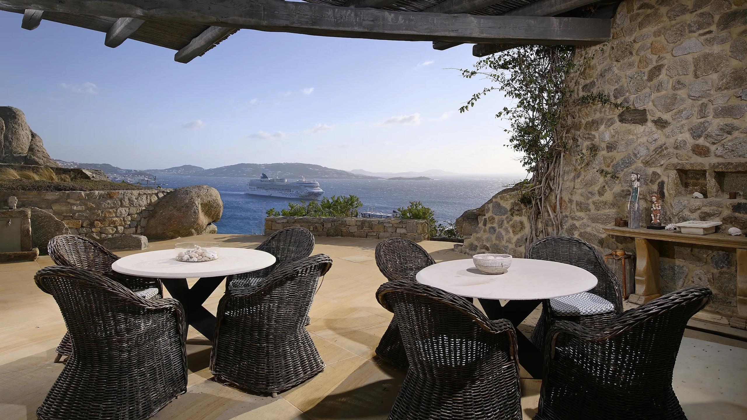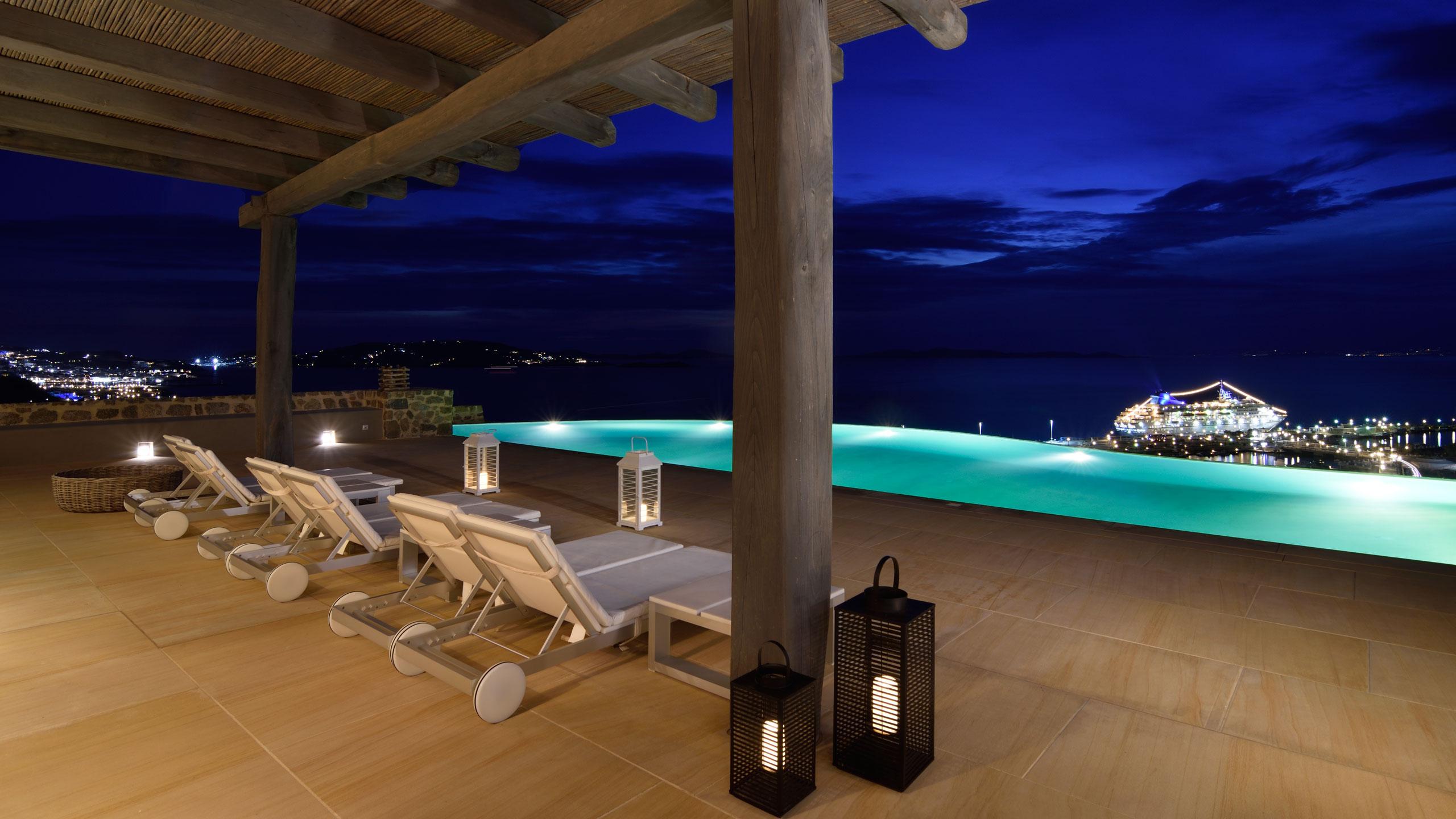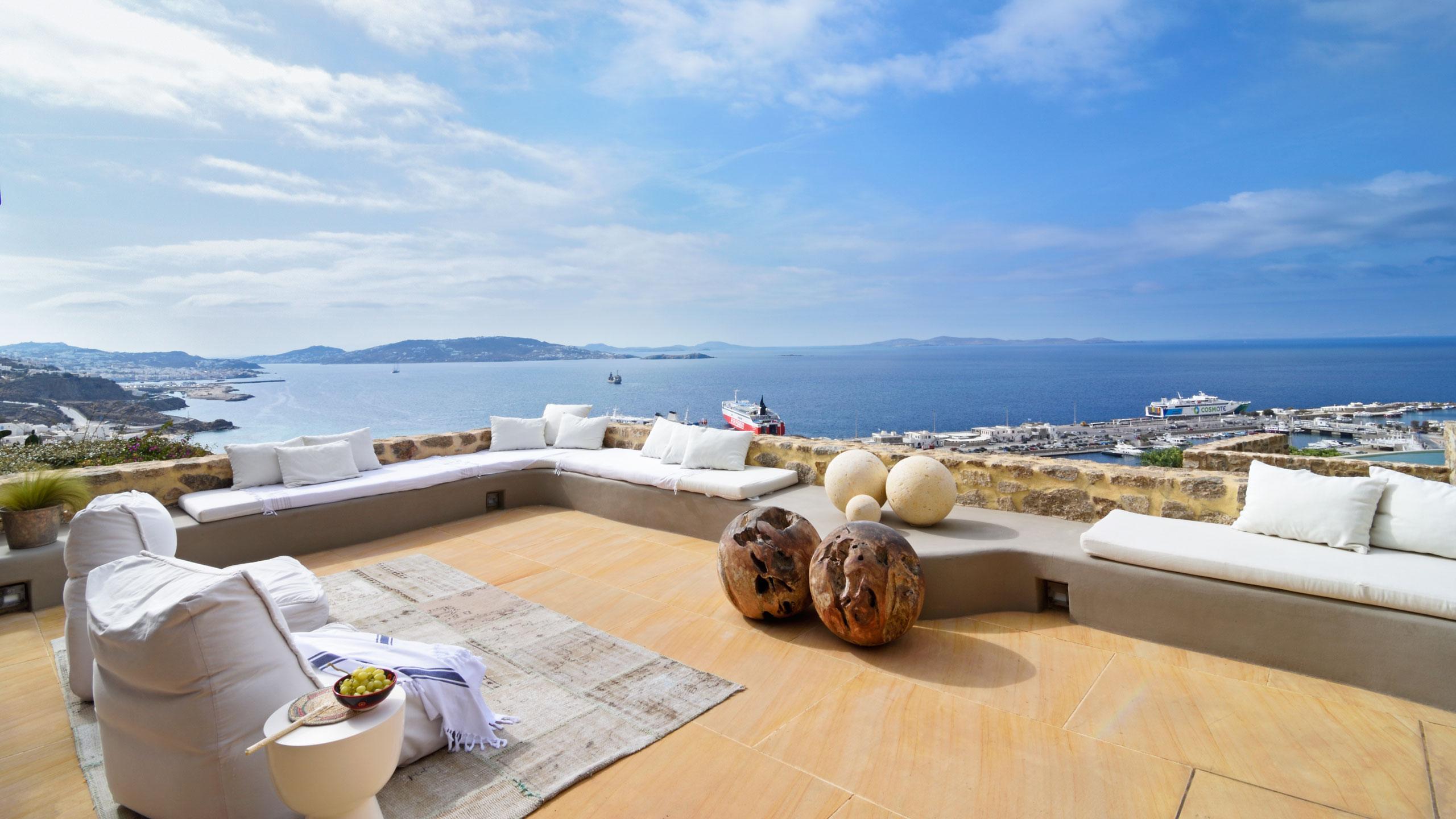Majestas is a grand private property perched in an elevated location just north of Mykonos Town with an extensive panoramic view that overlooks the marina stretching out to Mykonos Town, the neighbouring islands and the unique sunset. The stone-built structure perfectly blends in with its surrounding environment, in a quasi-stealth fashion that perhaps enhances even more the already great privacy of the property – an admirable feature for a villa at just a two-minute drive from town.