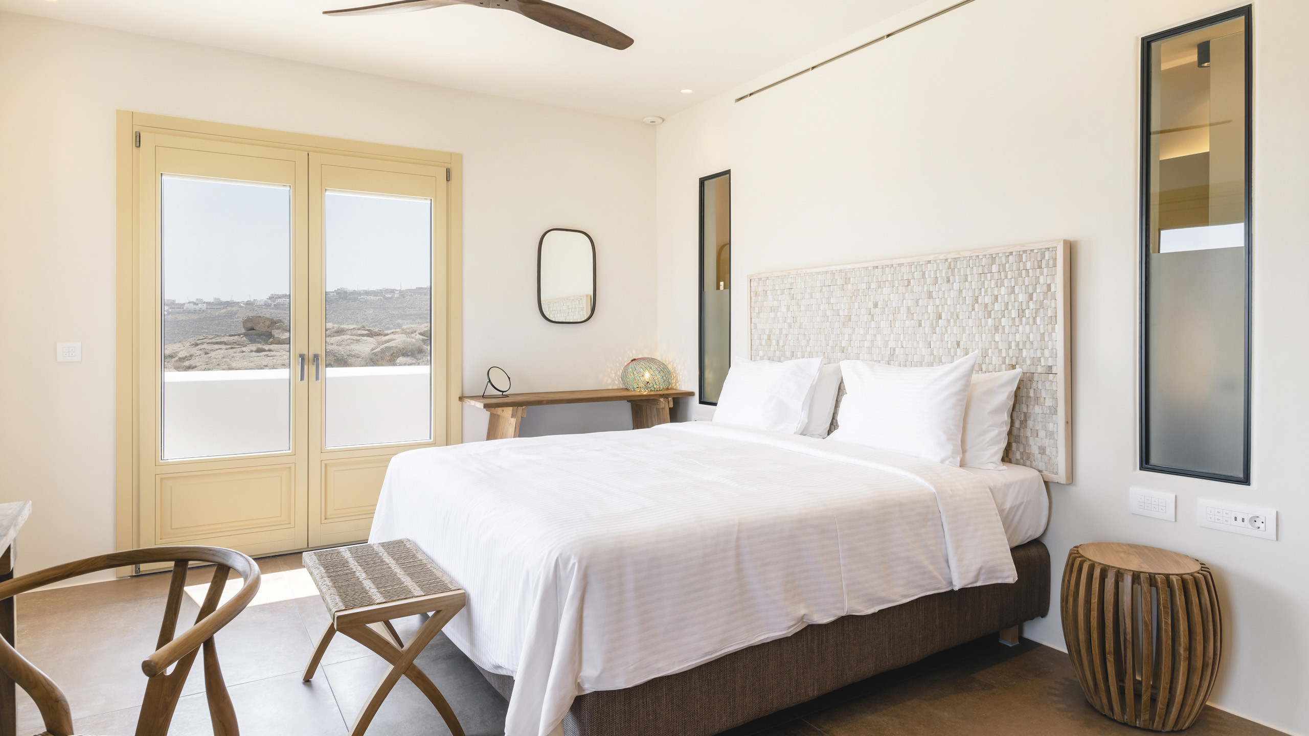 In a residential area nestled virtually halfway between the beaches of Psarou and Platis Gialos, you'll find the delightful Mimosa, a true gem within our collection.