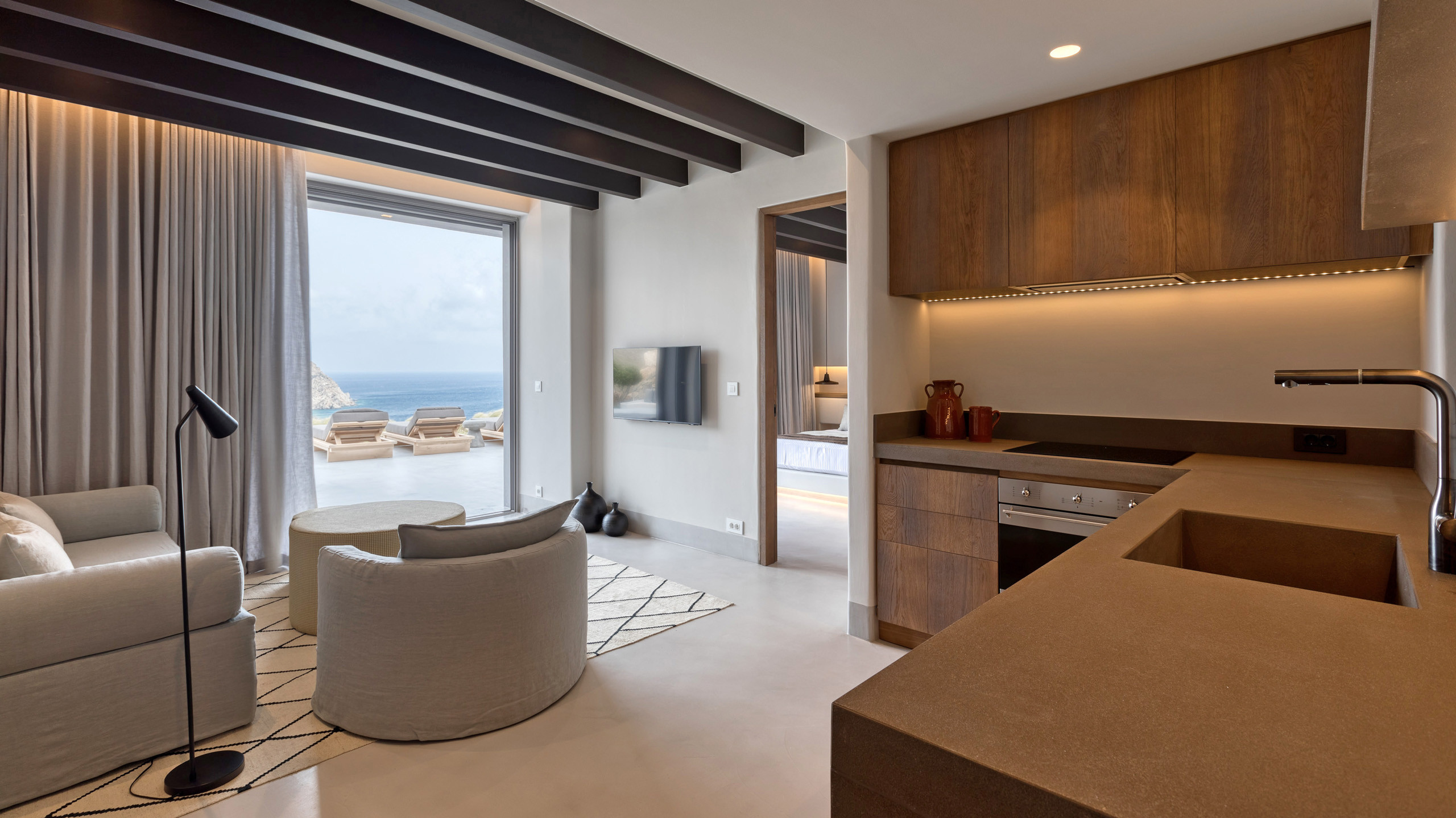 Designed by a leading team of architects, the villa showcases premium materials, earthy textures, and seamless indoor-outdoor living. Guests can enjoy four spacious terraces, a fully equipped gym with Matrix gear, and flexible cooking options between the indoor kitchen and outdoor BBQ. An independent guest house offers added privacy, making Mito the perfect destination for families or groups seeking a high-end escape with room to unwind.
