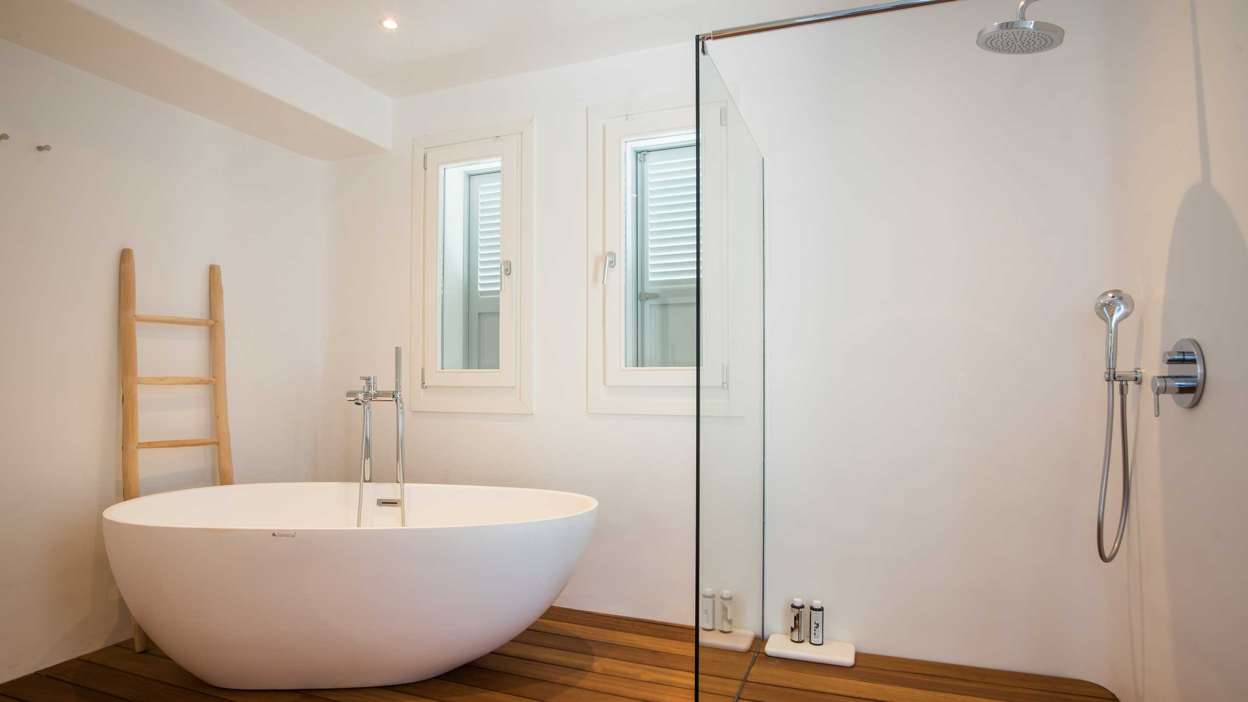 20 Guests1 Master Bedroom with double bed, A/C, en-suite bathroom with bathtub and walk-in shower, private balcony, sea view