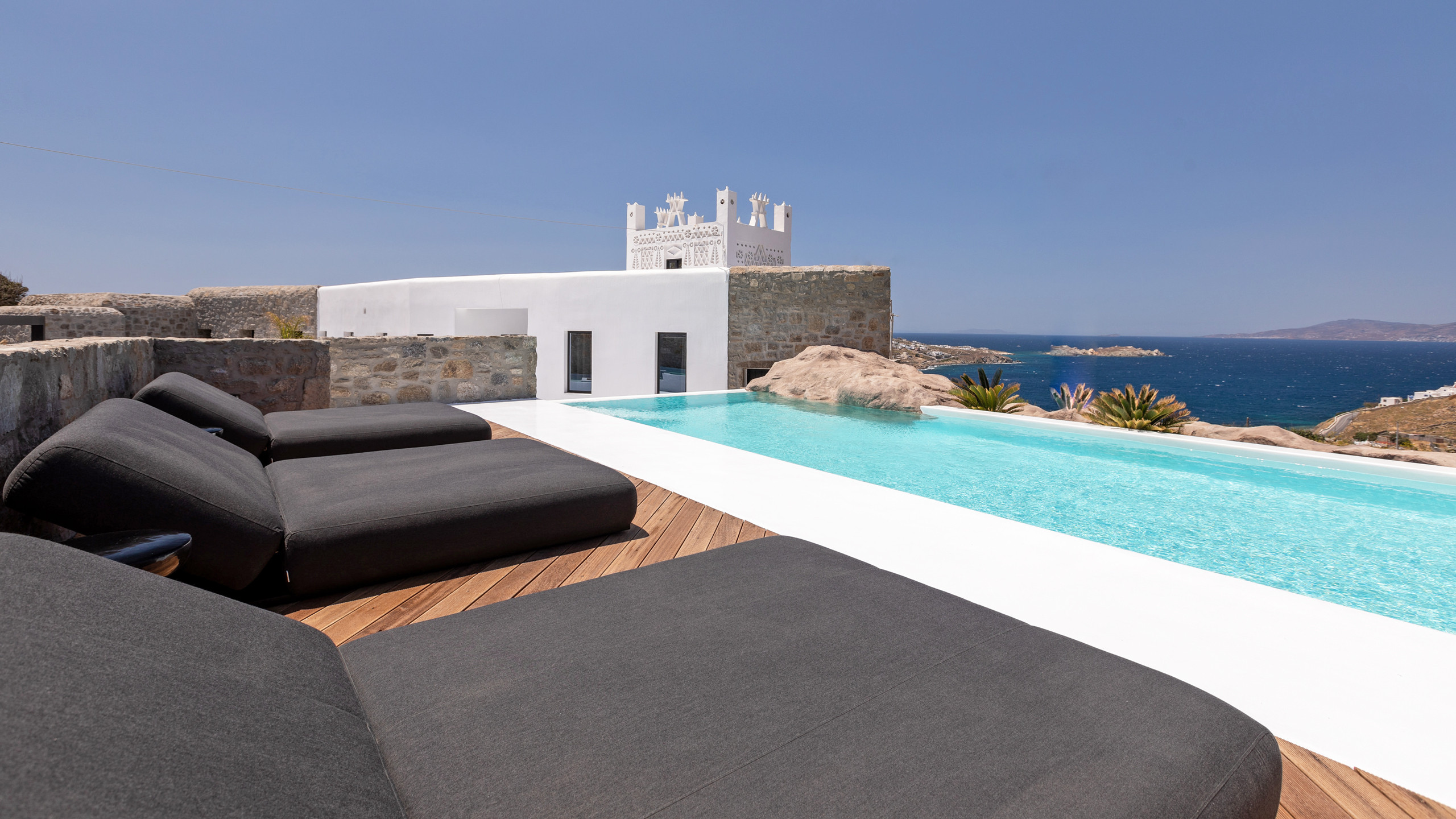Near Mykonos Town, Opium is a modern private property that, despite its location, enjoys good privacy and a magnificent sunset view. Undoubtedly, one of its strengths is the convenience of reaching the town center easily.
