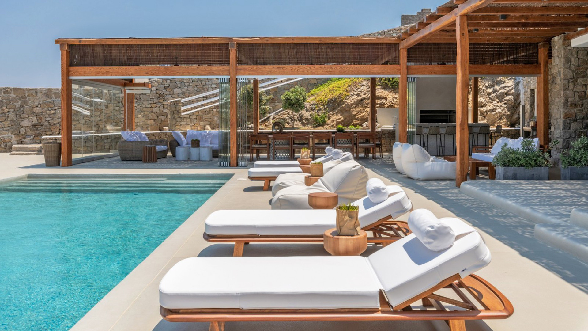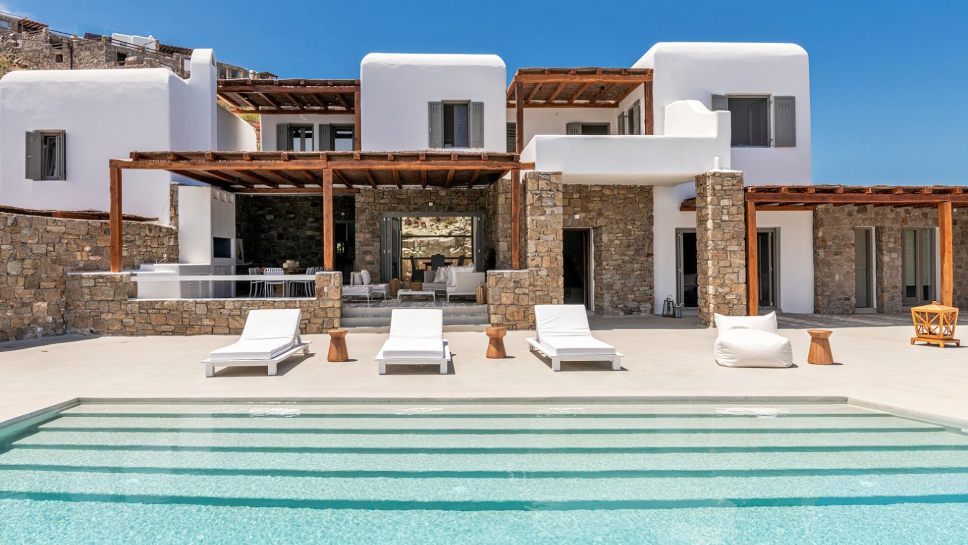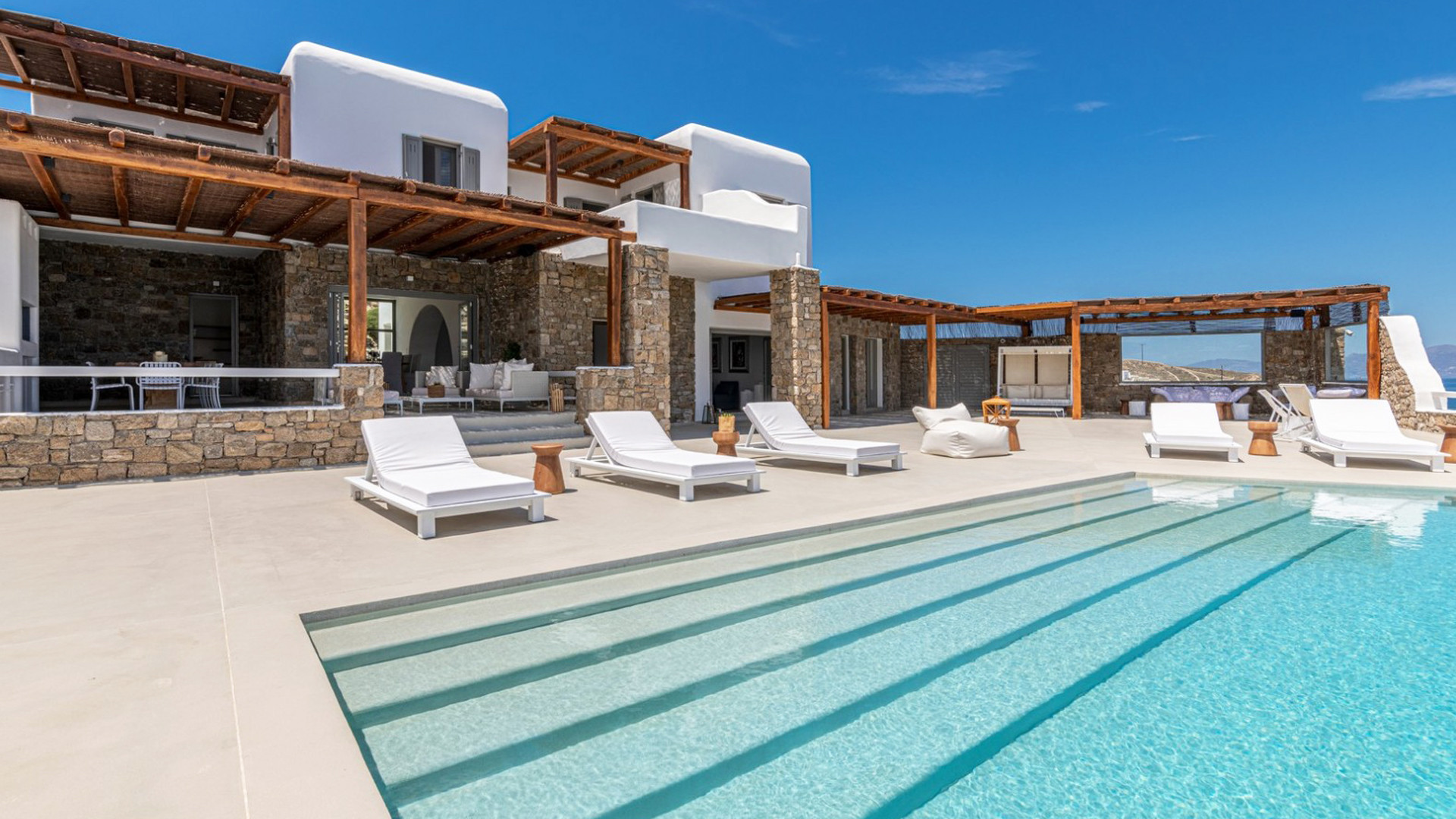 Nestled at one of the most breathtaking location on the island, Villa Sunbeam invites you to experience an unparalleled connection with the Aegean Sea and sky. With meticulous design and construction, the property sets the stage for an extraordinary journey where your senses come alive and moments are shared under the radiant Greek sun and the enchanting starry night skies of Mykonos.