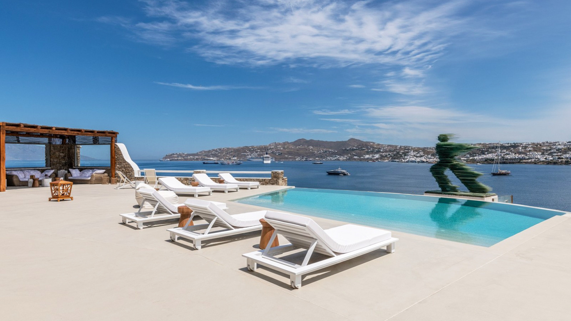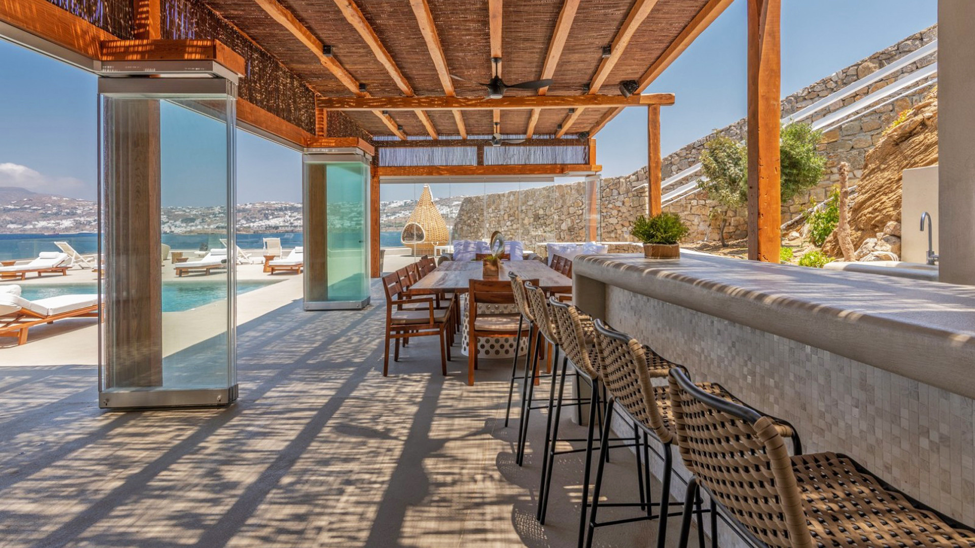 Stepping into the deluxe outdoor space, guests will be captivated by its splendor, designed to immerse in the magic of starlit nights and sun-soaked days. Discover multiple balconies and terraces where you can soak in the breathtaking vistas, unwind on the comfortable sundecks, and revel in the refreshing ambiance of two heated pools. Whether you desire intimate conversations or lively gatherings, our two outdoor bars provide the perfect setting, complemented by two fully equipped BBQs for delightful culinary adventures.