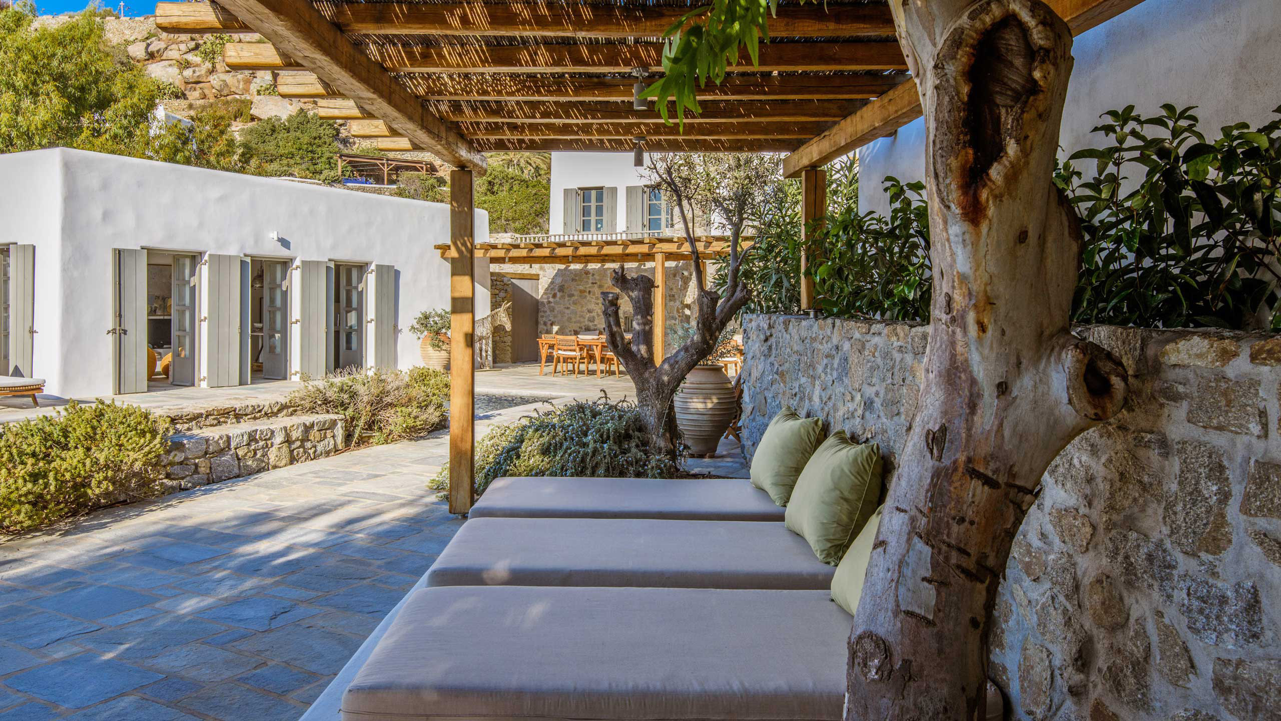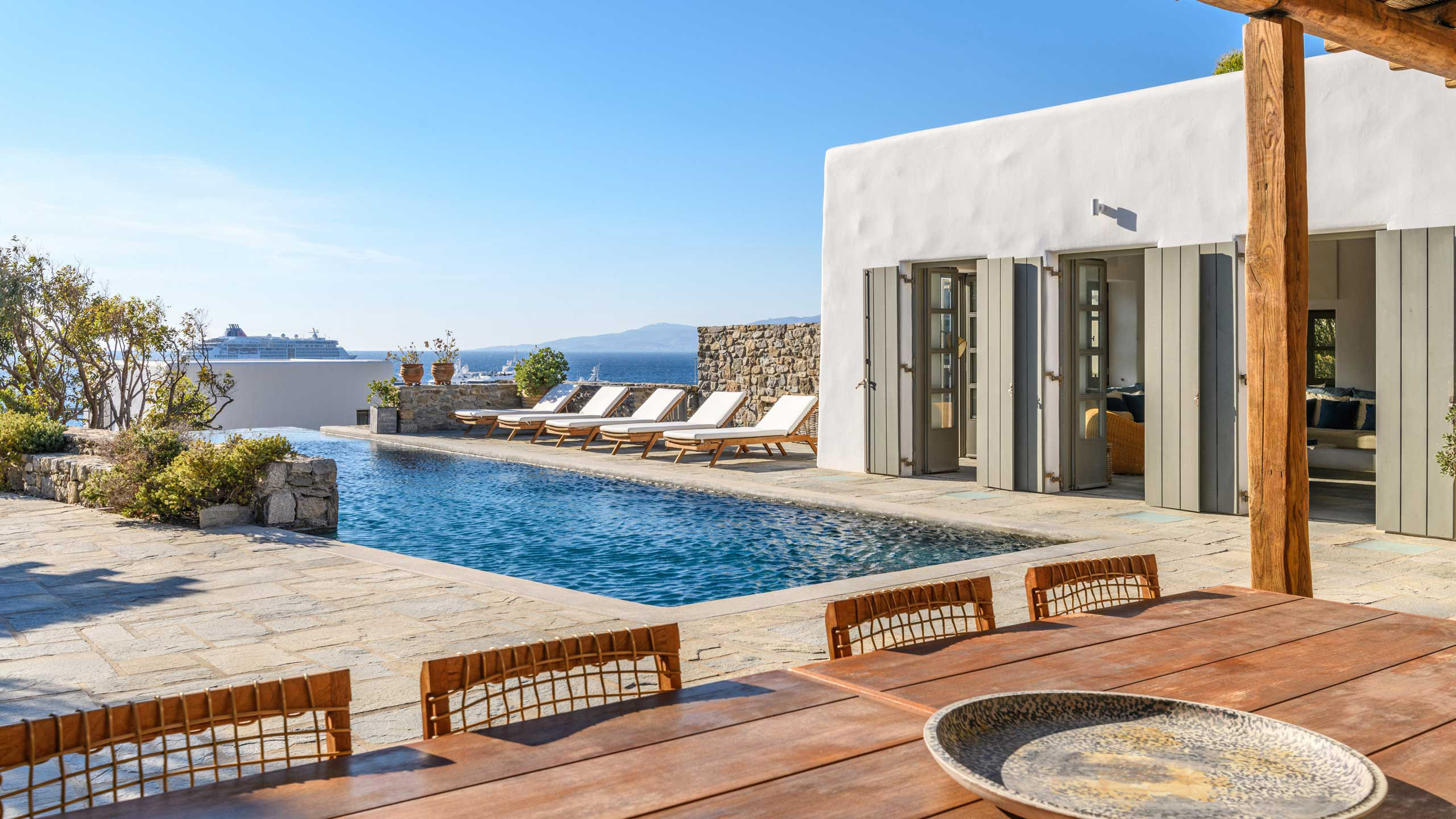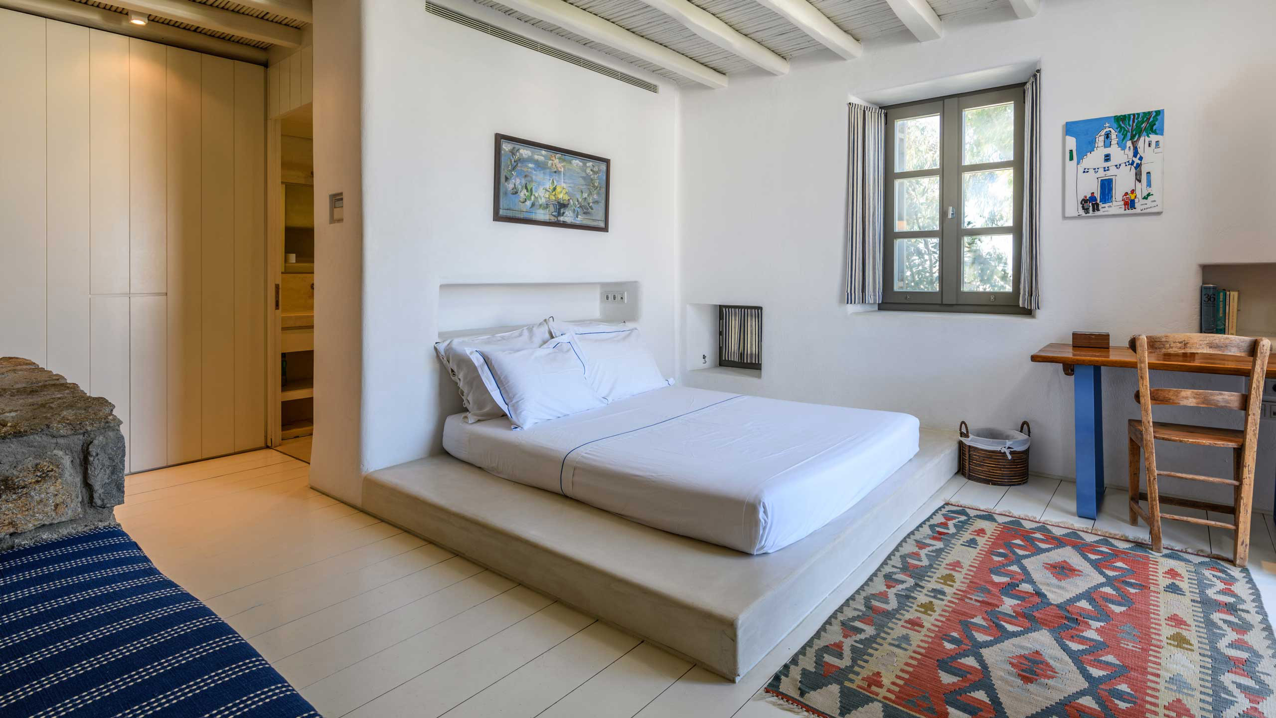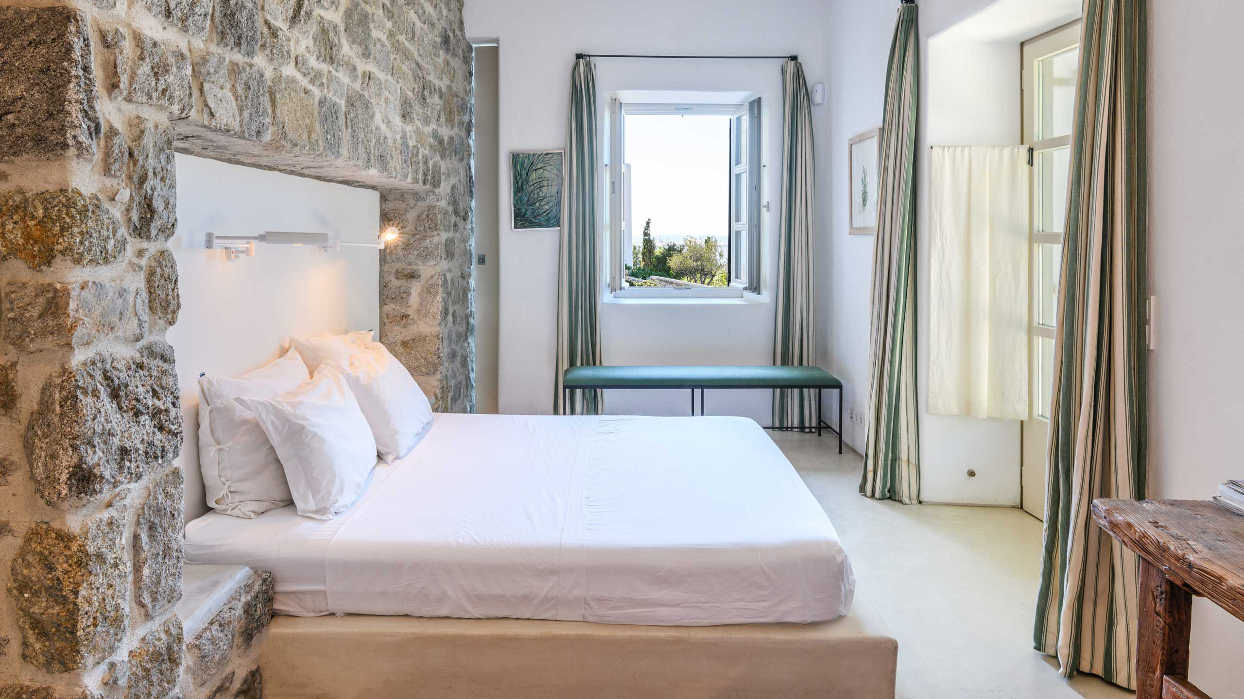 Accessed from the town’s main peripheral road, the property enjoys stunning views of Mykonos Town and the Aegean sea thanks to it slight elevated position. Living this property outdoors will definitely provide special moments, be it on one of the bedrooms’ private balcony or on the gracious pool terrace. A stone path was purposely built to keep all parts of the property communicating with one another while also providing easy access to the two main terraces.