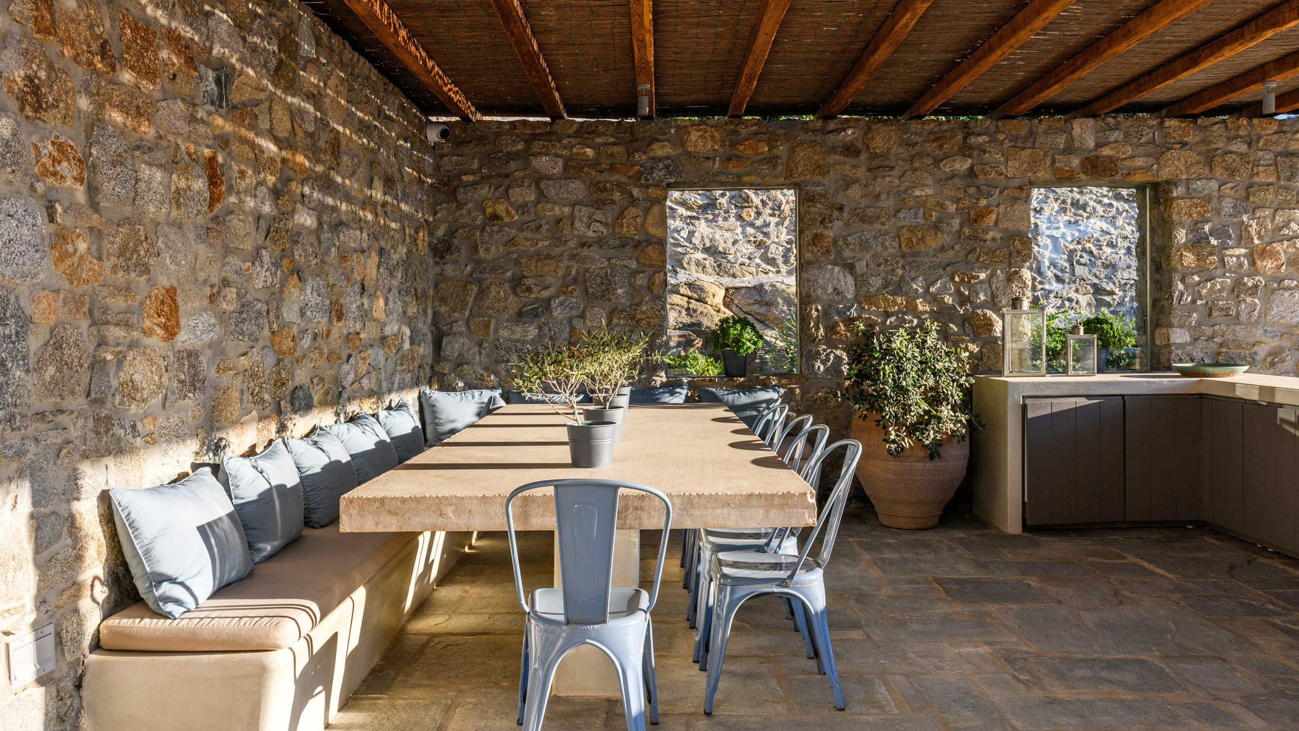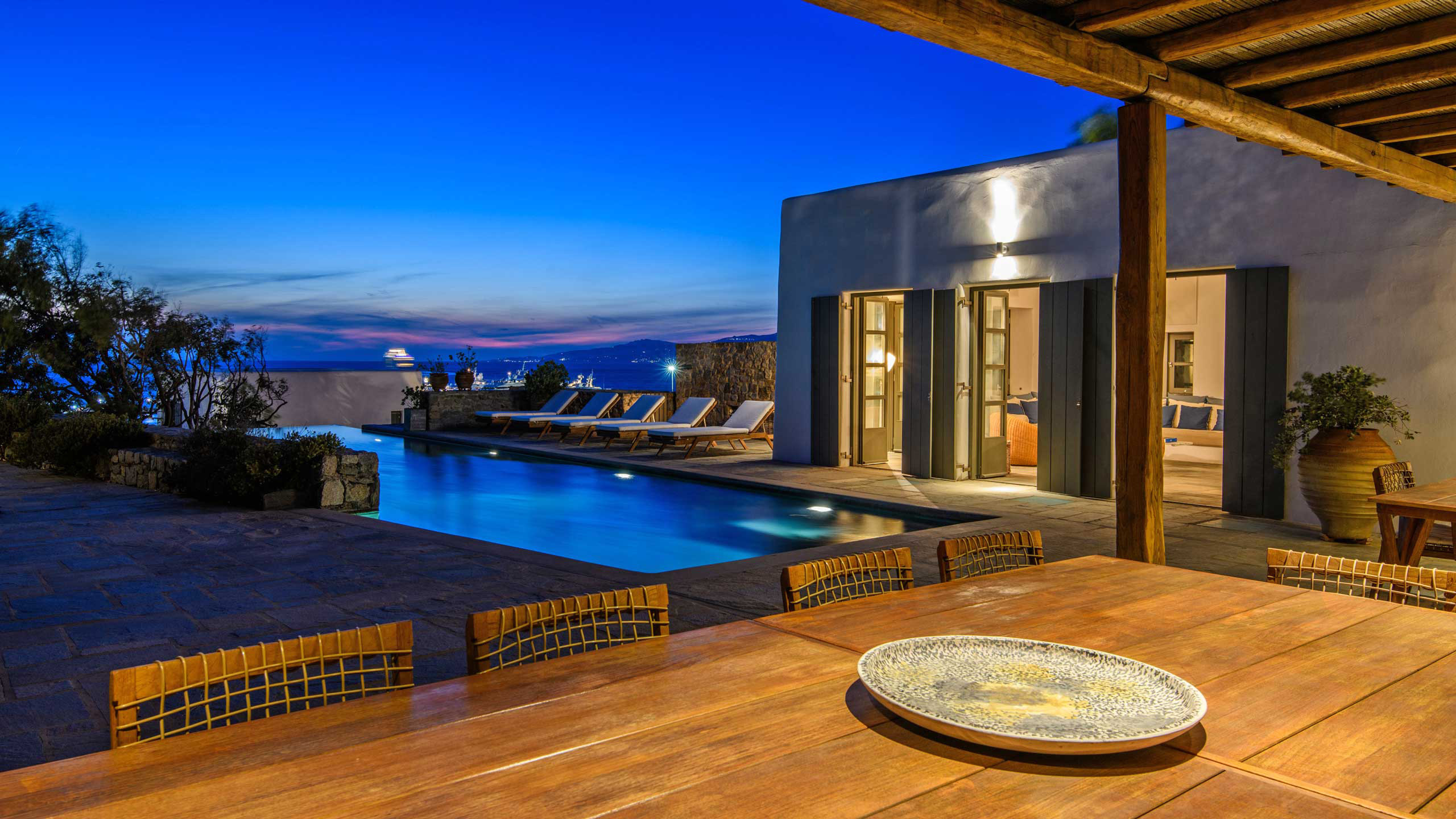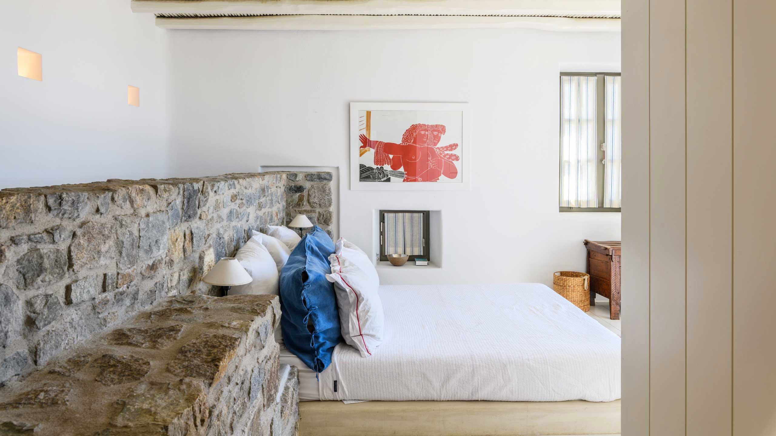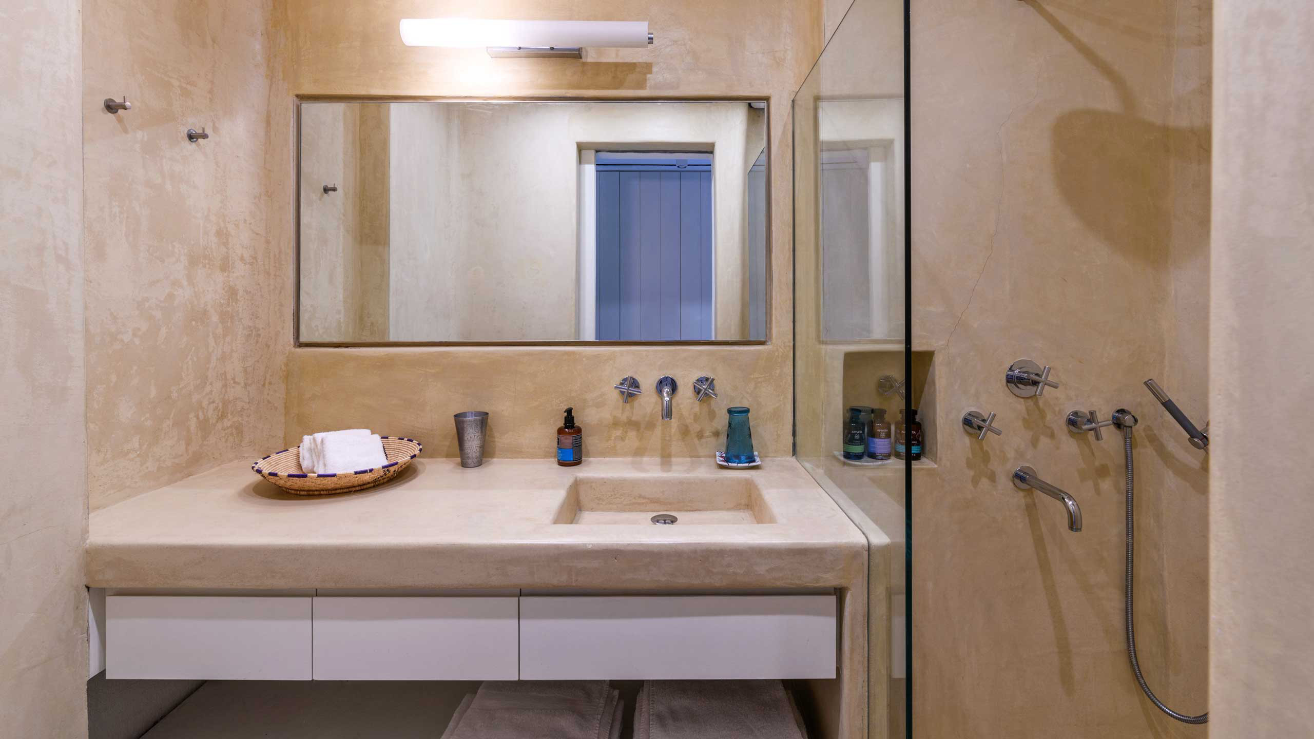 Accessed from the town’s main peripheral road, the property enjoys stunning views of Mykonos Town and the Aegean sea thanks to it slight elevated position. Living this property outdoors will definitely provide special moments, be it on one of the bedrooms’ private balcony or on the gracious pool terrace. A stone path was purposely built to keep all parts of the property communicating with one another while also providing easy access to the two main terraces.