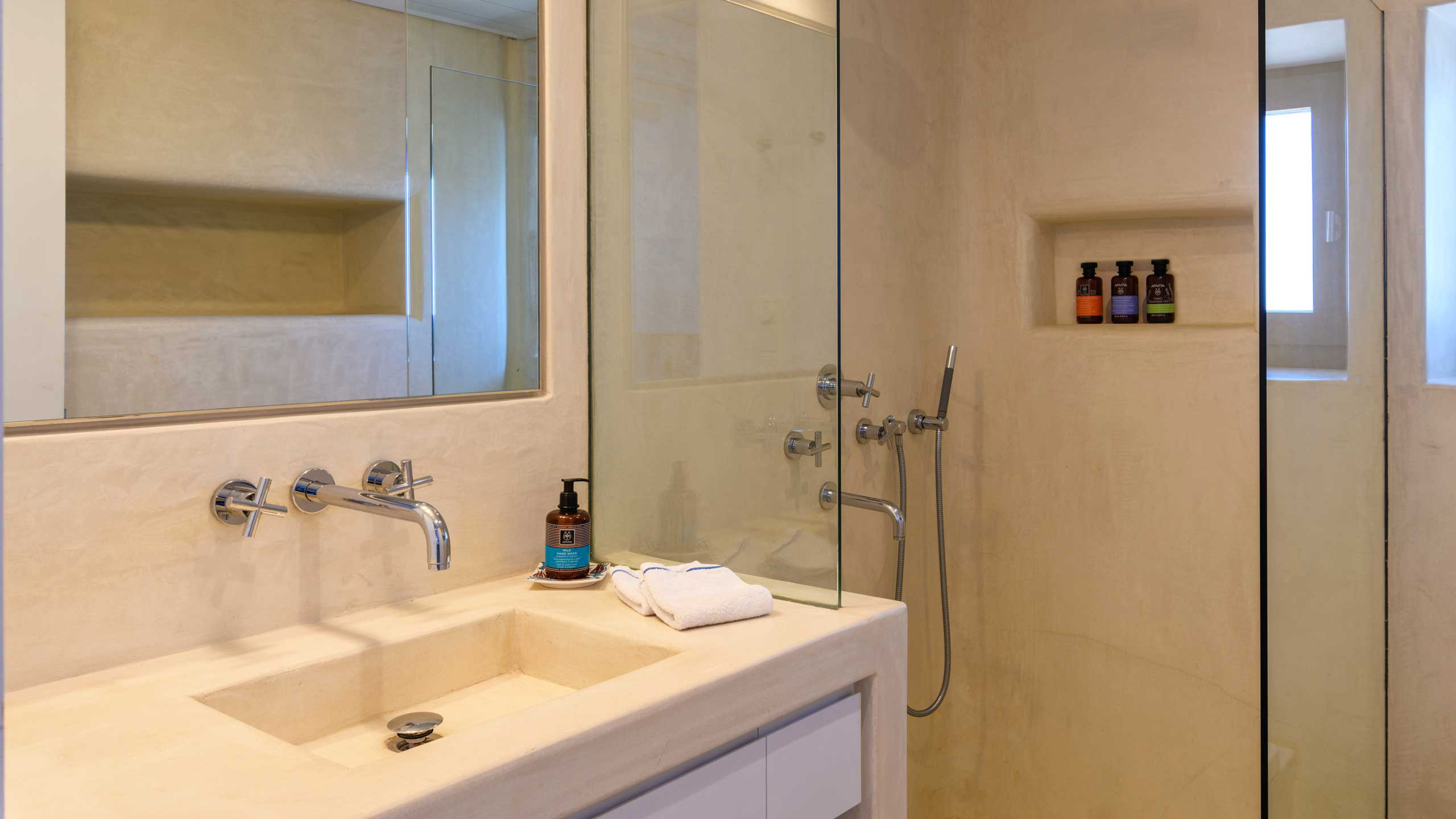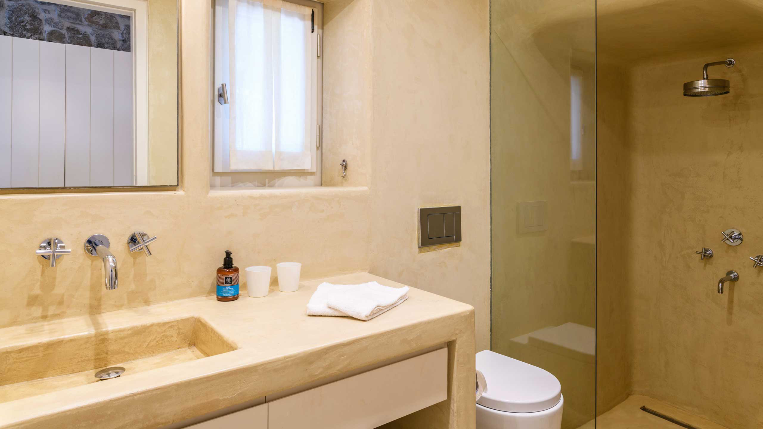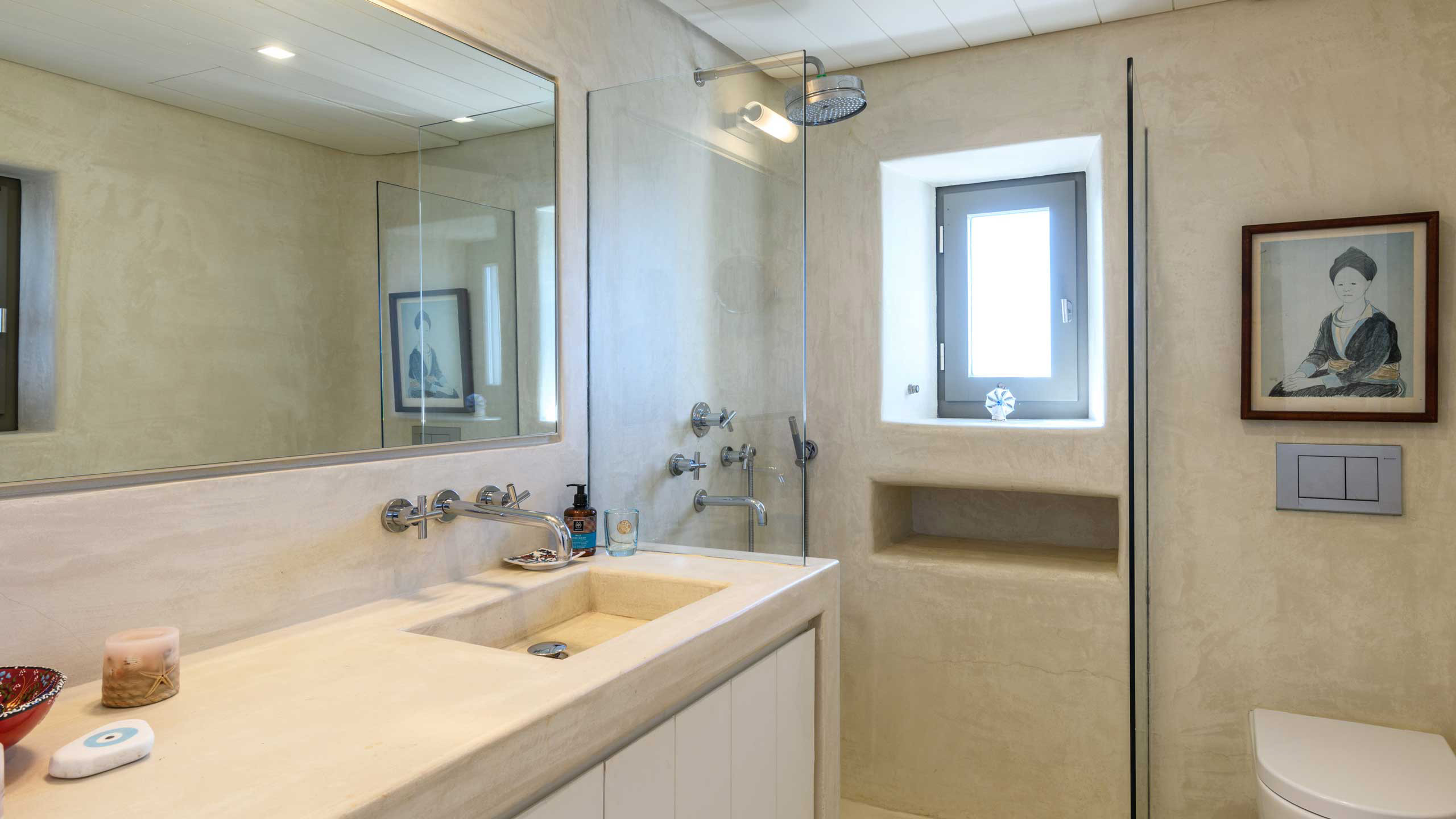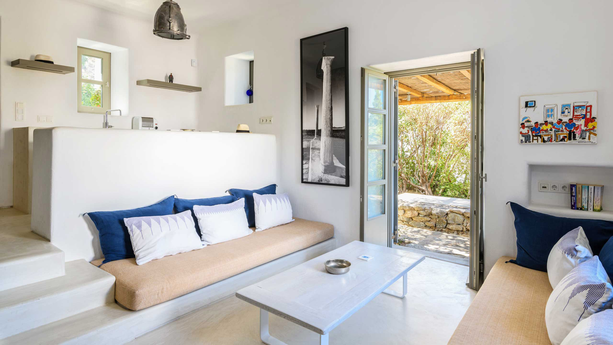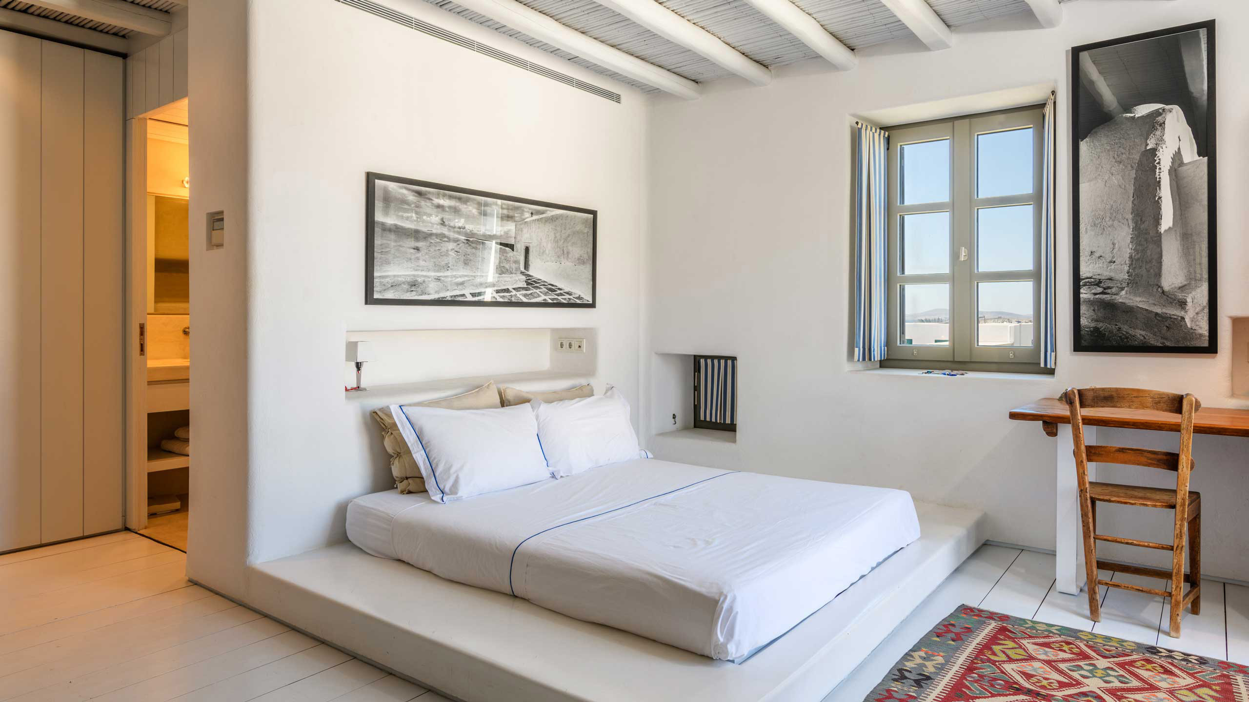Accessed from the town’s main peripheral road, the property enjoys stunning views of Mykonos Town and the Aegean sea thanks to it slight elevated position. Living this property outdoors will definitely provide special moments, be it on one of the bedrooms’ private balcony or on the gracious pool terrace. A stone path was purposely built to keep all parts of the property communicating with one another while also providing easy access to the two main terraces.