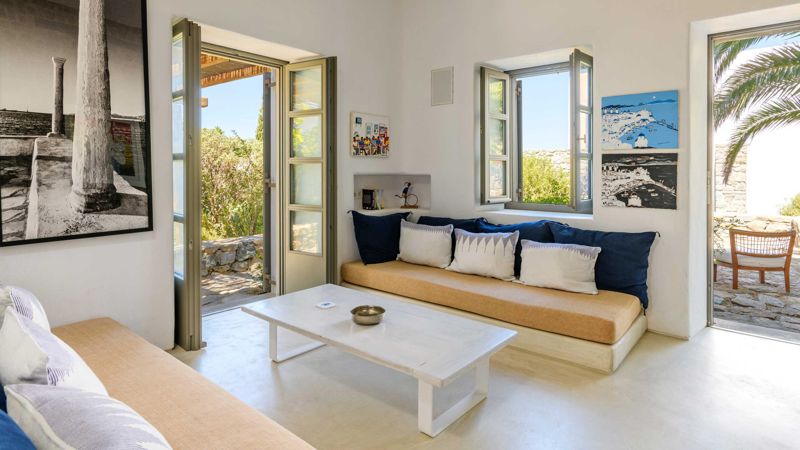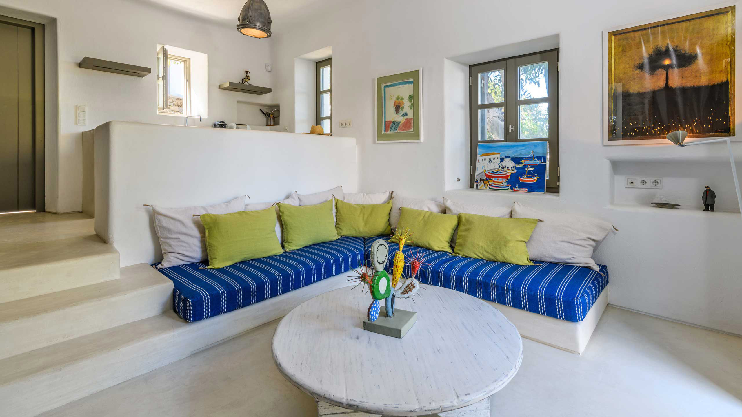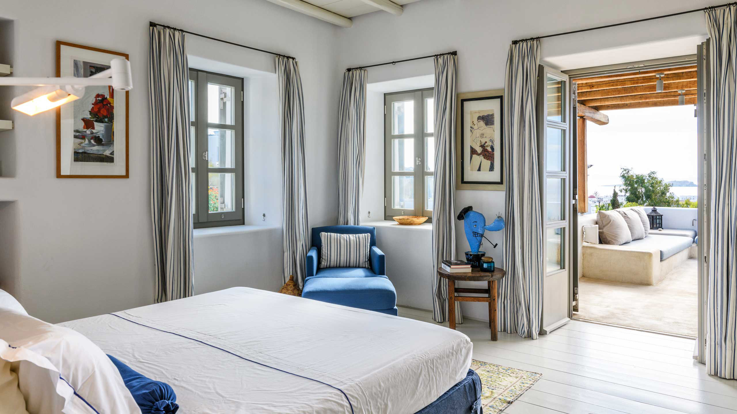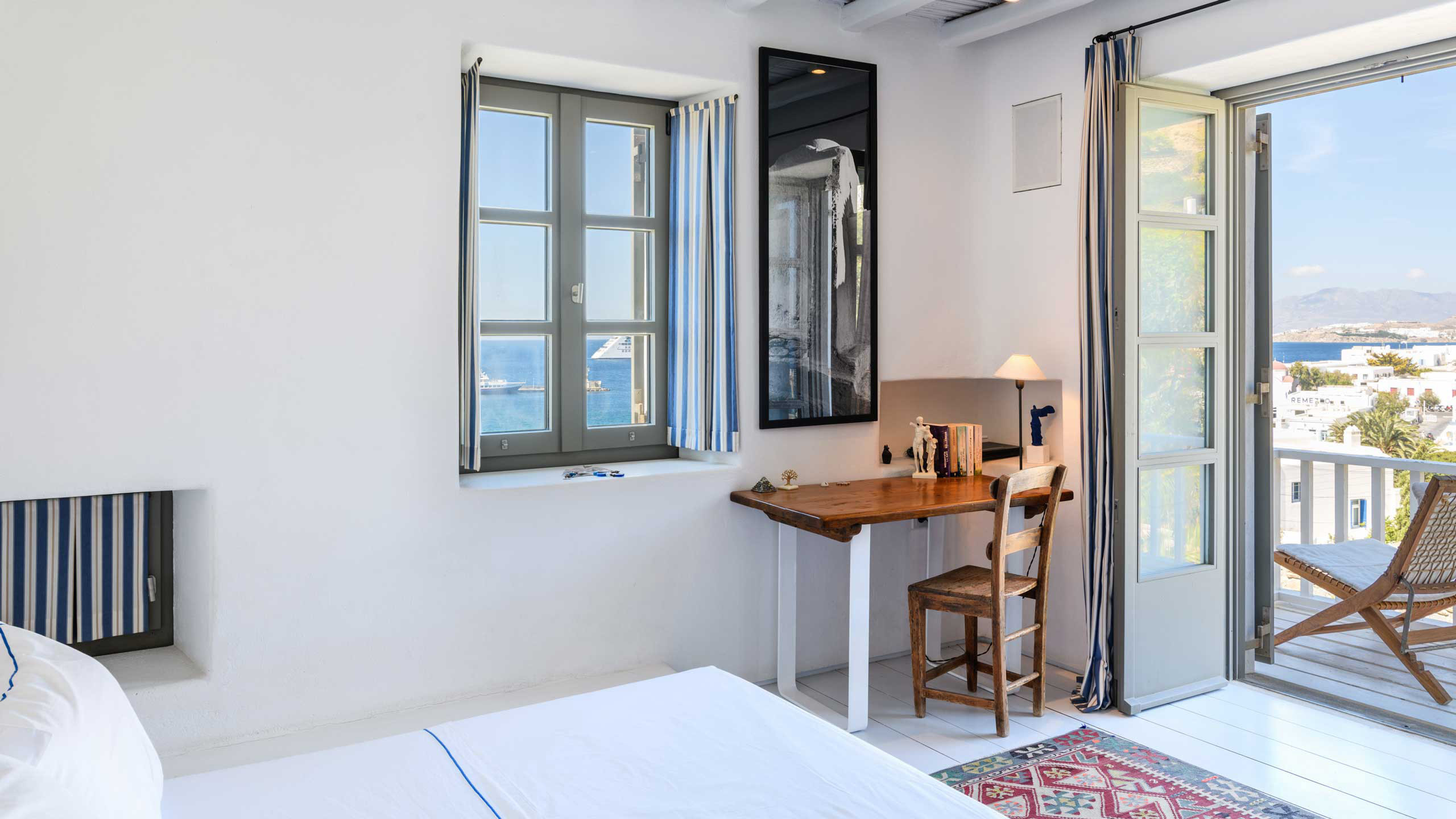 Accessed from the town’s main peripheral road, the property enjoys stunning views of Mykonos Town and the Aegean sea thanks to it slight elevated position. Living this property outdoors will definitely provide special moments, be it on one of the bedrooms’ private balcony or on the gracious pool terrace. A stone path was purposely built to keep all parts of the property communicating with one another while also providing easy access to the two main terraces.