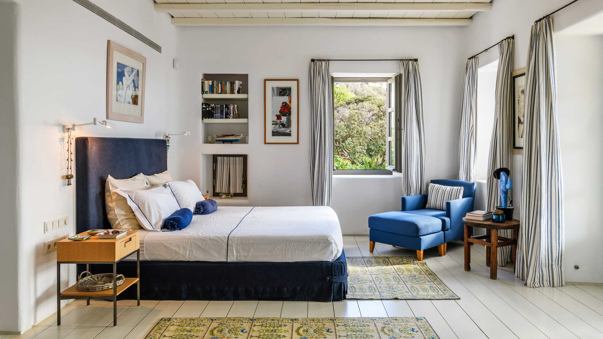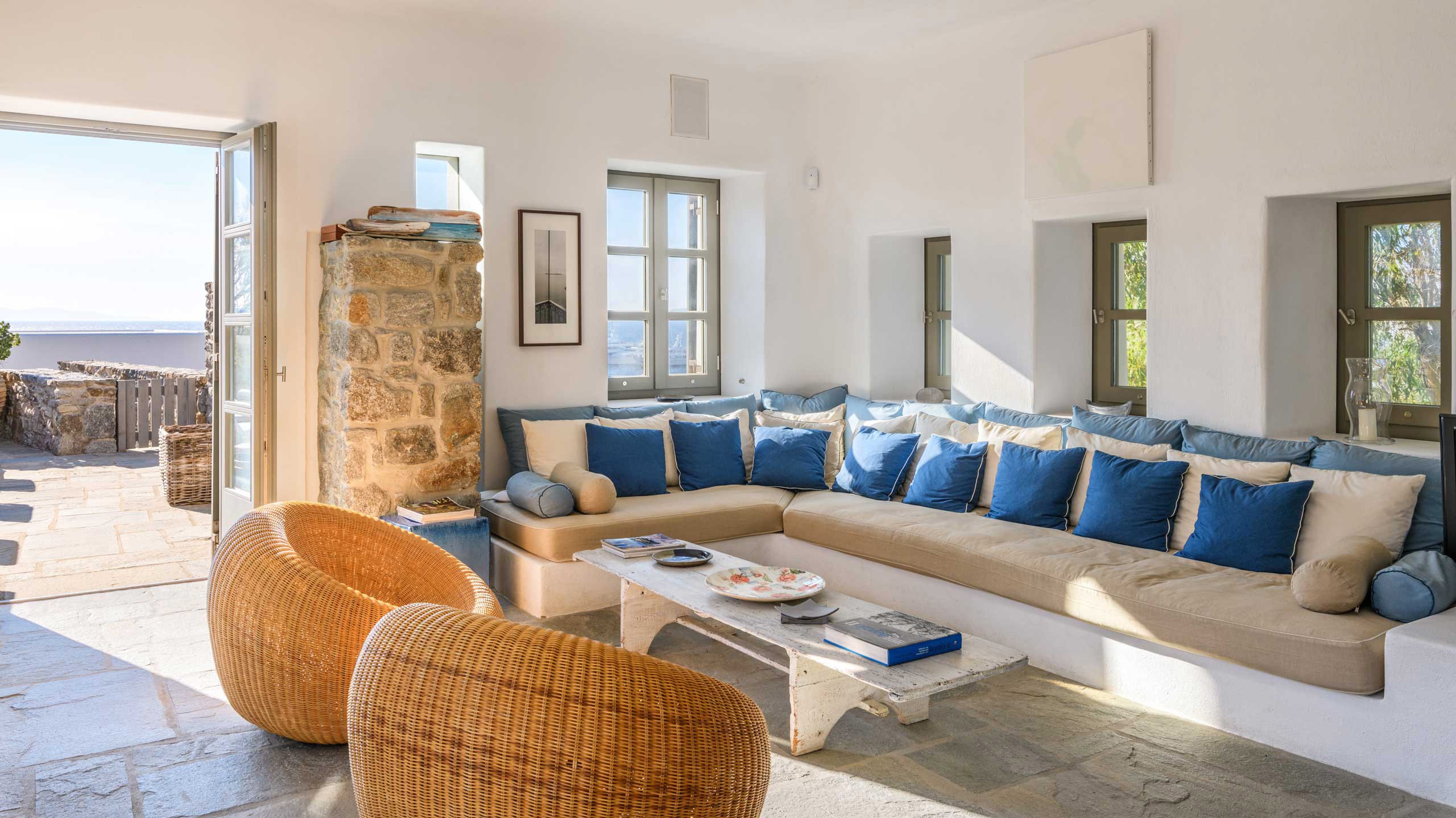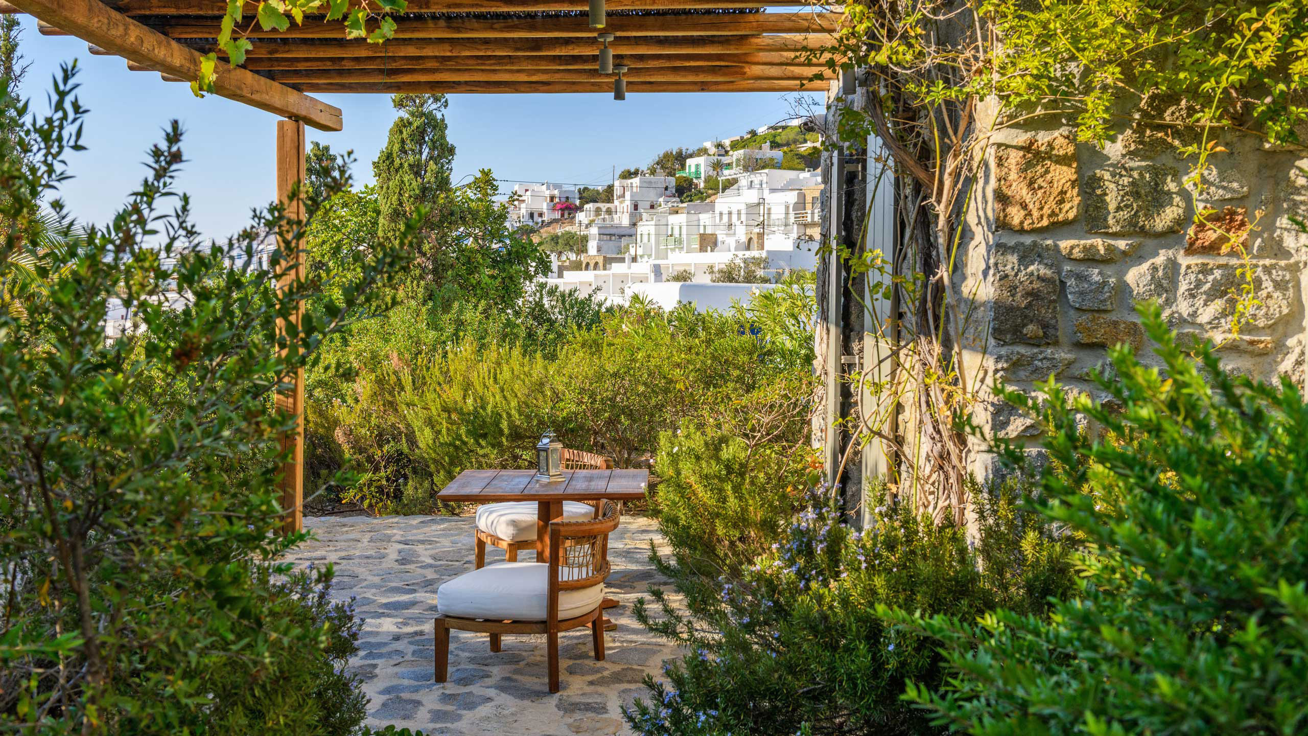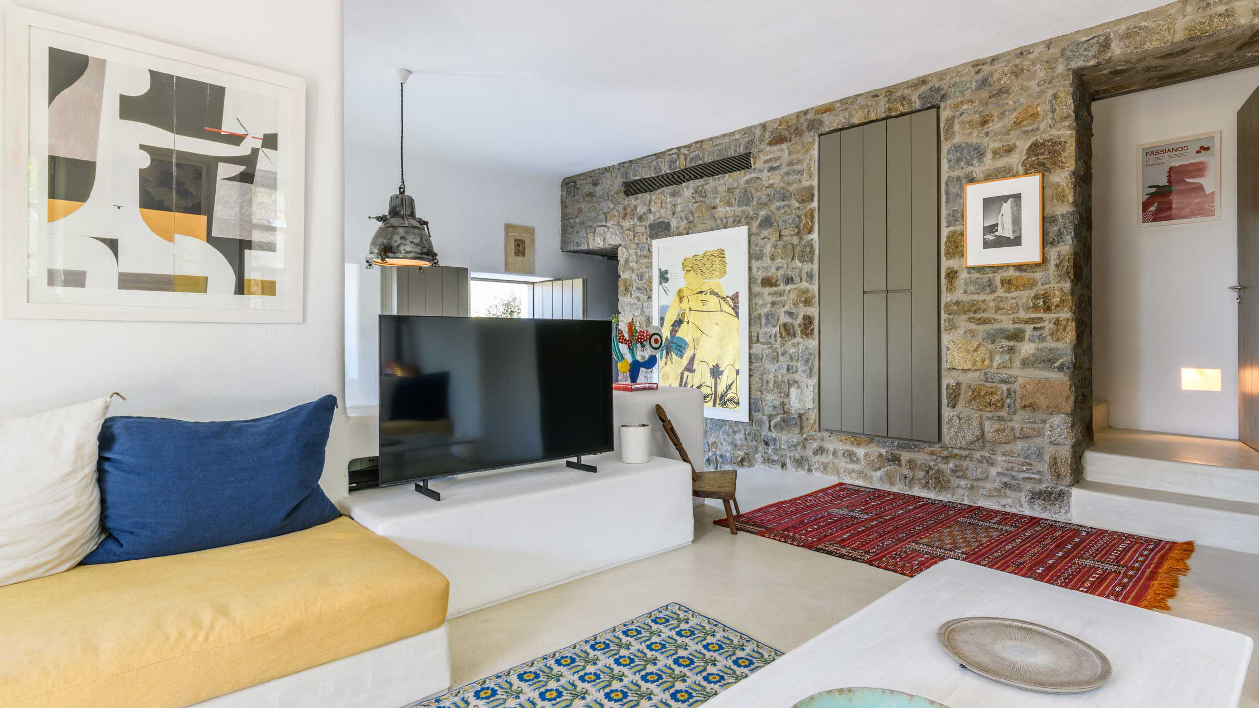 Accessed from the town’s main peripheral road, the property enjoys stunning views of Mykonos Town and the Aegean sea thanks to it slight elevated position. Living this property outdoors will definitely provide special moments, be it on one of the bedrooms’ private balcony or on the gracious pool terrace. A stone path was purposely built to keep all parts of the property communicating with one another while also providing easy access to the two main terraces.