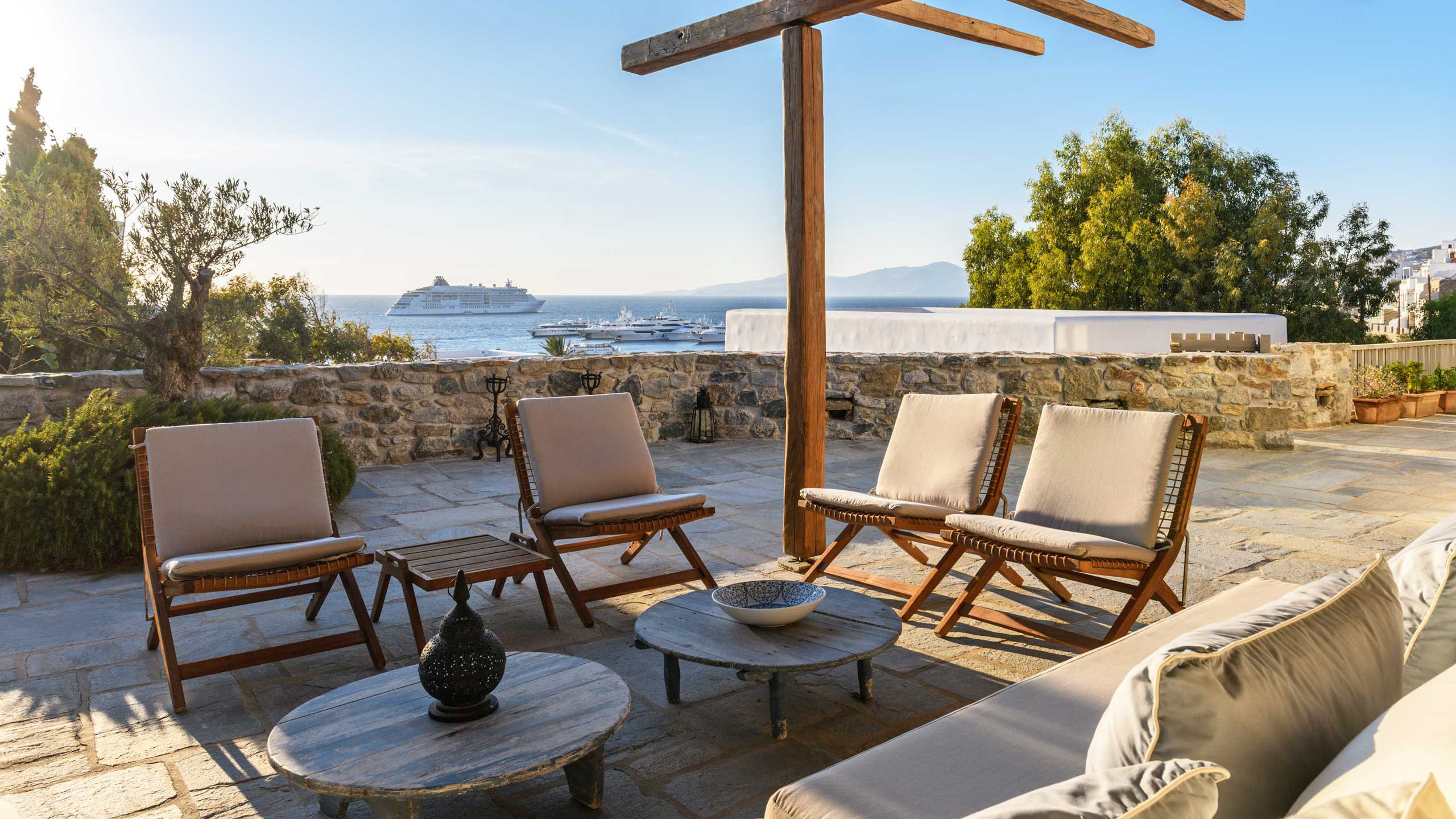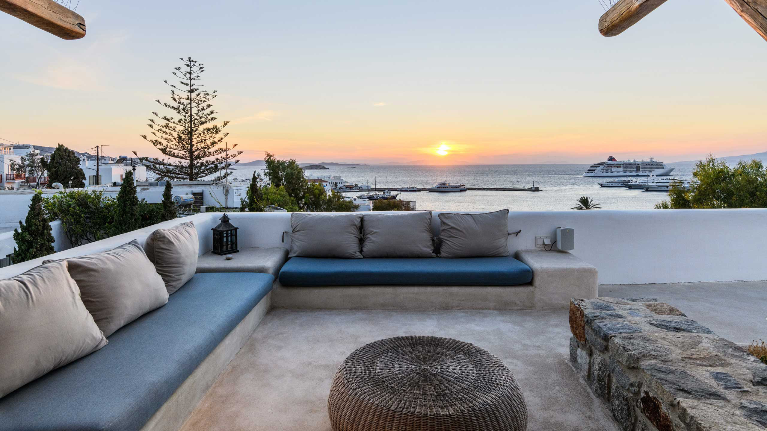The most sought-after location of the island is likely the easiest way to describe the position of The Citadel. The seven buildings composing the property are in fact spread out on a small estate situated in the eastern side of Mykonos Town, granting immediate access to the Chora’s old harbour and town center.