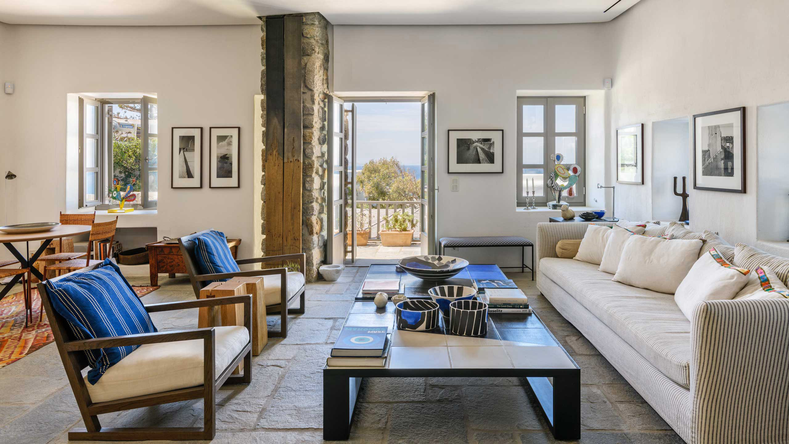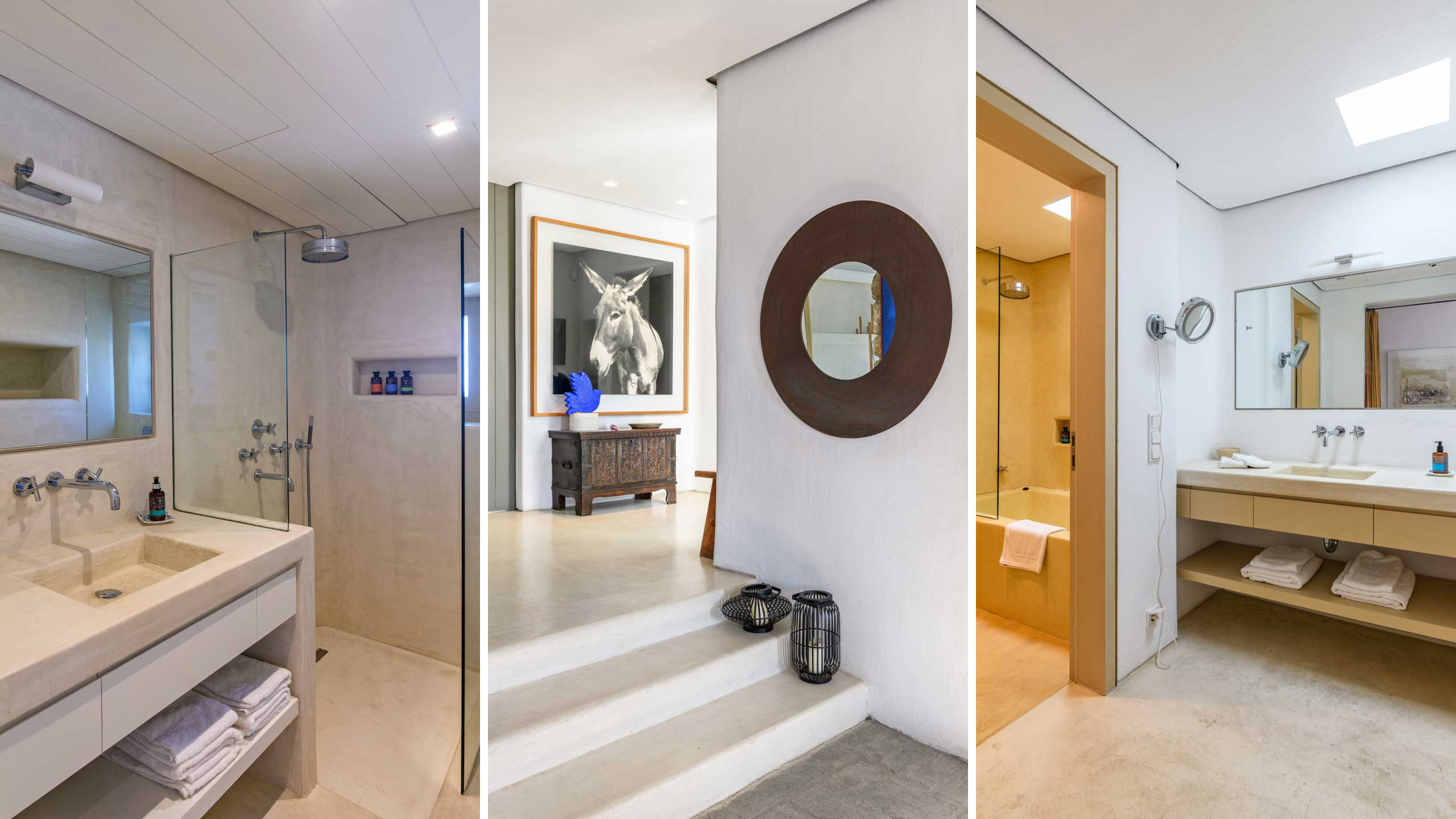 The villa’s 20-meter infinity swimming pool stretches outwards towards the sea from its actual terrace that is covered by a large pergola and duly furnished for outdoor dining and overall relaxation. Contemporary meets island life would perhaps be the easiest way to describe the indoor features of this property. Art is a recurrent theme throughout the property due to the presence of a true collection of photography of pieces of contemporary art.