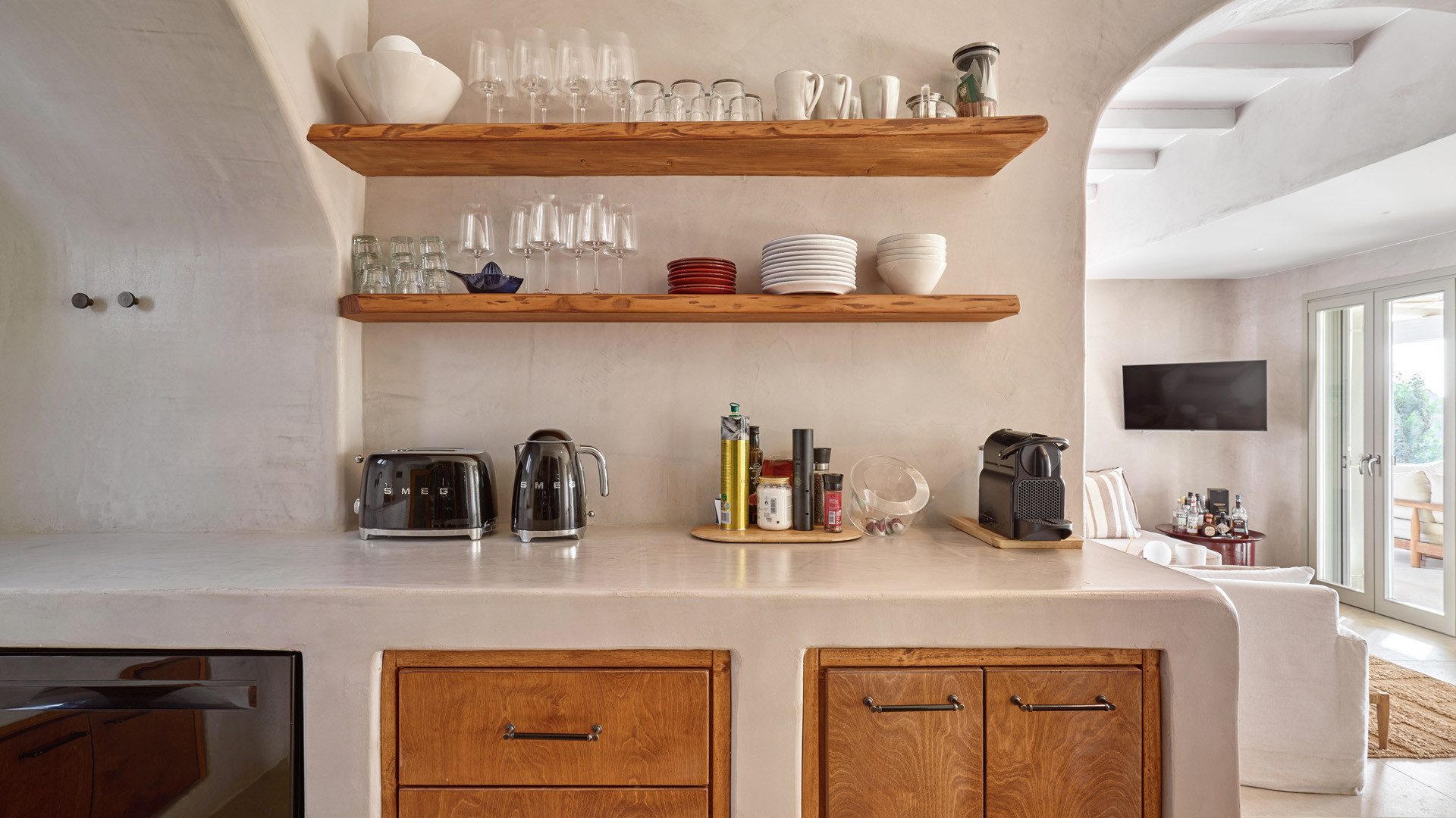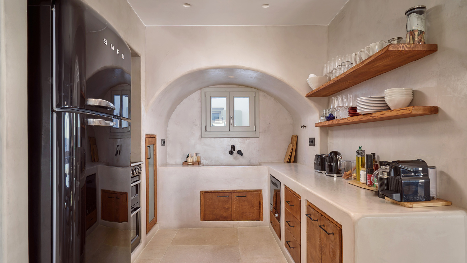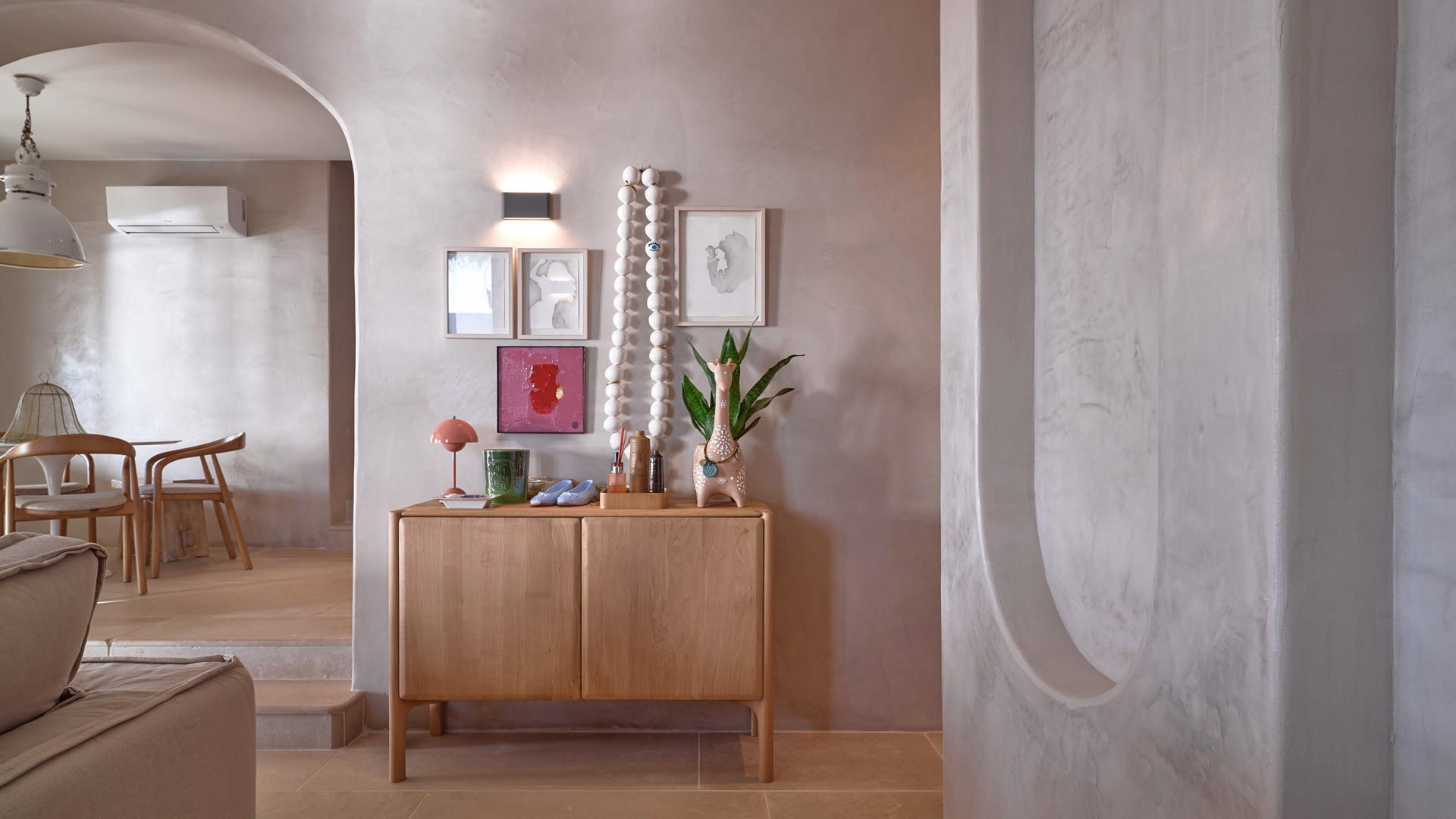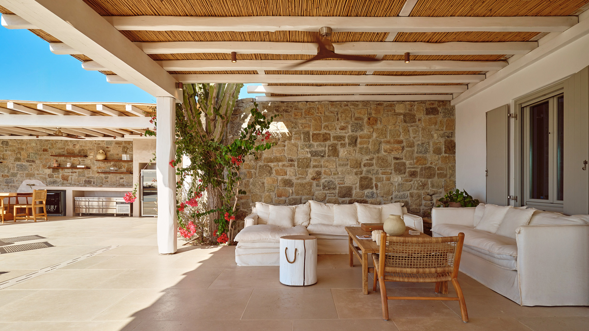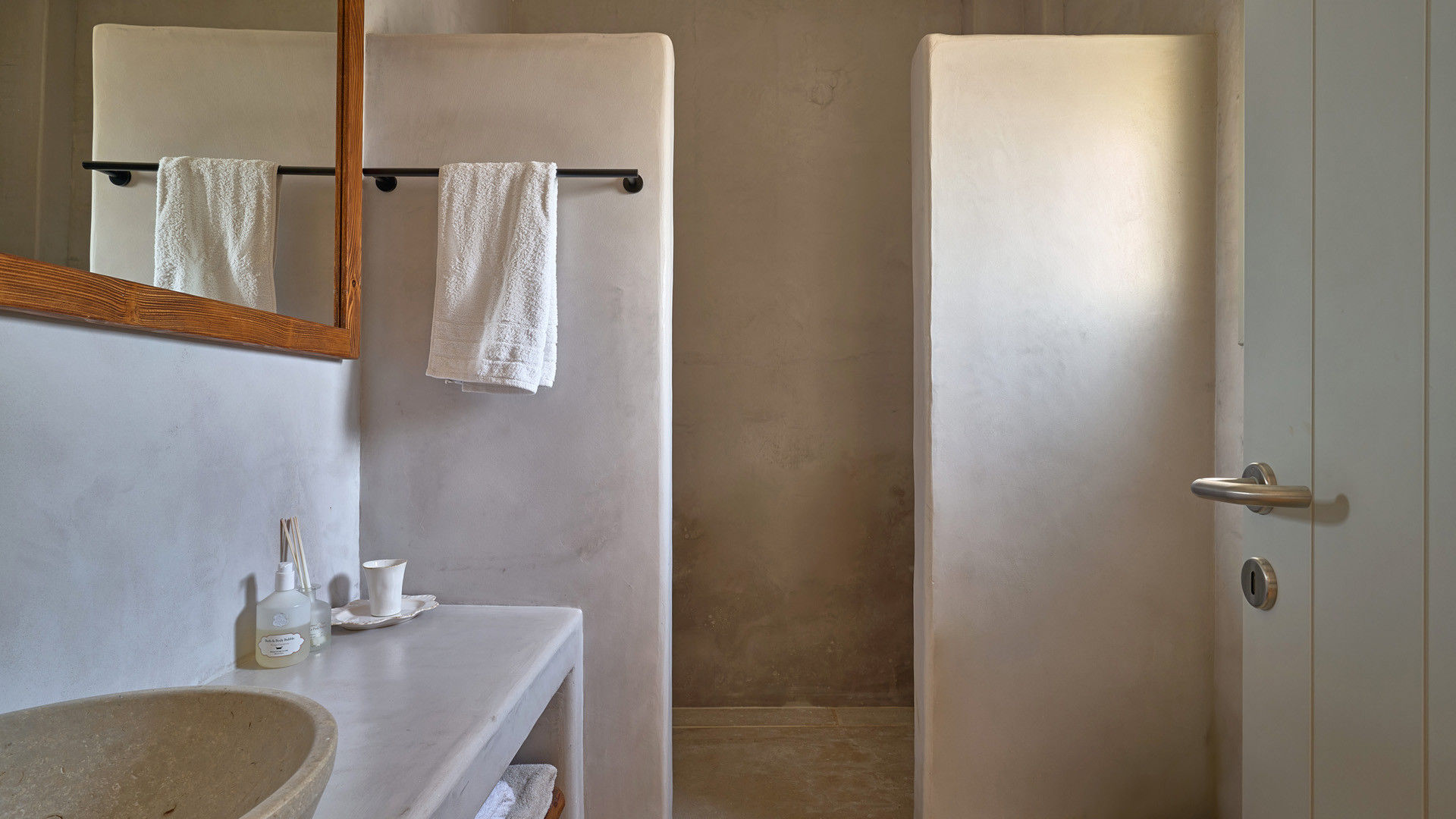 Inside Junonia, the same refined aesthetic continues, with well-appointed common areas that exude a warm and welcoming atmosphere despite the contemporary design and abundance of modern amenities. The bedrooms are evenly distributed across the two levels of the house, with a fifth independent room available for those seeking extra privacy. All rooms maintain the same high-quality standards, while those on the upper floor enjoy lovely sea views from their private balconies.