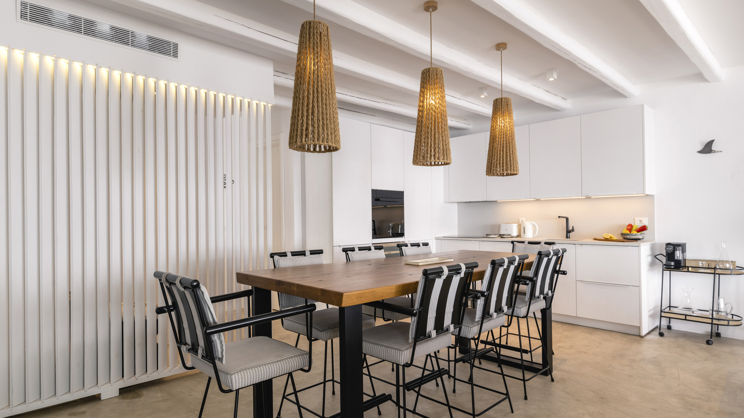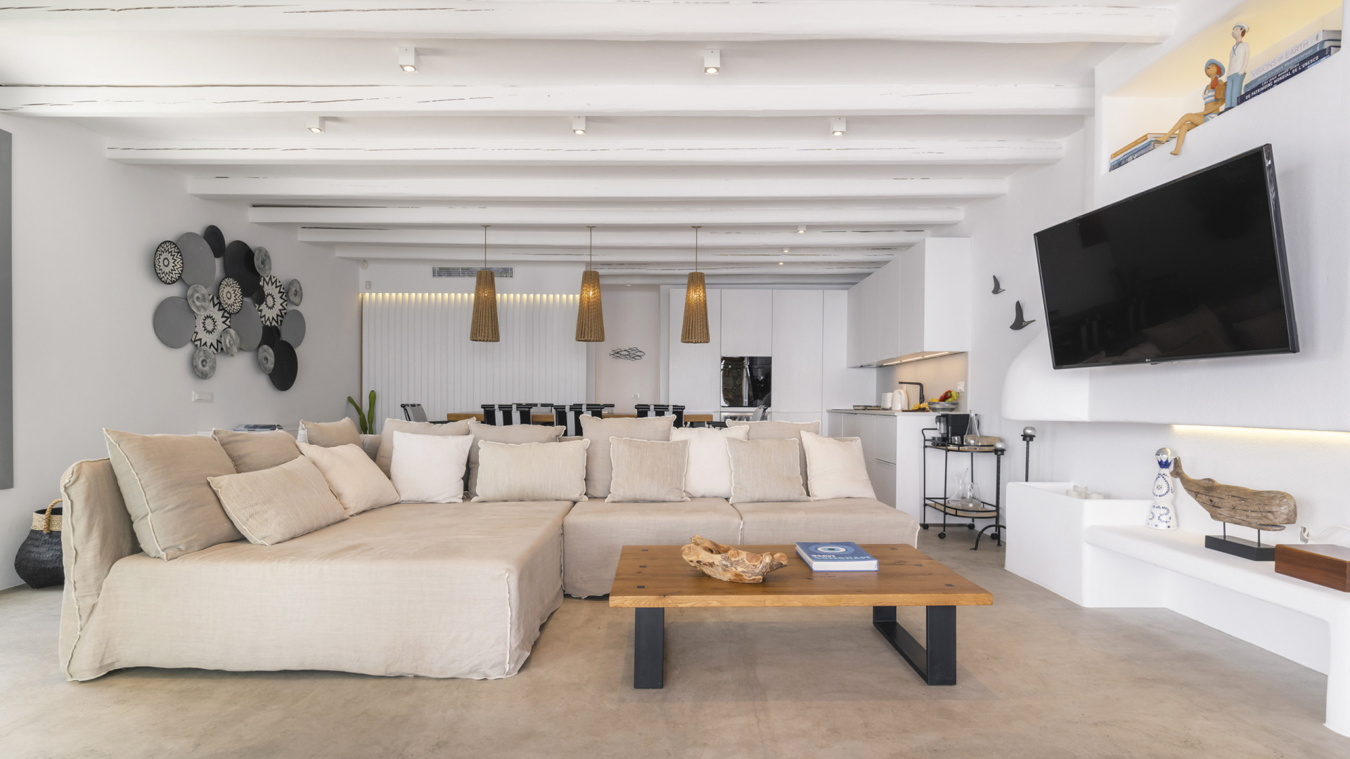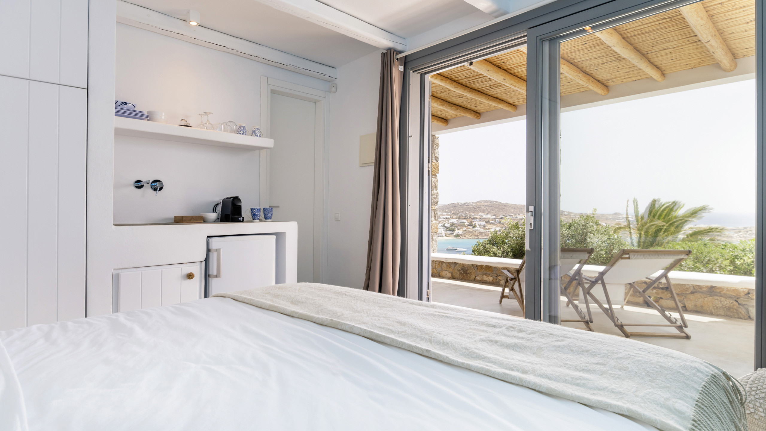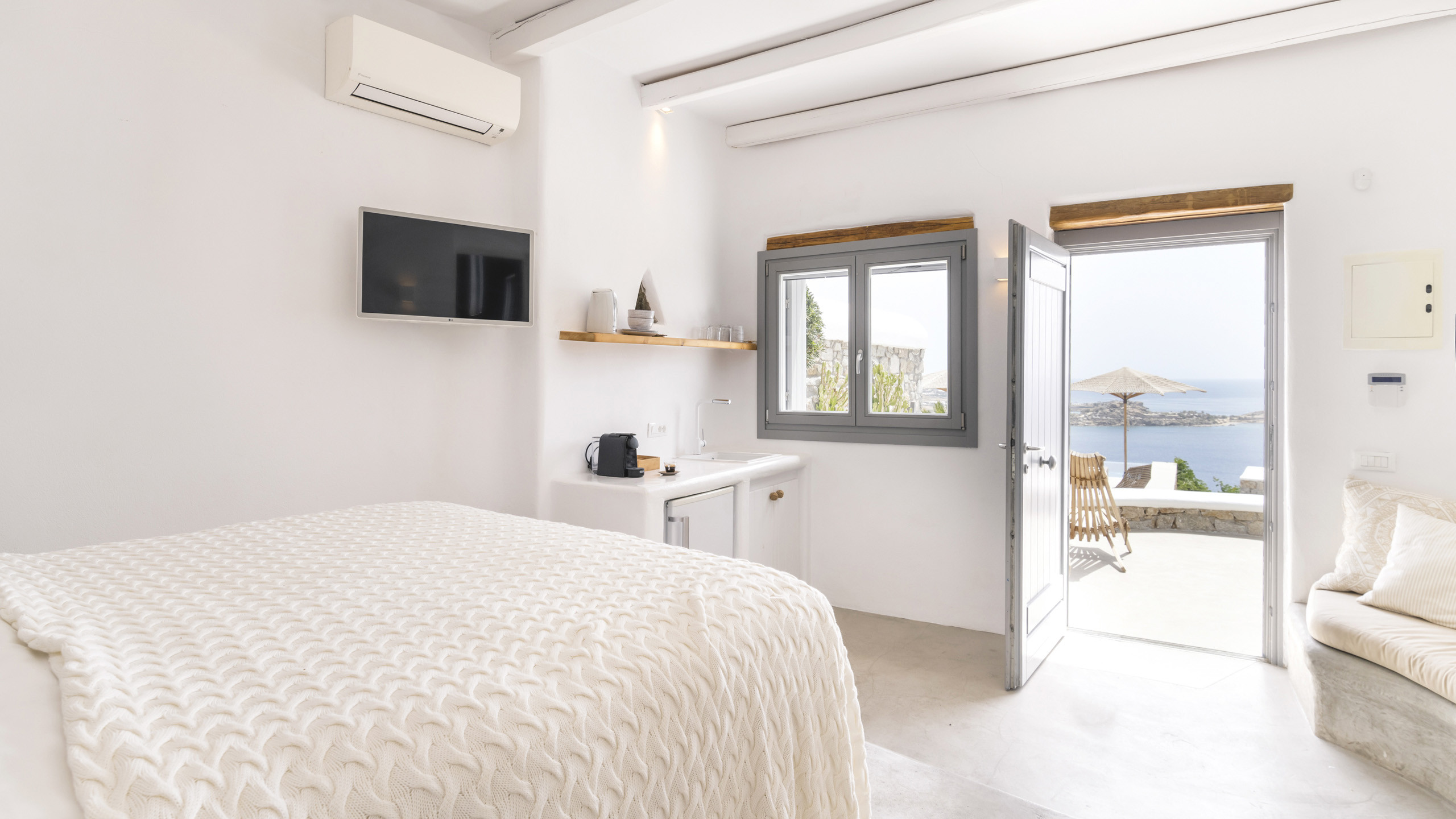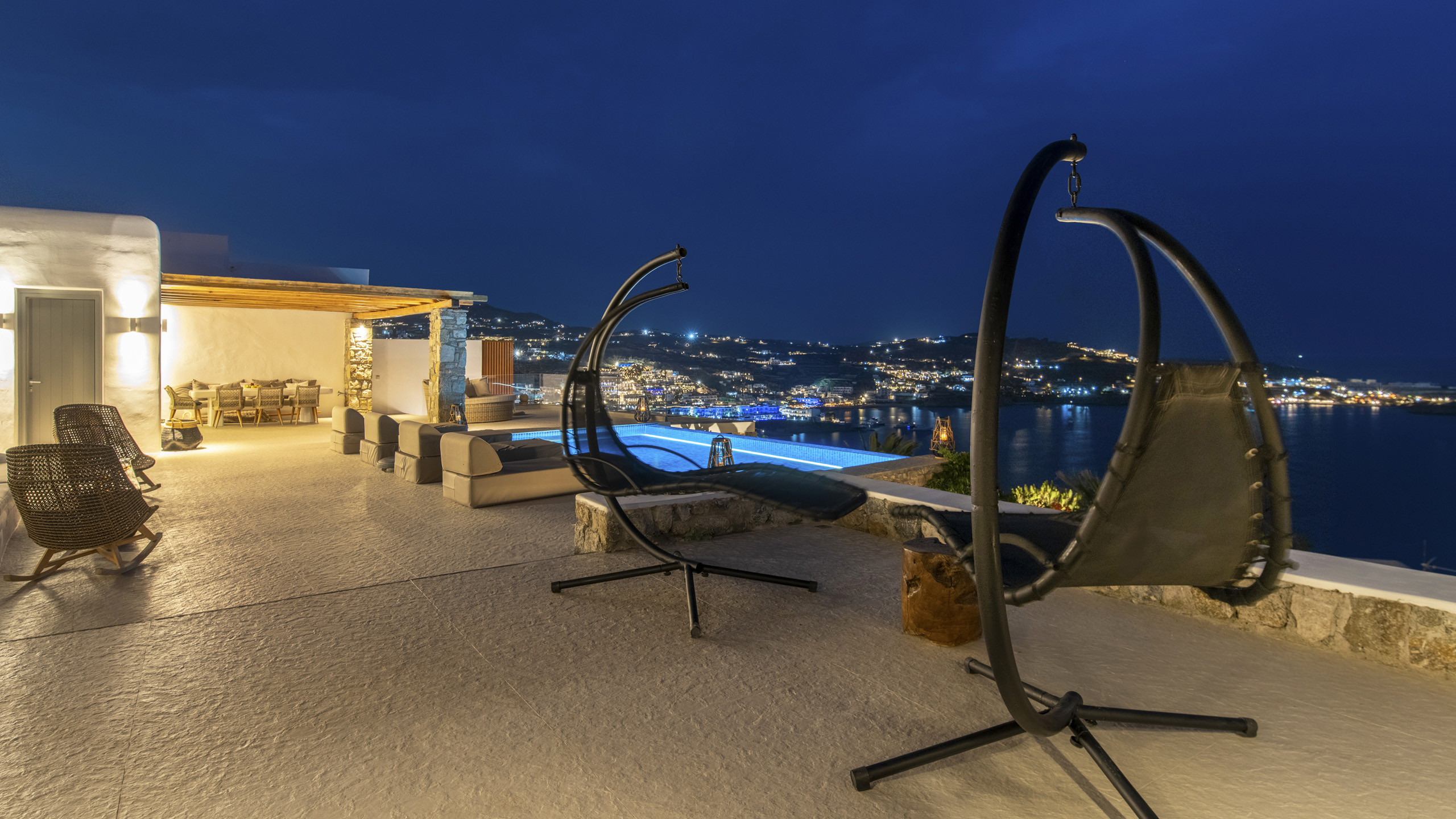 Internally, Aegean Dawn features a fresh and contemporary style that perfectly follows the typical trend and style of Mykonian private residences. The common spaces and bedrooms are all comfortable and equipped with the latest technological amenities, also directly connected to the outdoors for the guests' maximum independence.