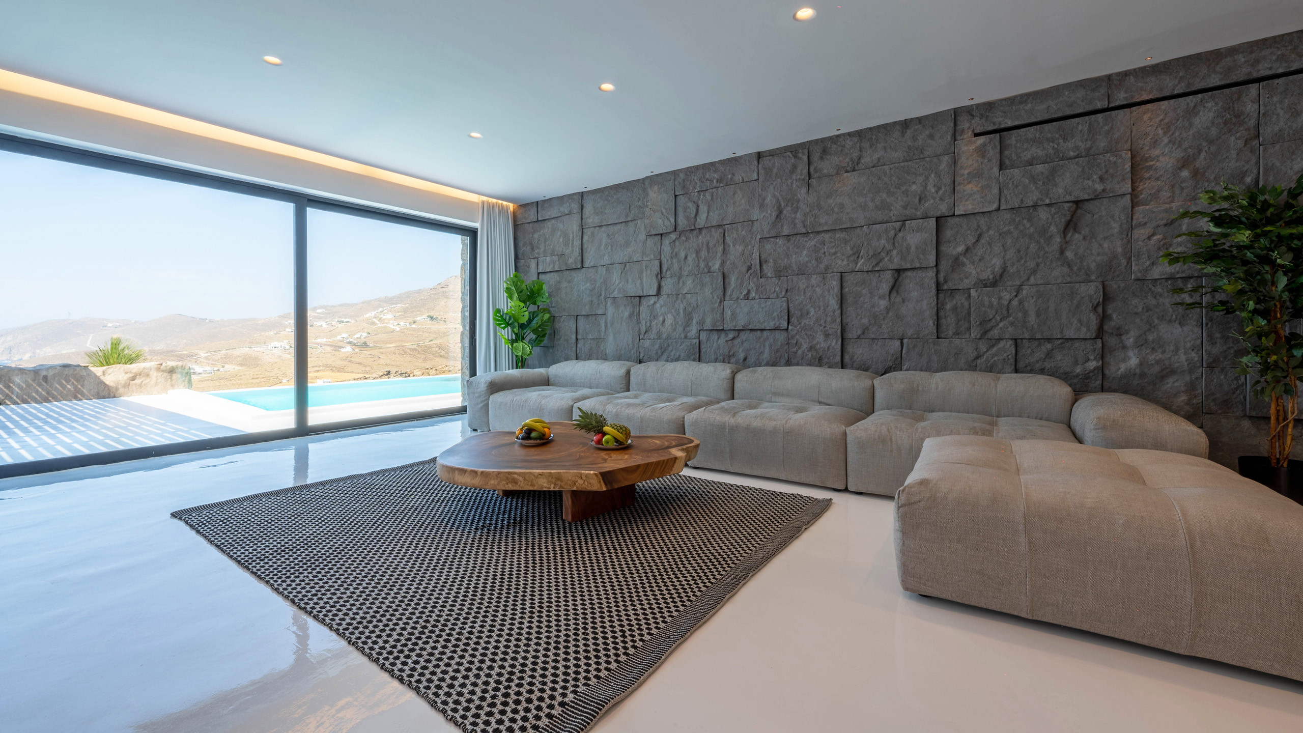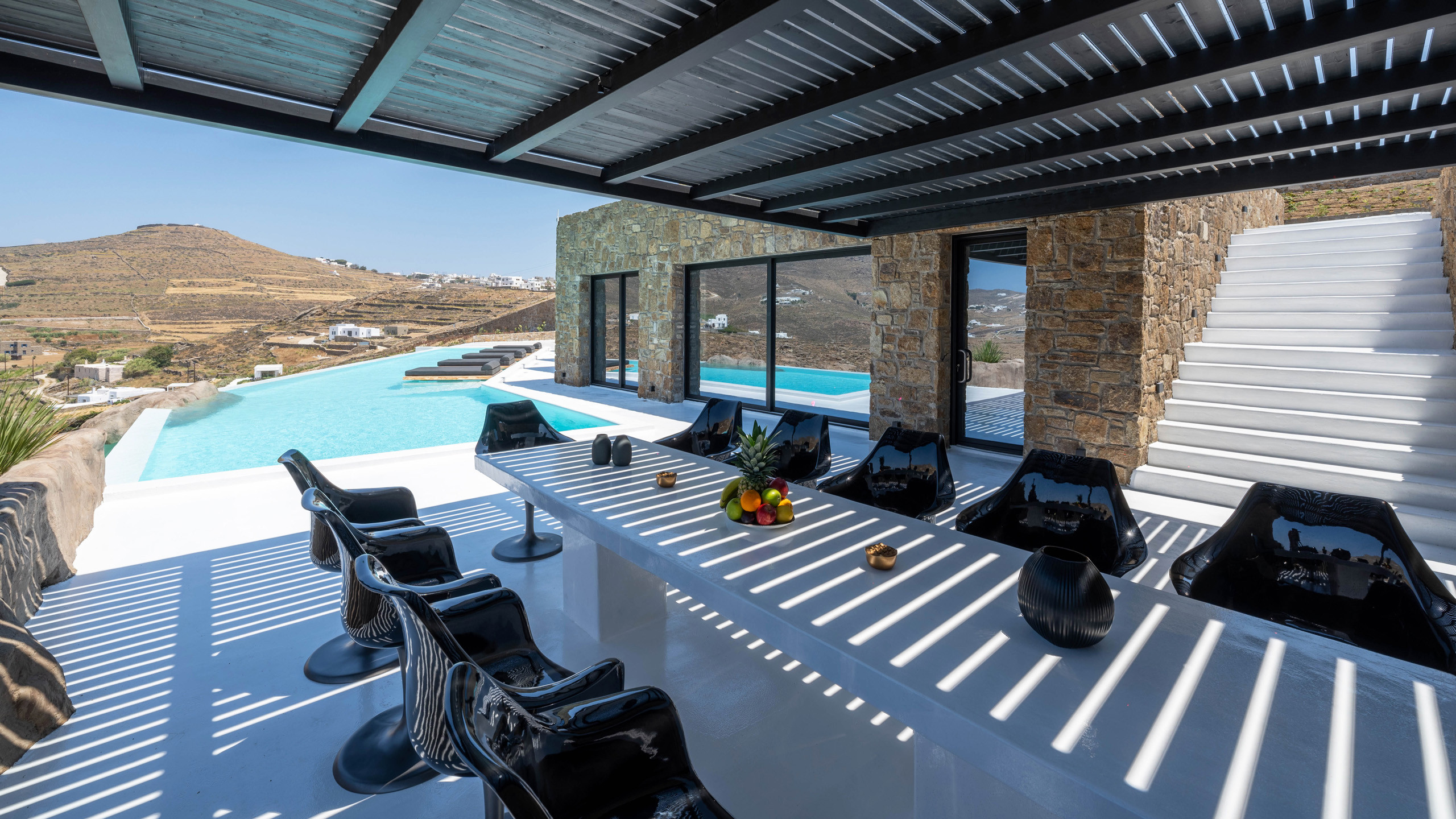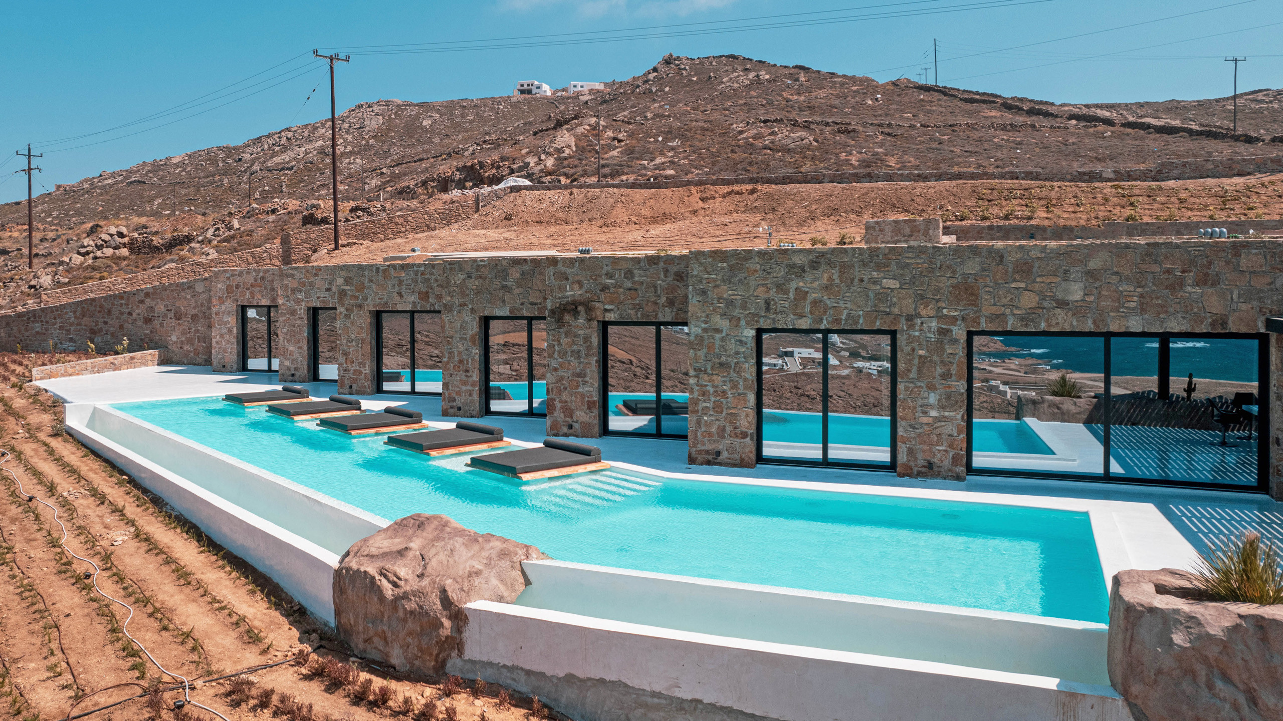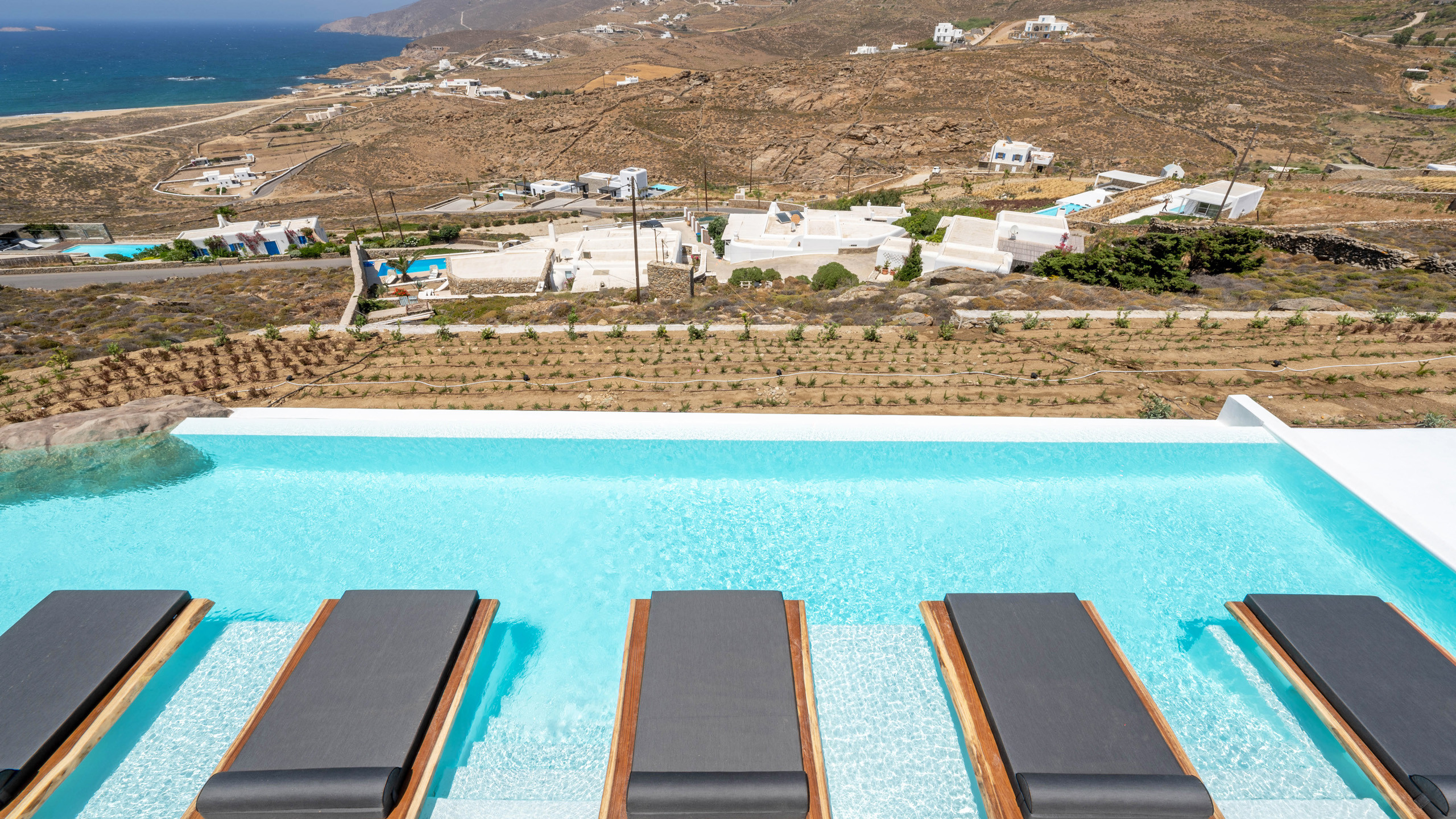 The Ftelia area has undergone significant revaluation in recent years, with the emergence of several intriguing new private villas, such as Cayenne. Its location, situated almost equidistant between Mykonos Town and the eastern coast beaches of Mykonos, makes it an excellent starting point for spending diverse days with relatively short commutes.