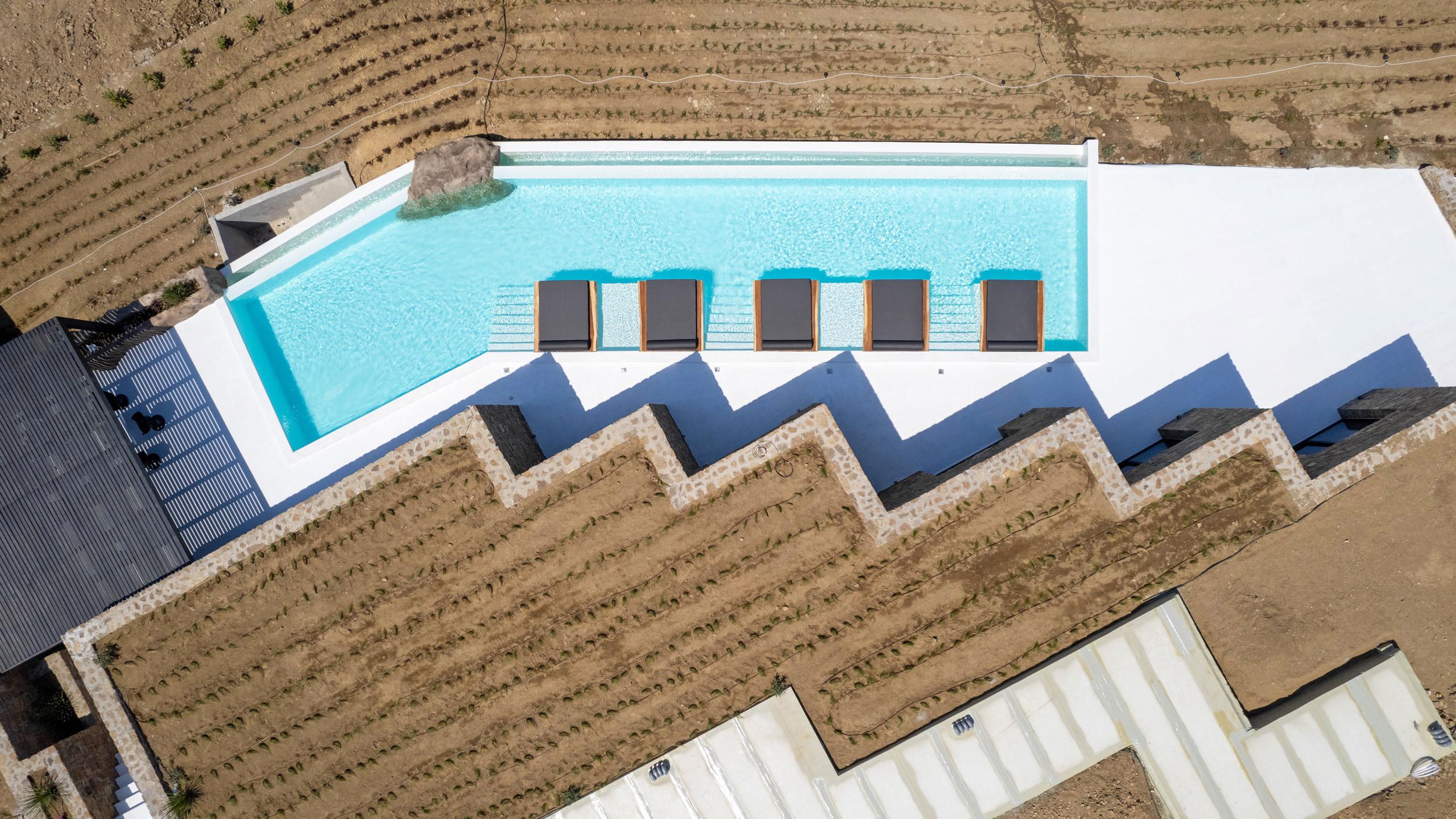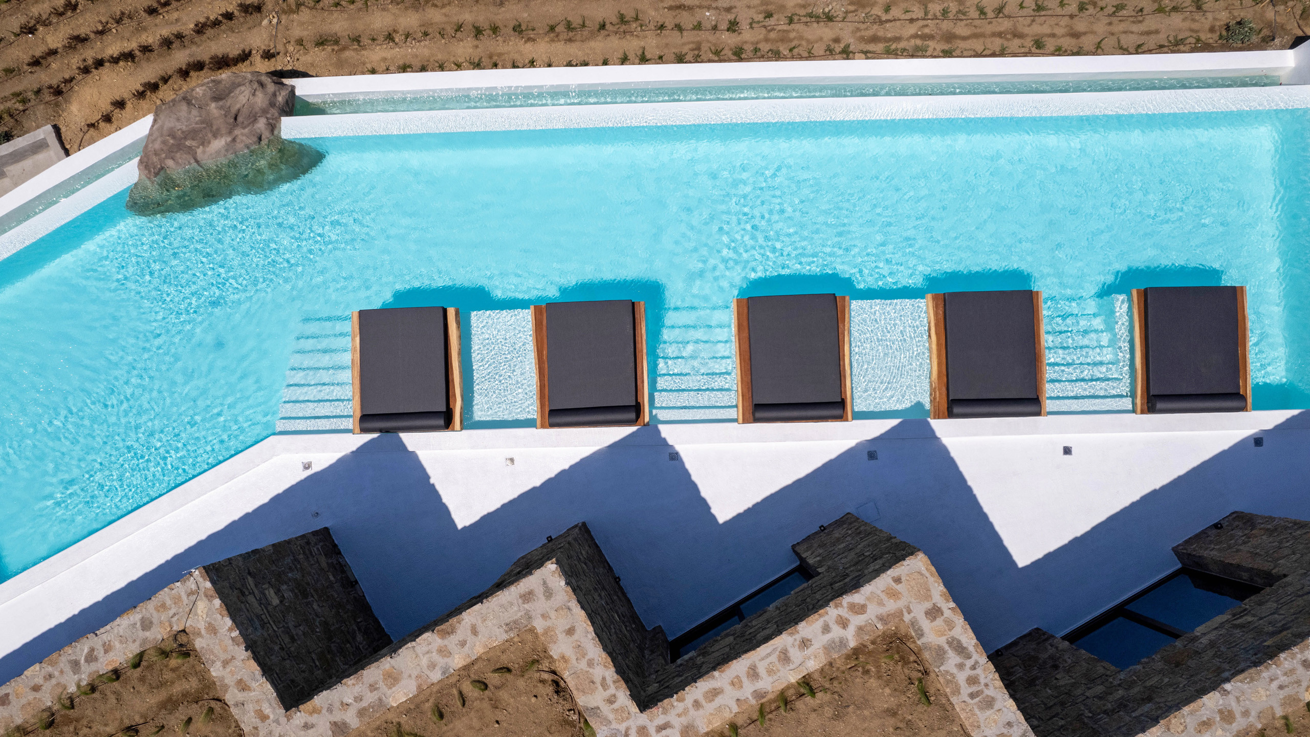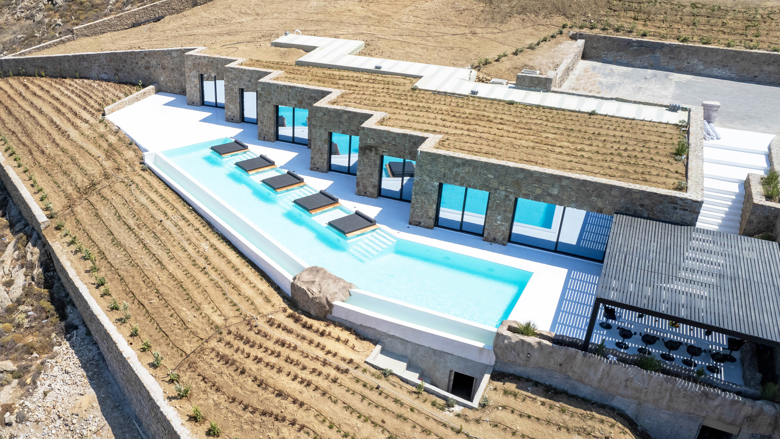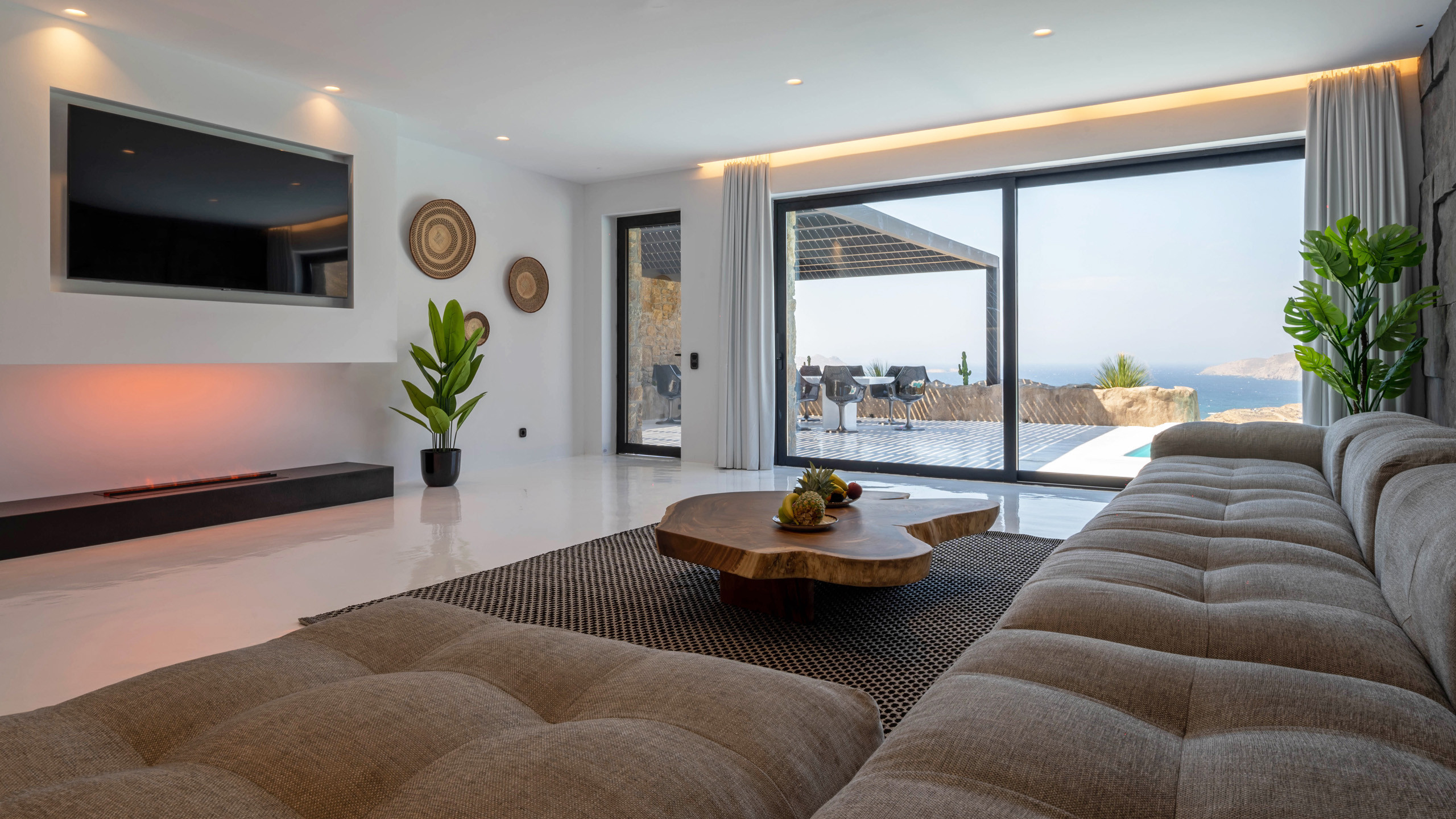 The Ftelia area has undergone significant revaluation in recent years, with the emergence of several intriguing new private villas, such as Cayenne. Its location, situated almost equidistant between Mykonos Town and the eastern coast beaches of Mykonos, makes it an excellent starting point for spending diverse days with relatively short commutes.