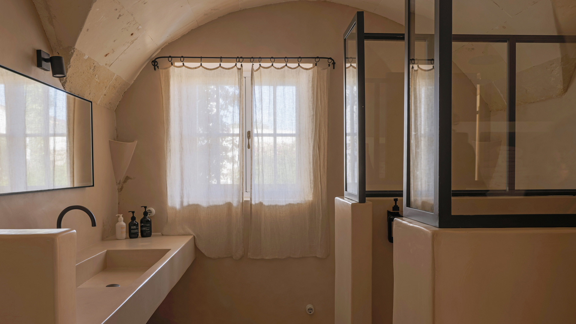The entire house has air conditioning, at the same time an adjustable heat pump in each room. At the back of the house, there is the outdoor dining room, surrounded by lush vegetation, as well as the pool area and its chill-out. Near the pool there is a small annex with household items, as well as good coolers for soft drinks and an ice refrigerator. Nearby there is also a separate room for massages and treatments, with its own air conditioning. The buildings are completed by a small and charming independent house with kitchenette, double room and bathroom, perfect for the service, and an annex where the 8 electric bicycles that are rented for a ride around the property or to the nearby beach of Cala Mitjana are stored.
