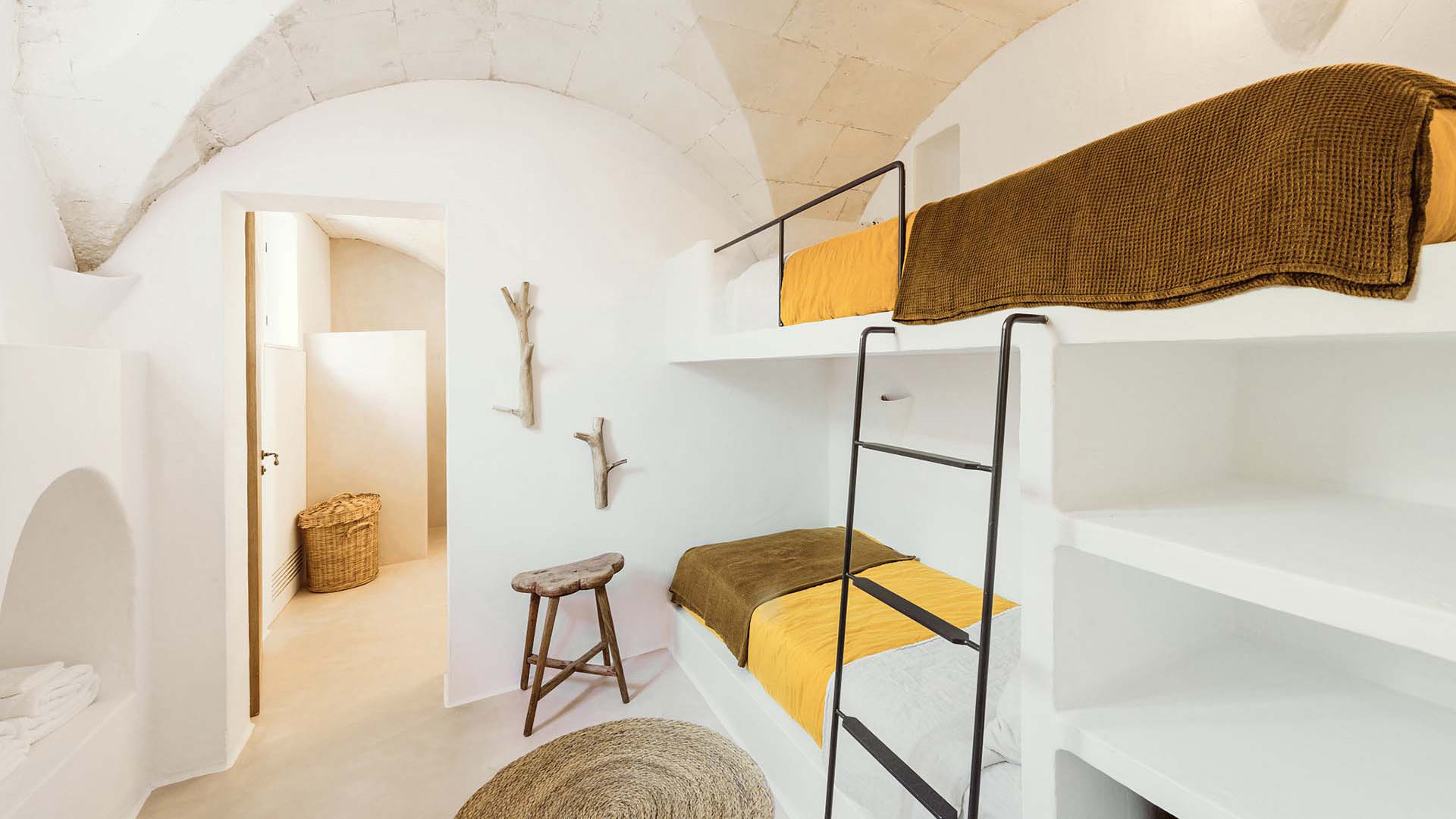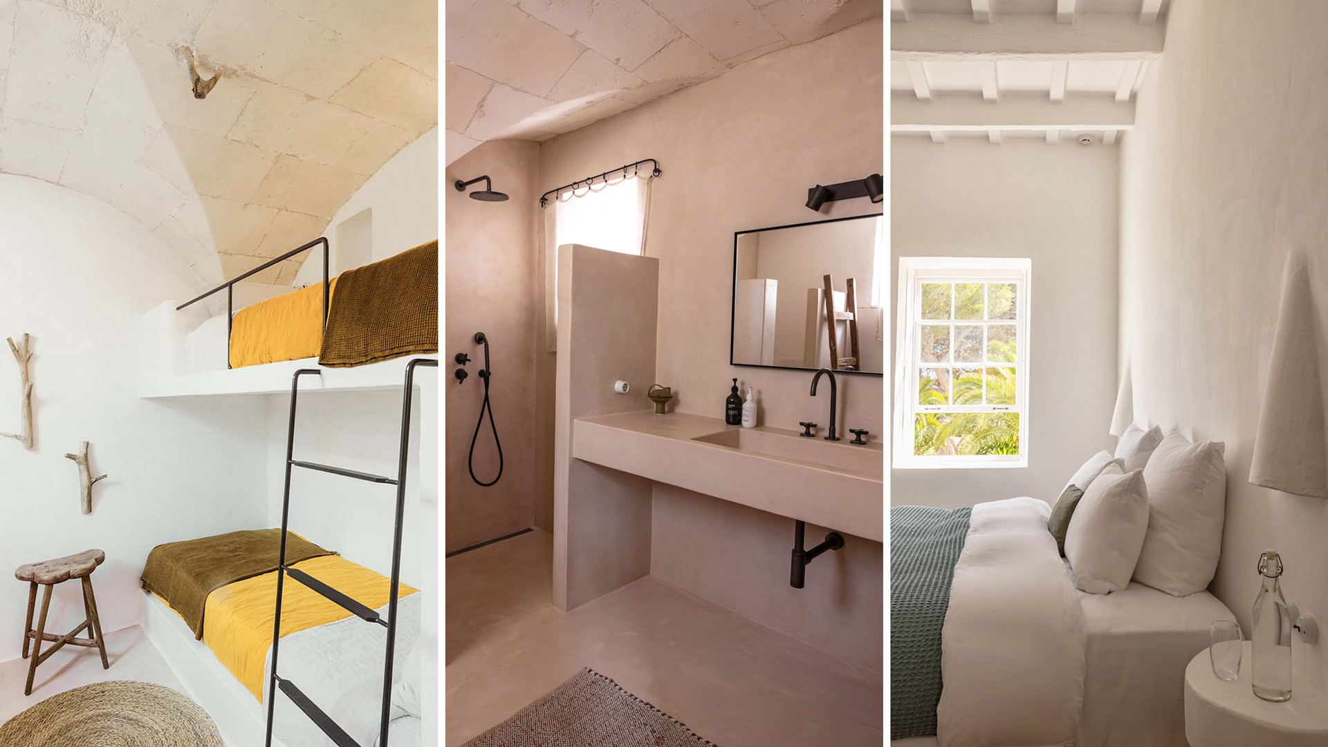 The property is accessed via an avenue flanked by pine trees, which takes us directly in front of the façade of the main building. Once here, you can access the house on the ground floor or by stairs to the right that take us to the first floor. From the ground floor, we access a spacious and very bright hall with several corner seating areas. From this hallway, we access three double bedrooms with en-suite bathrooms, one of them being a family suite that has an adjacent bunk room.